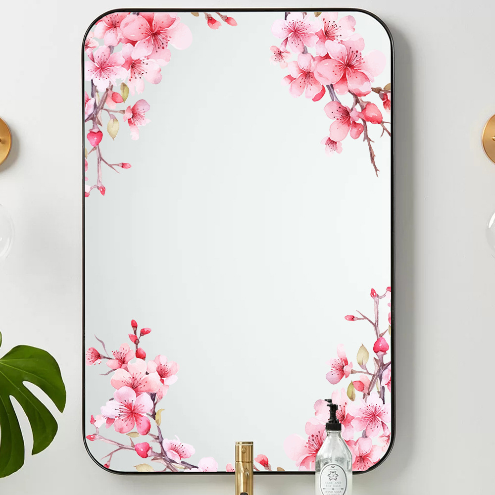 Yiyao JD3471 신선한 창조적 인 벚꽃 꽃 거울 스티커 세탁기 거울 이동식 장식 정전기 스티커