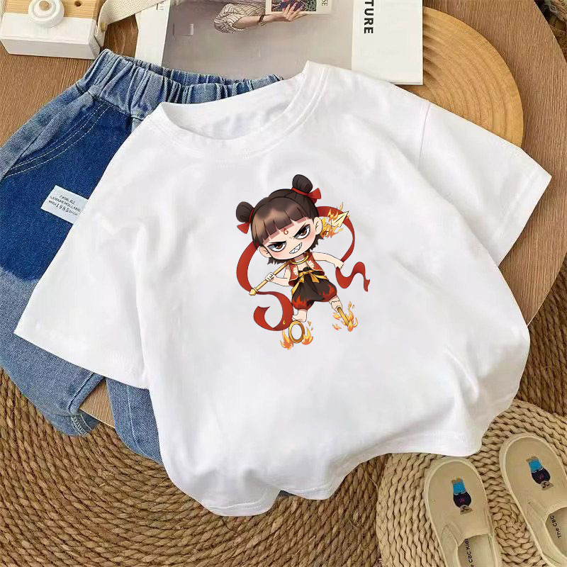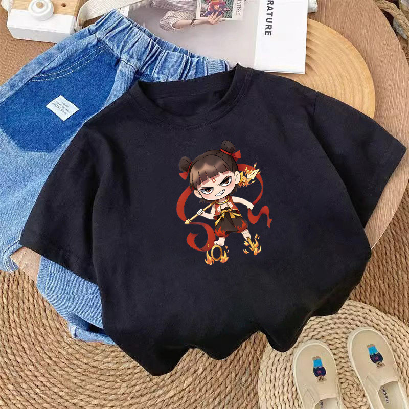 100 면 소년과 소녀 반팔 인쇄 어린이 티셔츠 만화 새로운 어린이 올 매치 아웃로 탑 트렌디 T스토어 가기