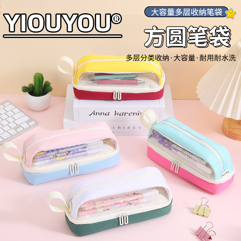 Yiouyou Fangyuan 연필 가방 25 대용량 3 층 색상 일치 중학생 및 고등학생 간단한 투명 소년 연필 가방