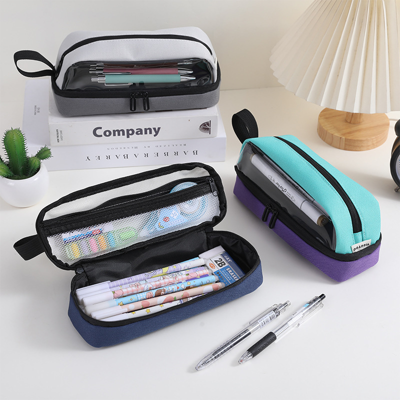 Yiouyou Fangyuan 연필 가방 25 대용량 3 층 색상 일치 중학생 및 고등학생 간단한 투명 소년 연필 가방스토어 가기