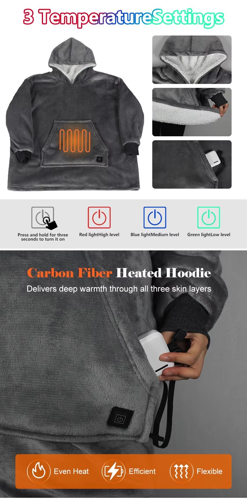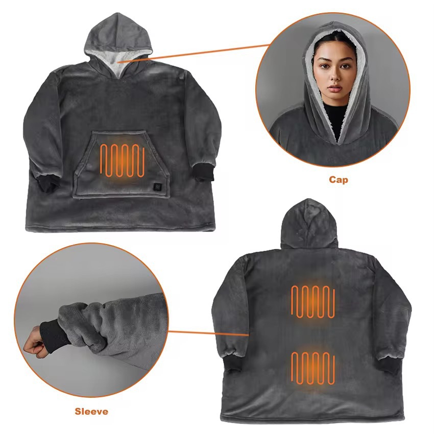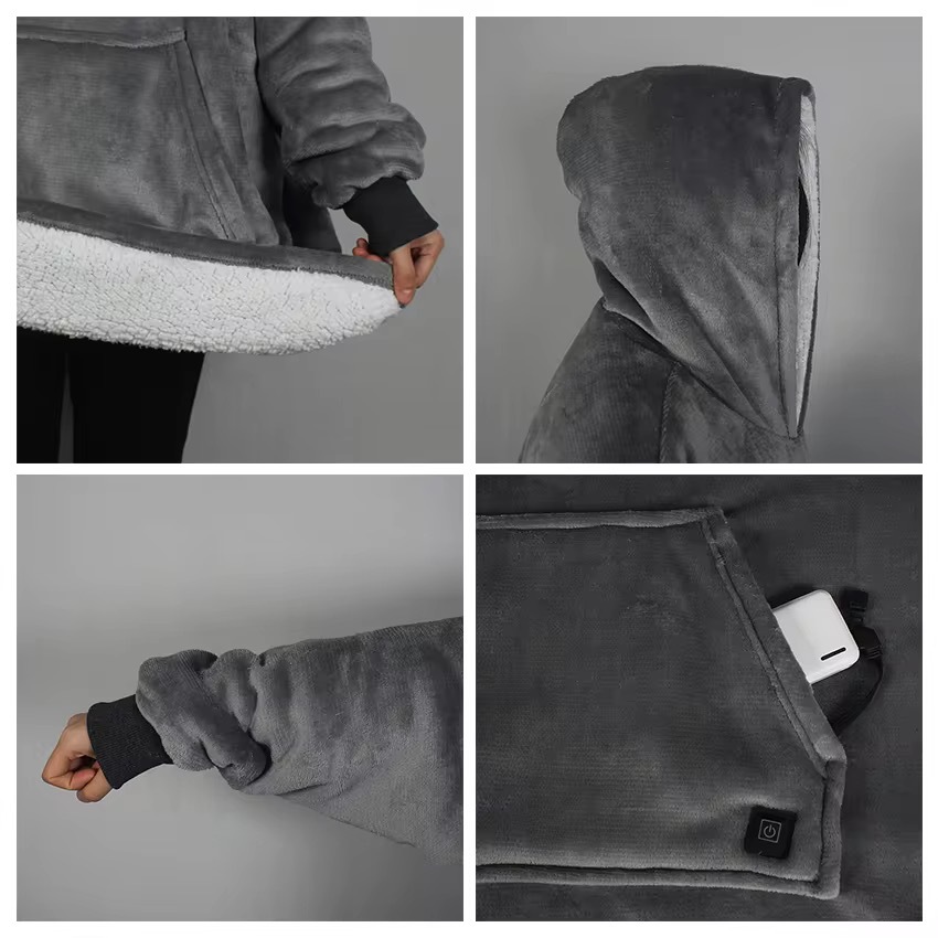 크로스보더 맞춤형 USB 발열 레이지 블랭킷, 셰르파 슈트, 홈 후드티, 대형 사이즈 T 레이지 슈트, 따뜻하게 유지하는 잠옷스토어 가기