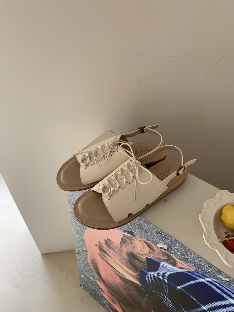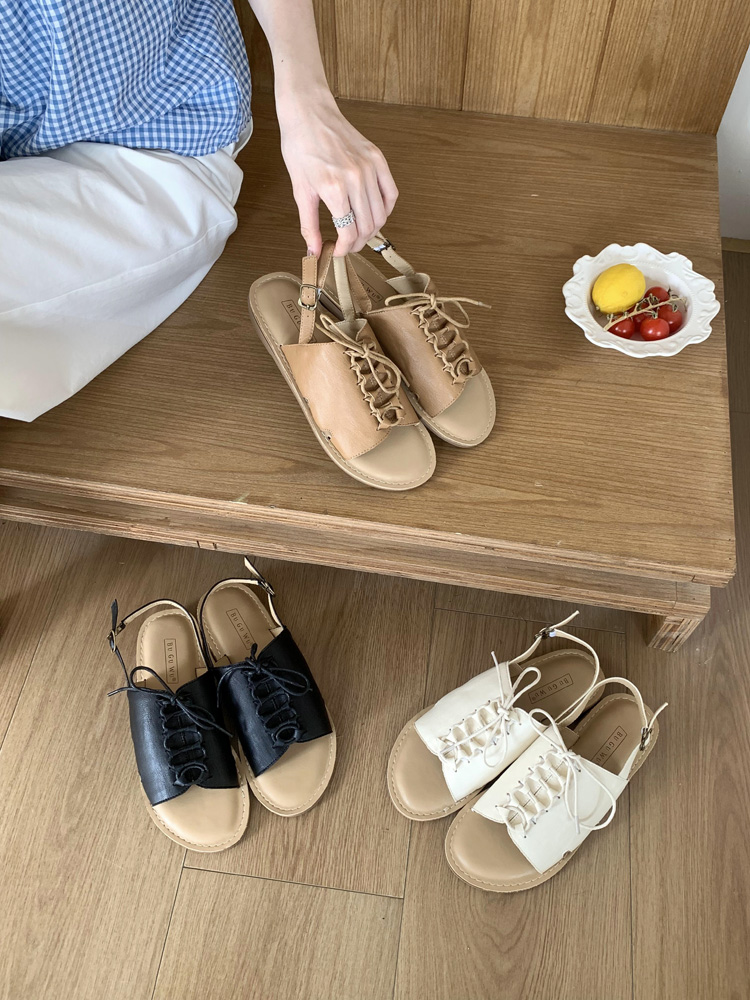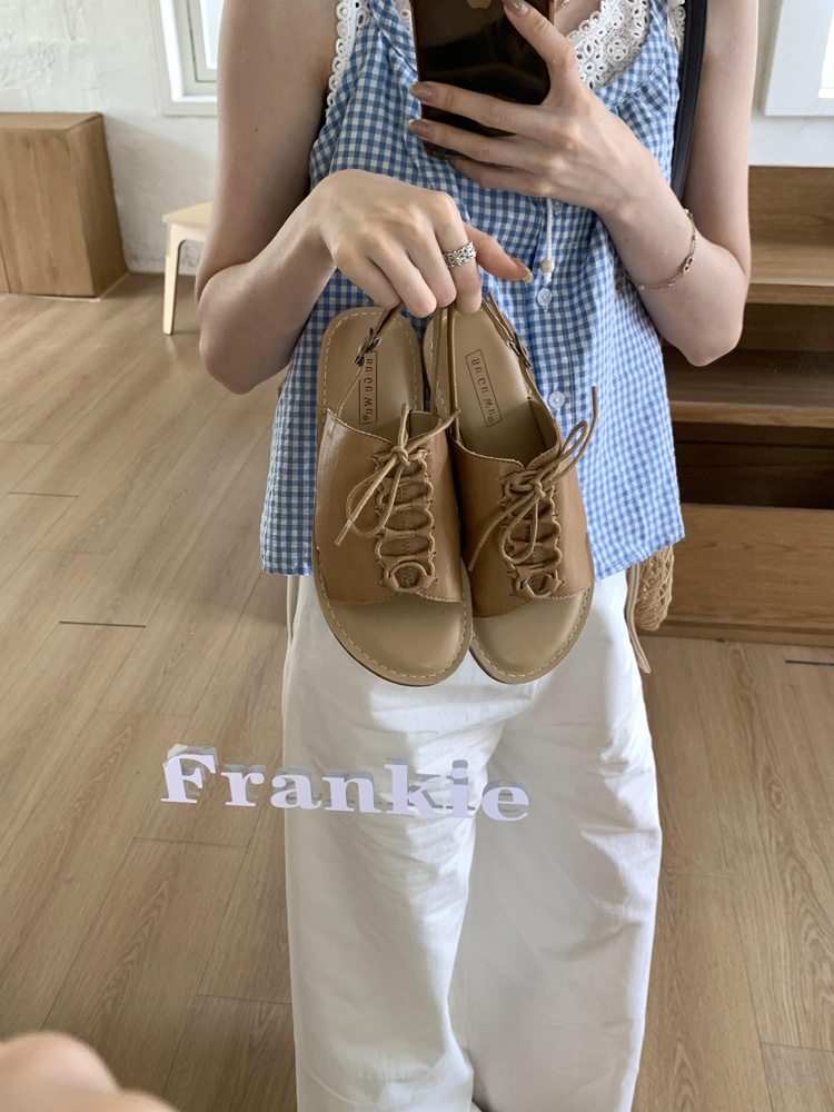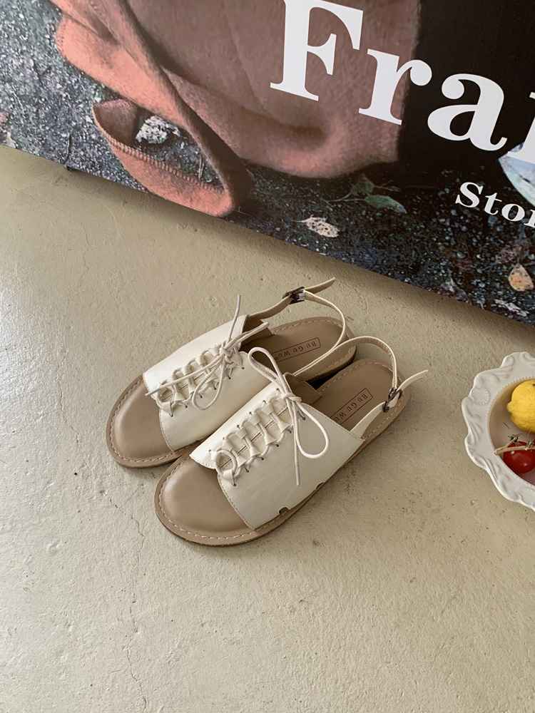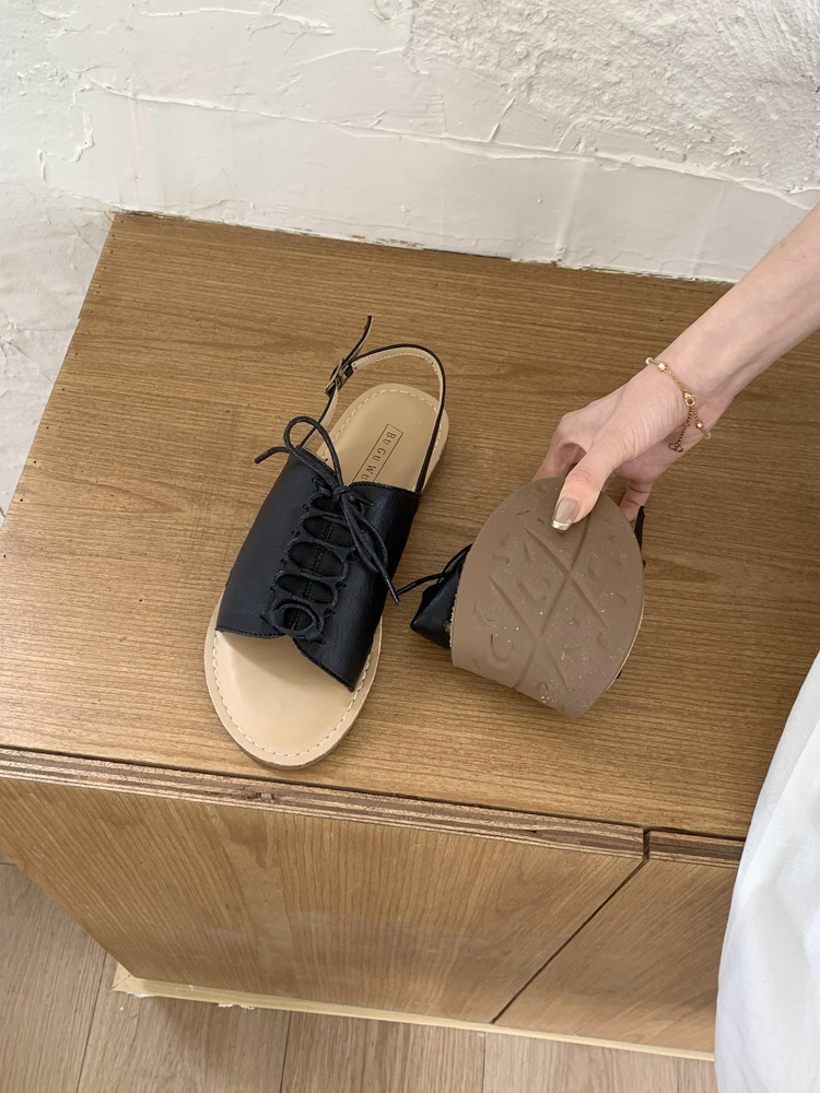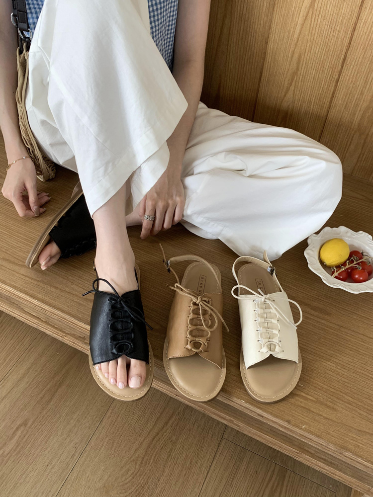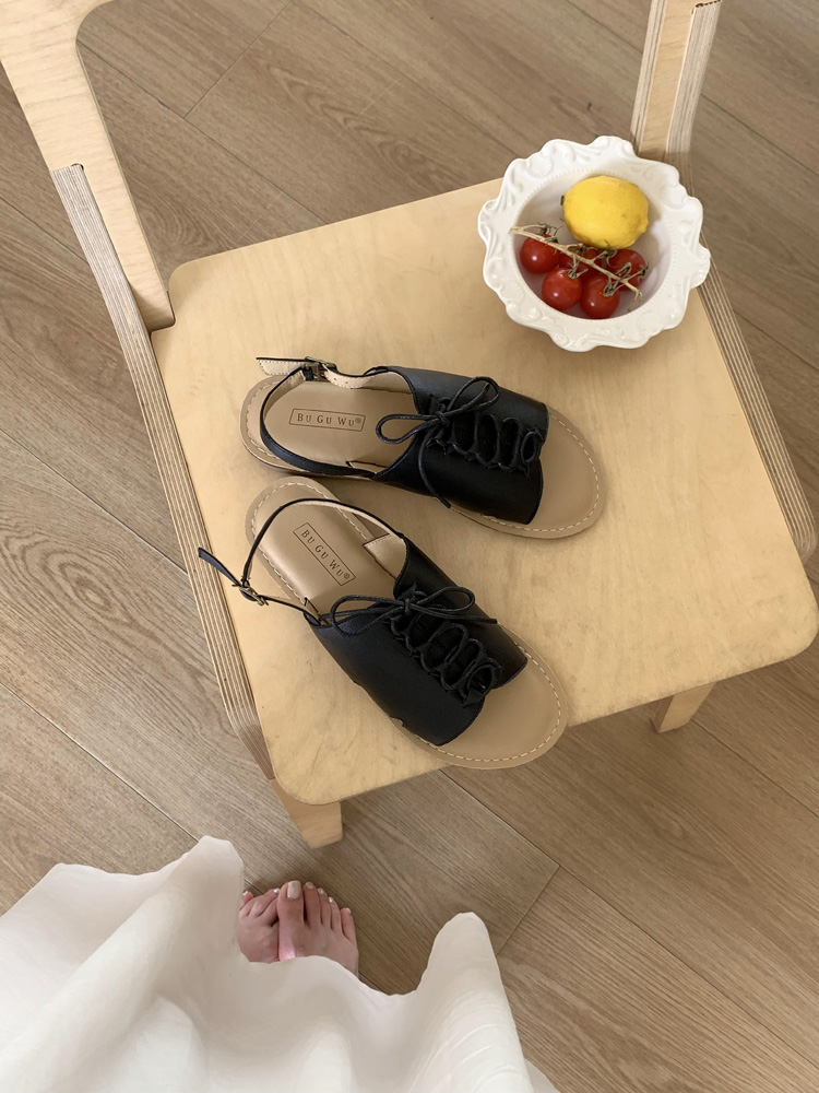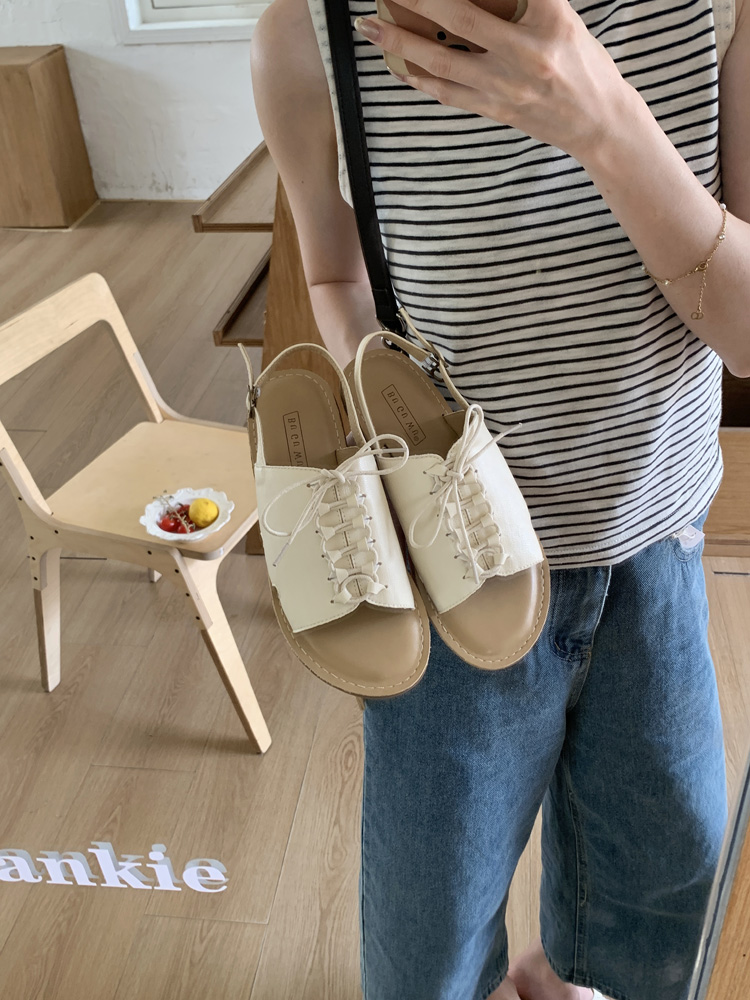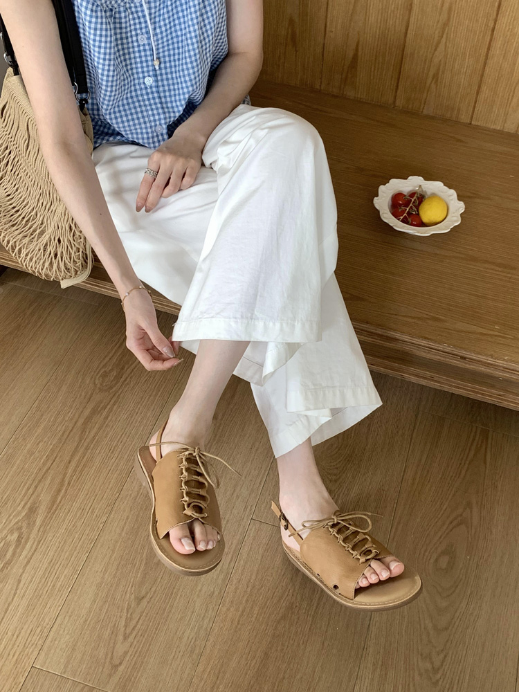 여성용 로마 샌들 2025 여름 새 스타일 플랫 밑창 레이스 업 요정 스타일 화이트 스커트 라운드 발가락 여성용 간단한 샌들스토어 가기