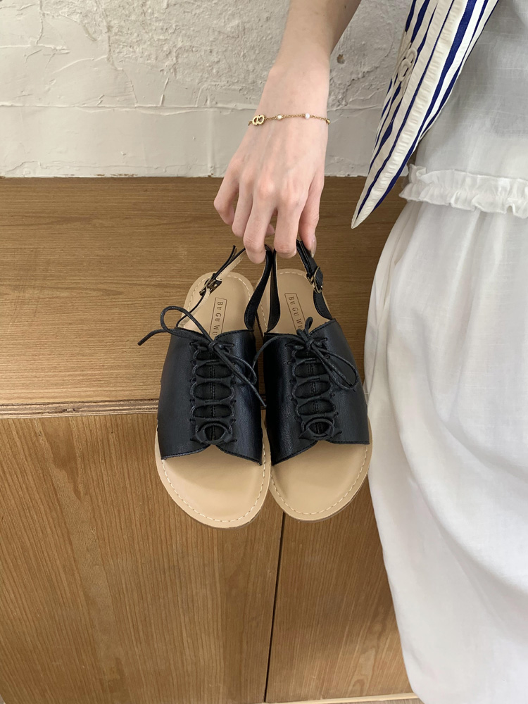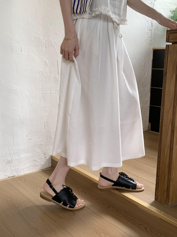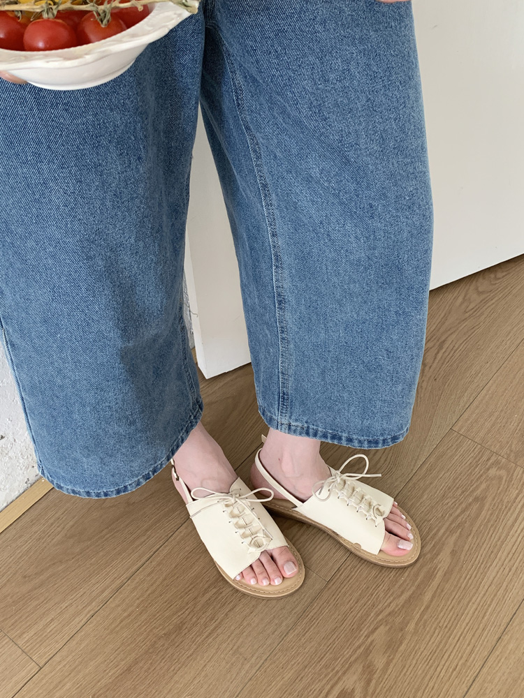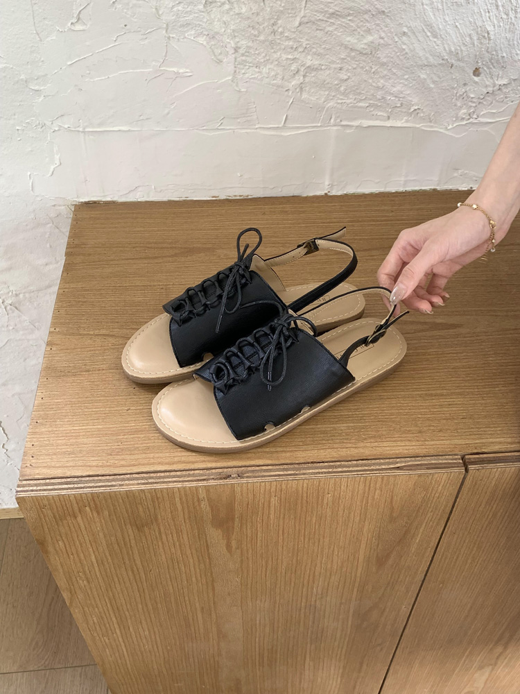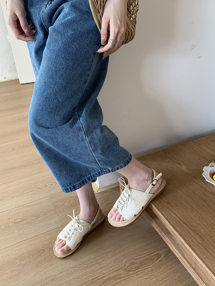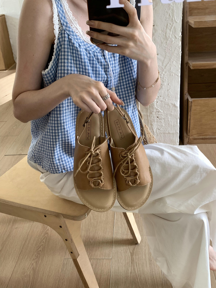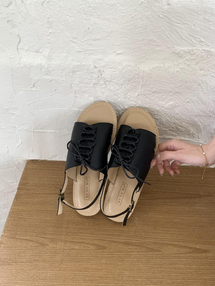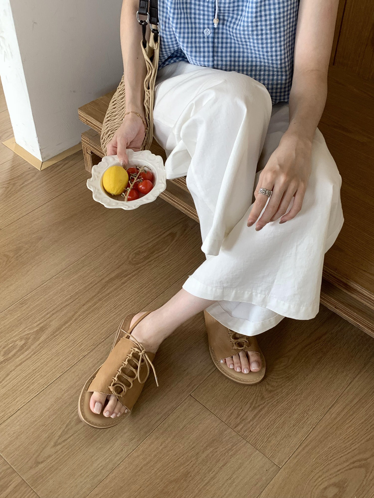 여성용 로마 샌들 2025 여름 새 스타일 플랫 밑창 레이스 업 요정 스타일 화이트 스커트 라운드 발가락 여성용 간단한 샌들스토어 가기