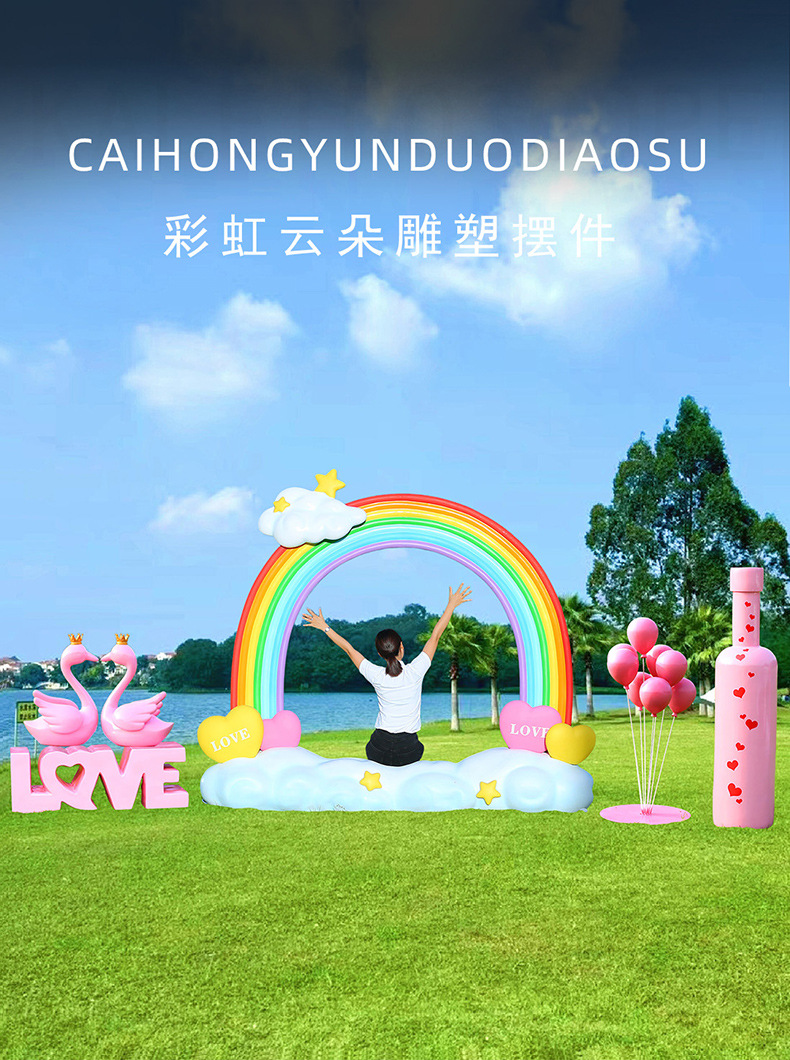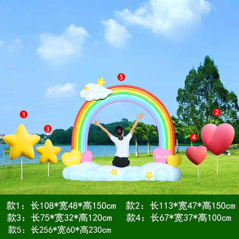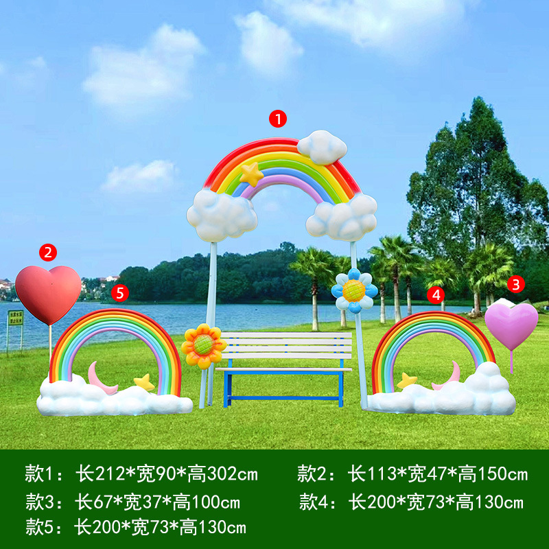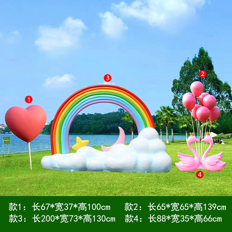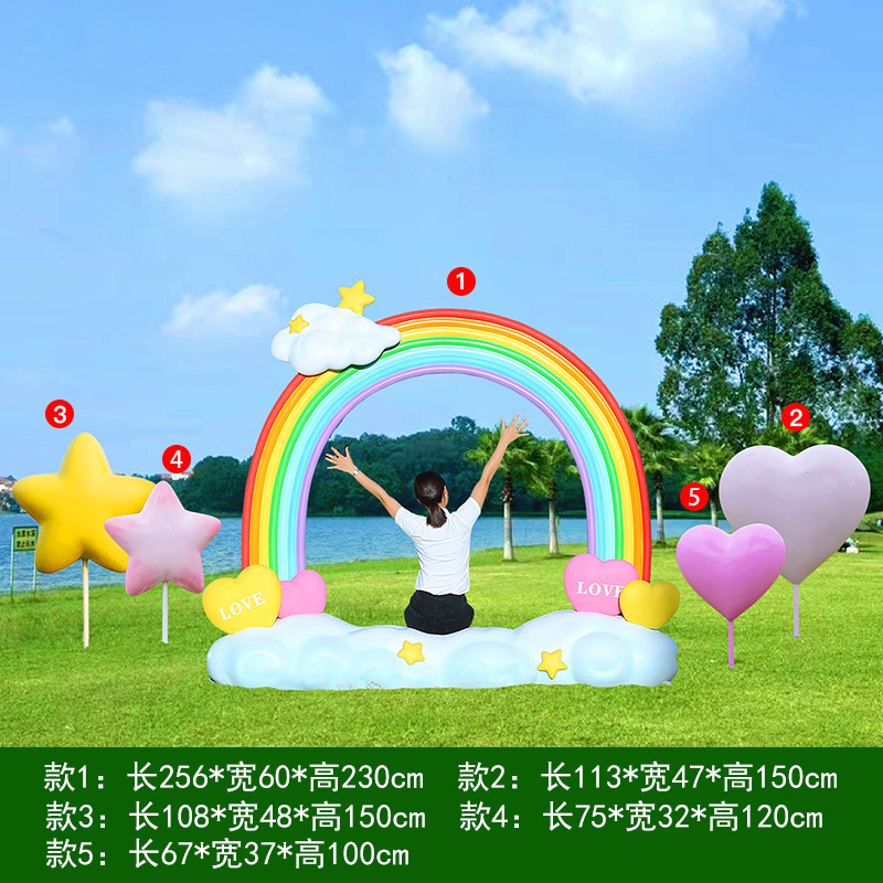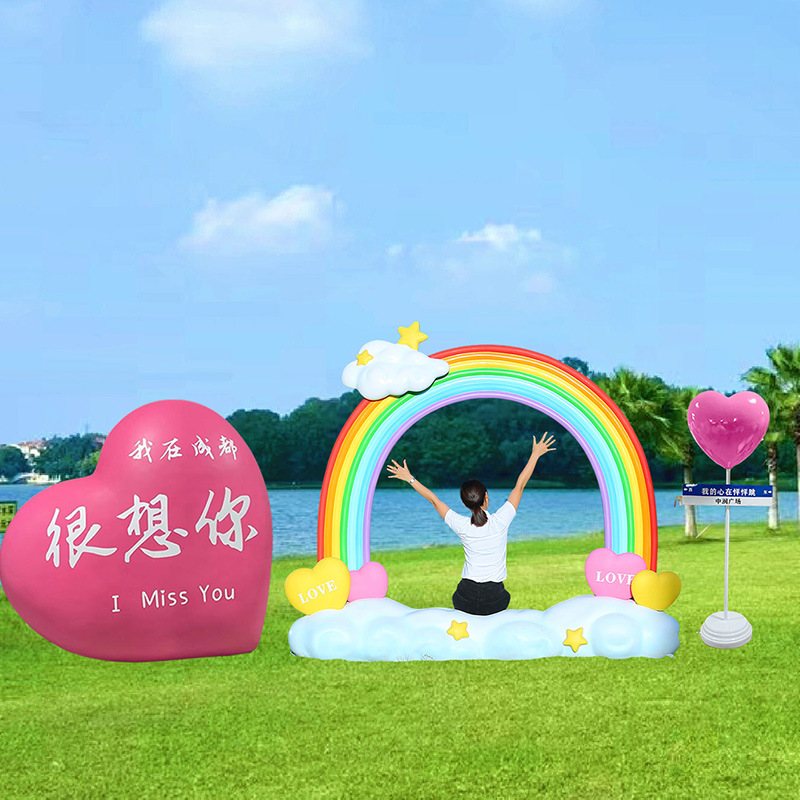 야외 사랑 카드 큰 장식품 사업 지구 무지개 구름 바닥 조각 유치원 유리 섬유 강화 플라스틱 장식
