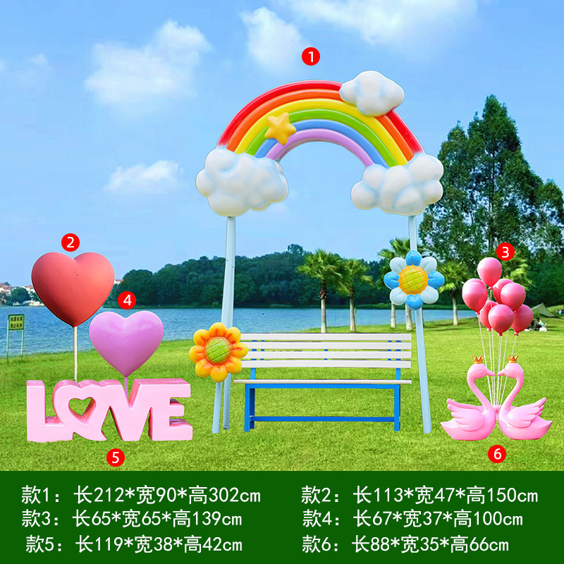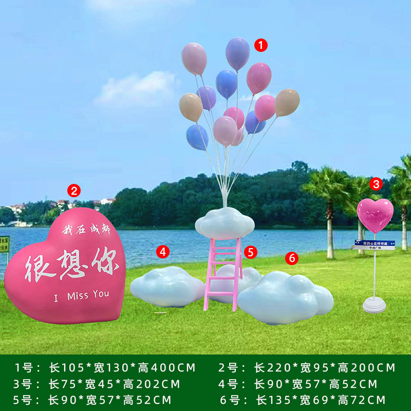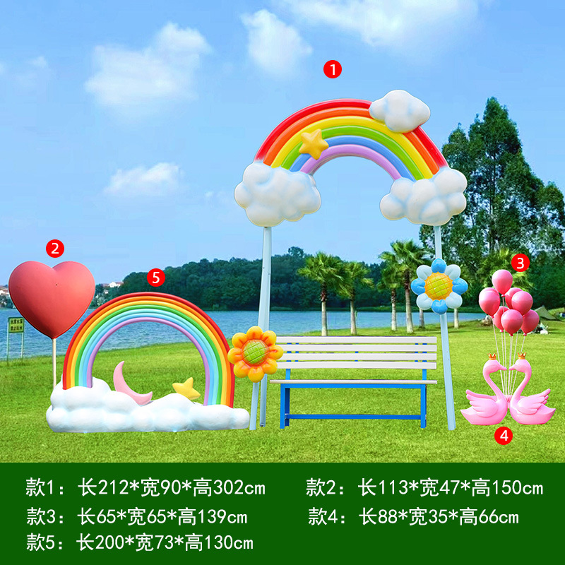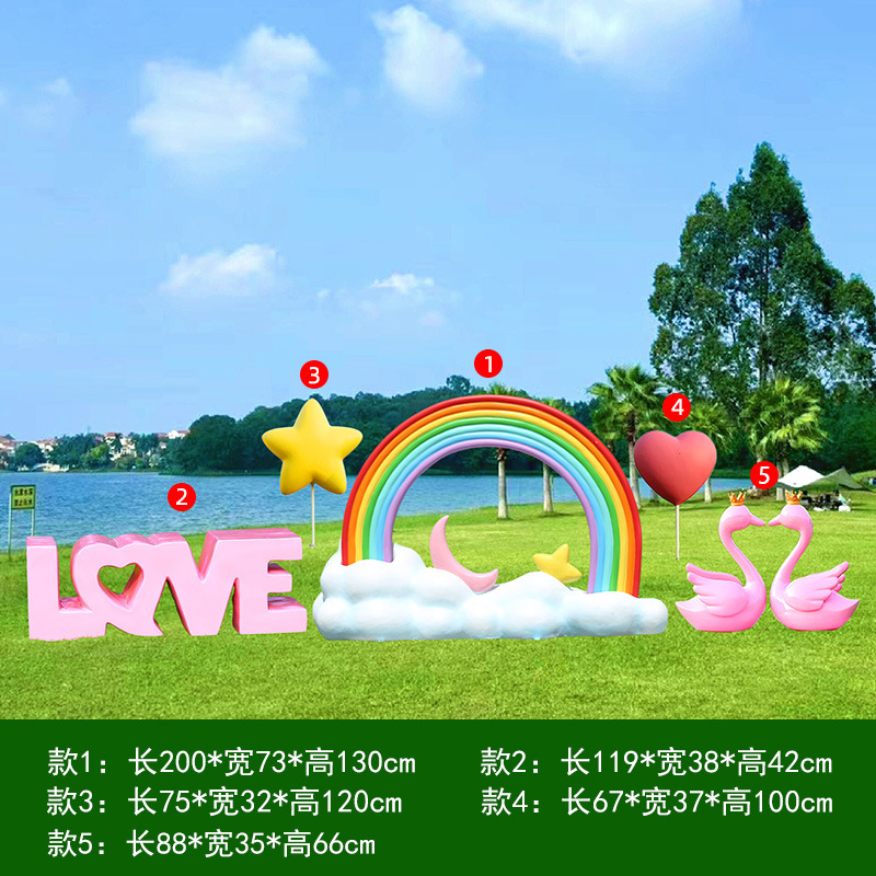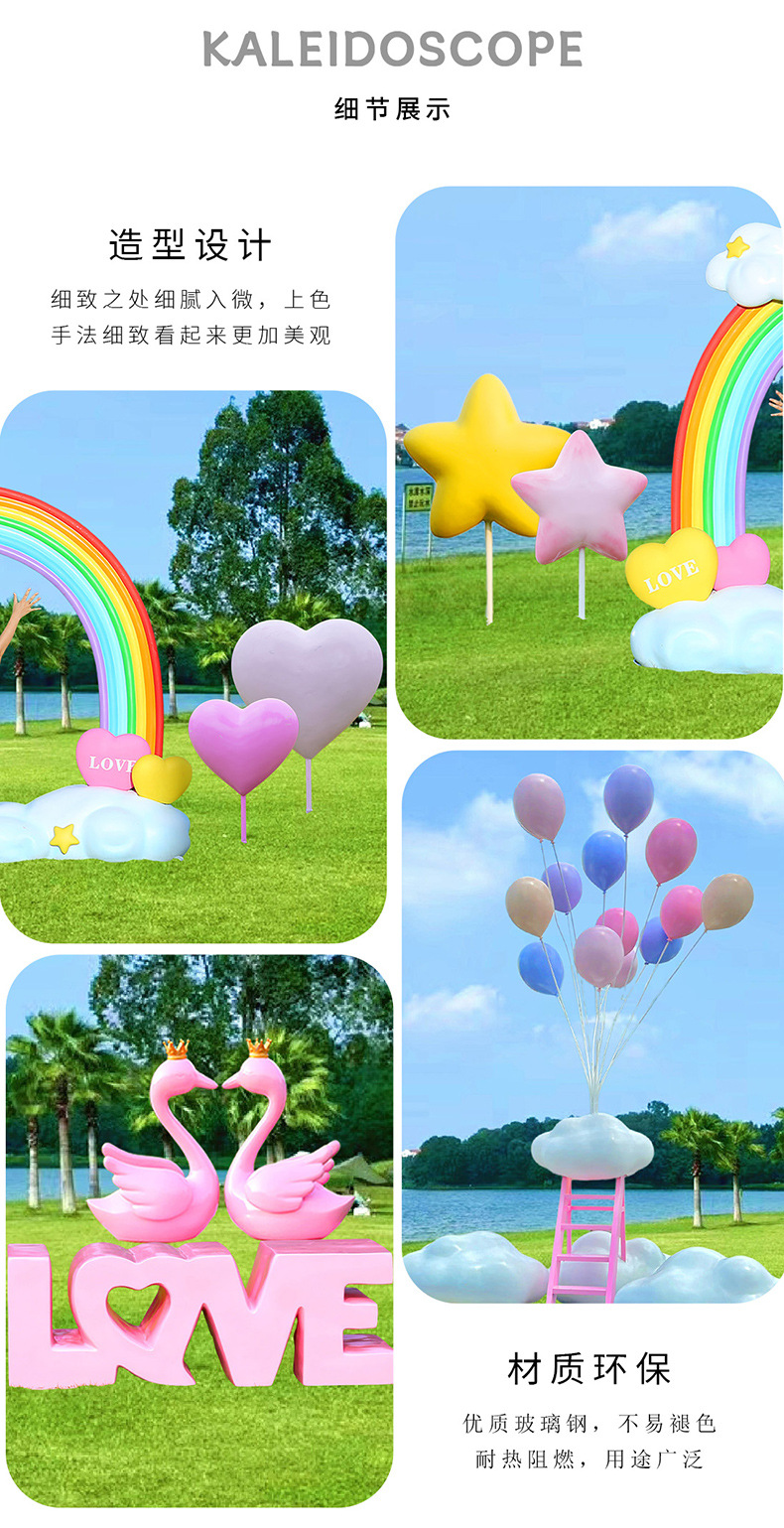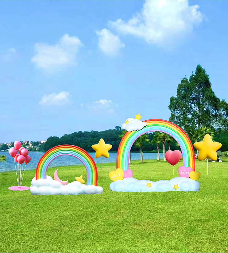 야외 사랑 카드 큰 장식품 사업 지구 무지개 구름 바닥 조각 유치원 유리 섬유 강화 플라스틱 장식