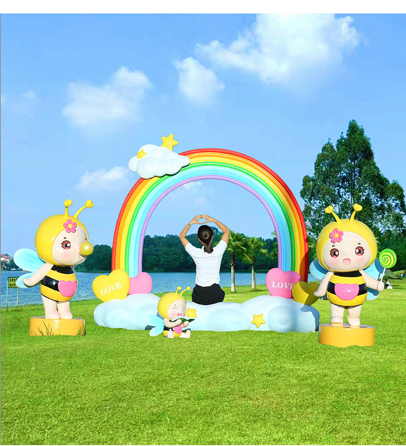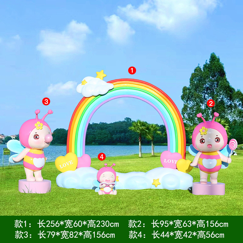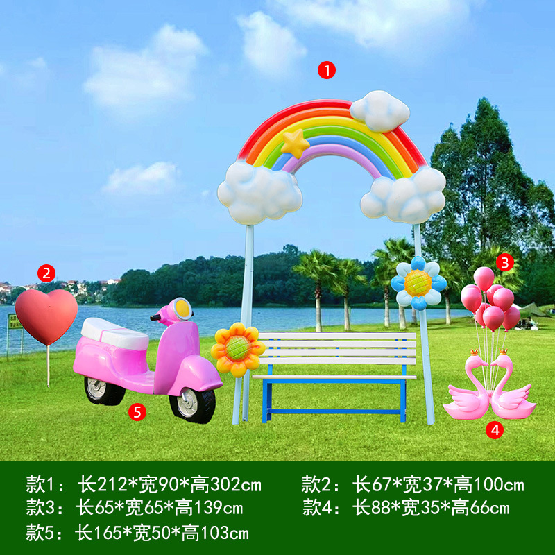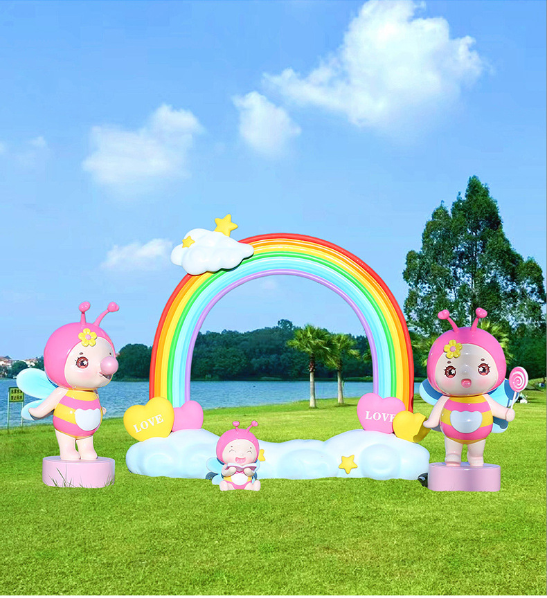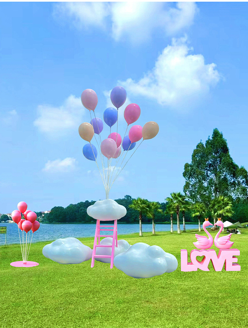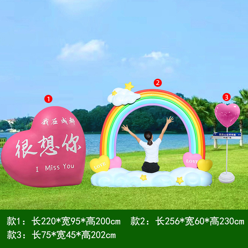 야외 사랑 카드 큰 장식품 사업 지구 무지개 구름 바닥 조각 유치원 유리 섬유 강화 플라스틱 장식