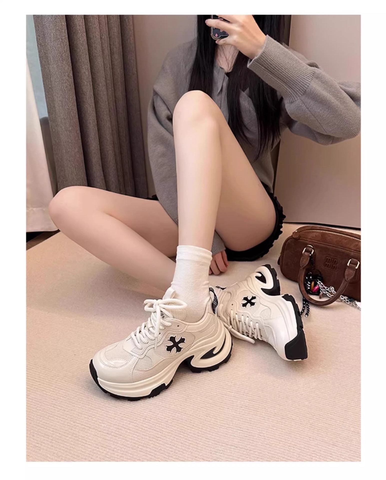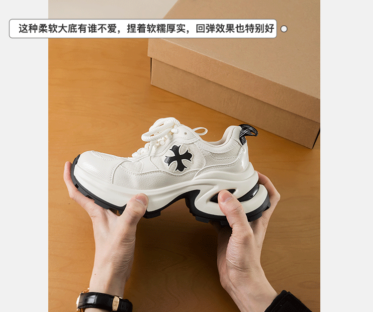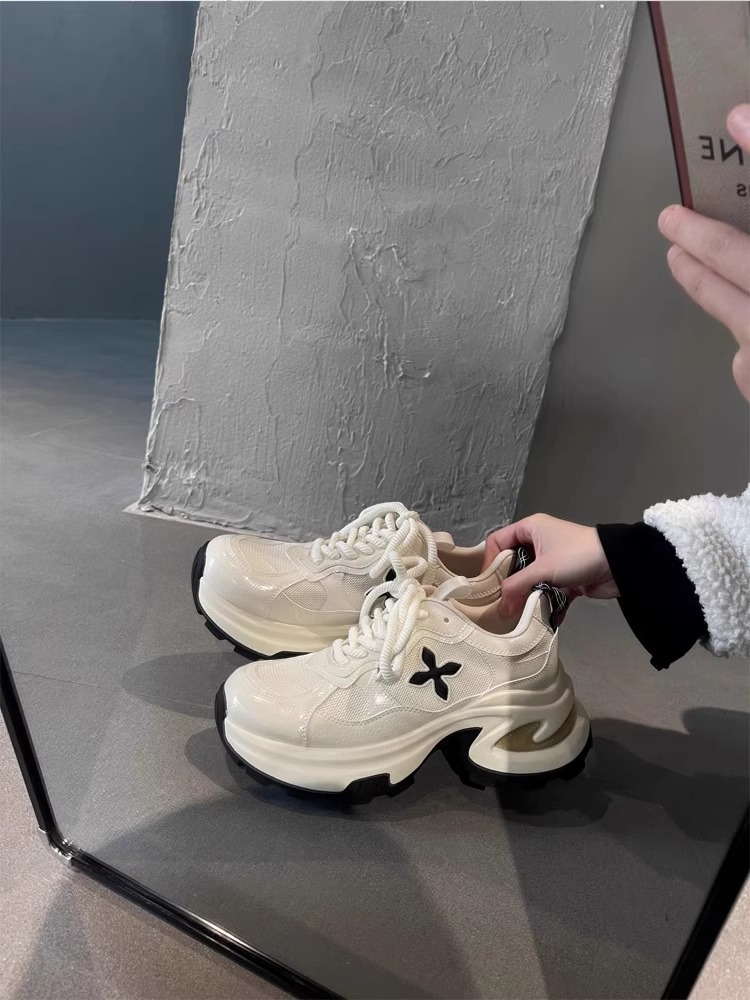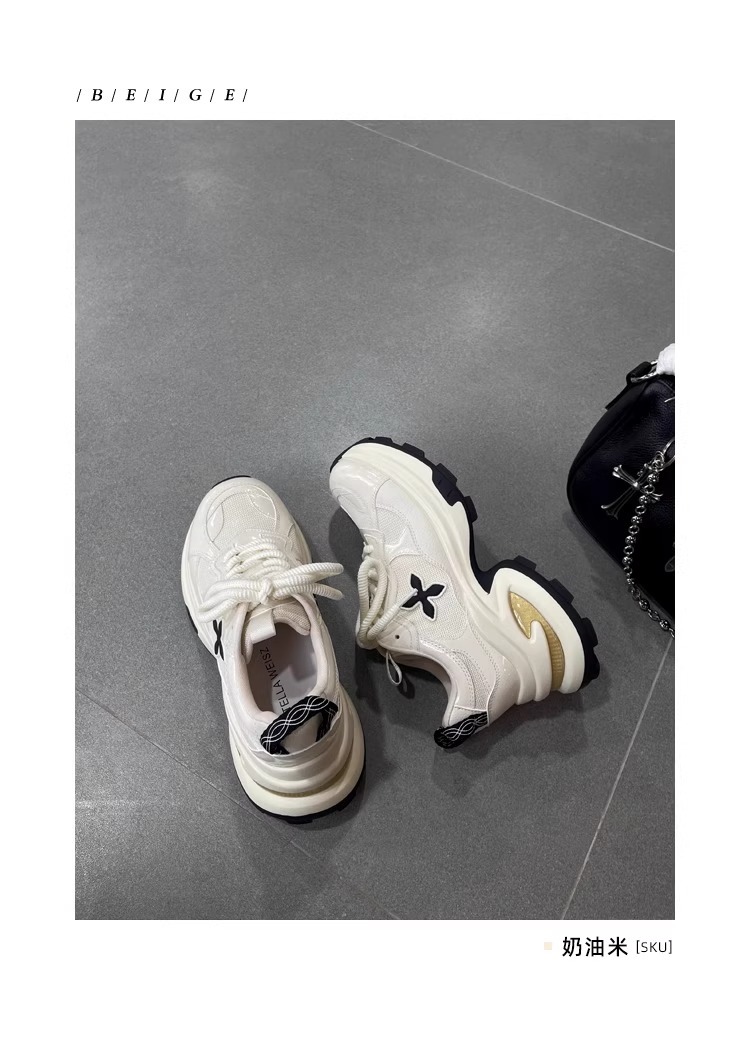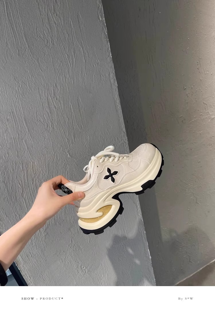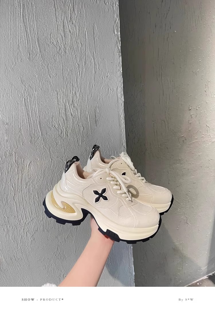 7.5cm 증가 ~ 가죽 십자화과 두꺼운 밑창 토르 신발 여성 봄 새로운 통기성 운동화 캐주얼 운동화스토어 가기
