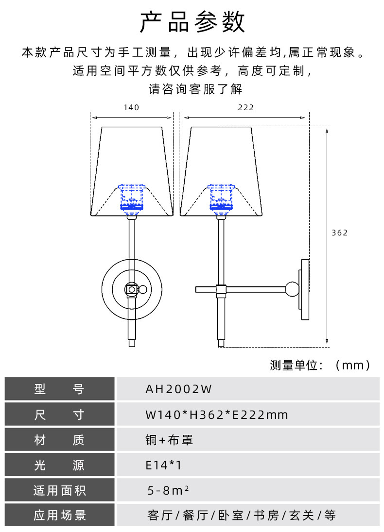 전체 구리 미국 벽 램프 빛 럭셔리 현대 간단한 패션 개성 창조적 인 북유럽 레스토랑 침실 룸 빌라 천 커버