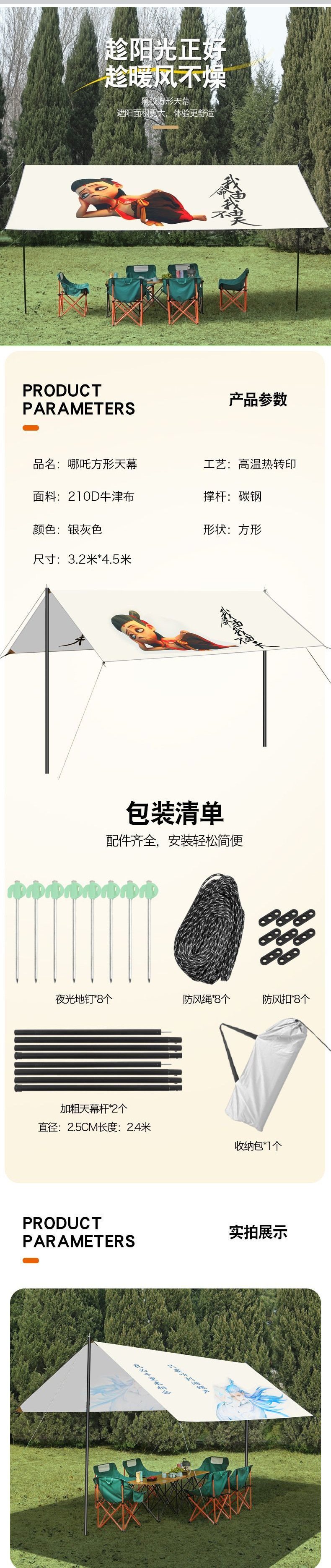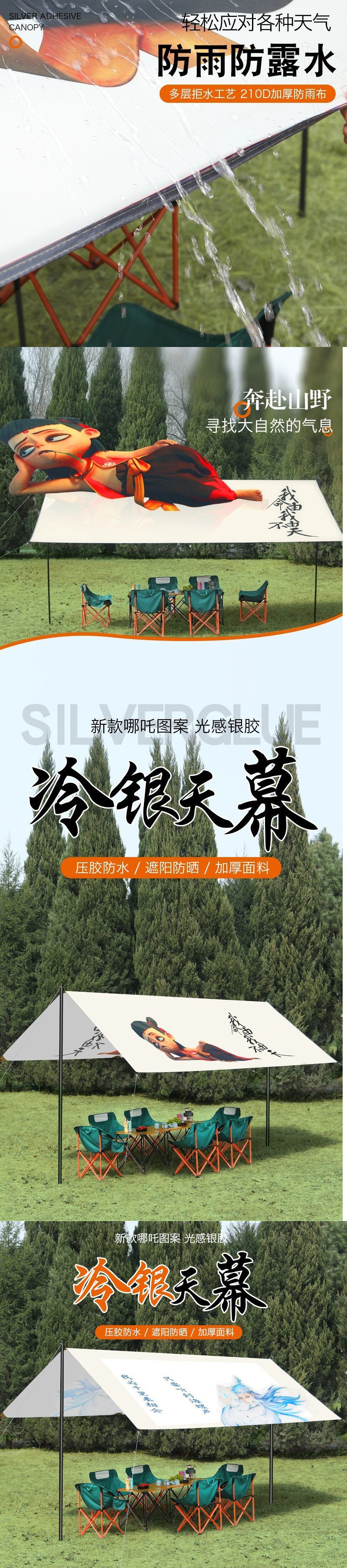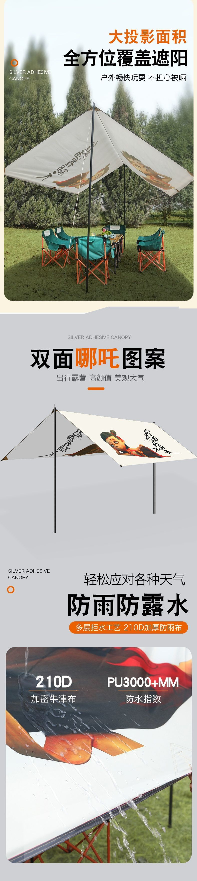 야외 대형 캐노피 만화 낙서 Nezha 파라솔 단열 Ao Bing 캠핑 바베큐 우산스토어 가기