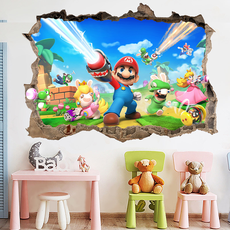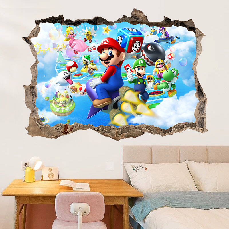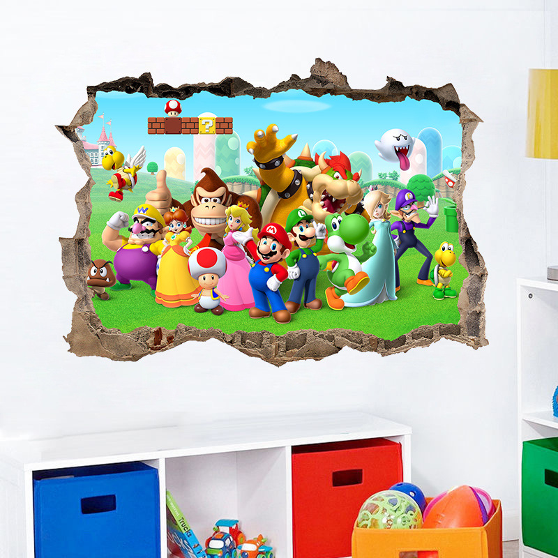 슈퍼 마리오 스티커 마리오 만화 애니메이션 2 차원 스티커 어린이 방 침실 거실 방수 자체 접착 벽
