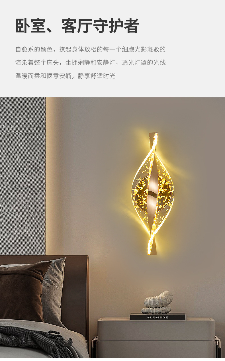 포스트 모던 미니멀 크리 에이 티브 침실 머리맡 벽 램프 아크릴 투명 연기 빛 럭셔리 분위기 램프 하이 엔드 벽 램프스토어 가기