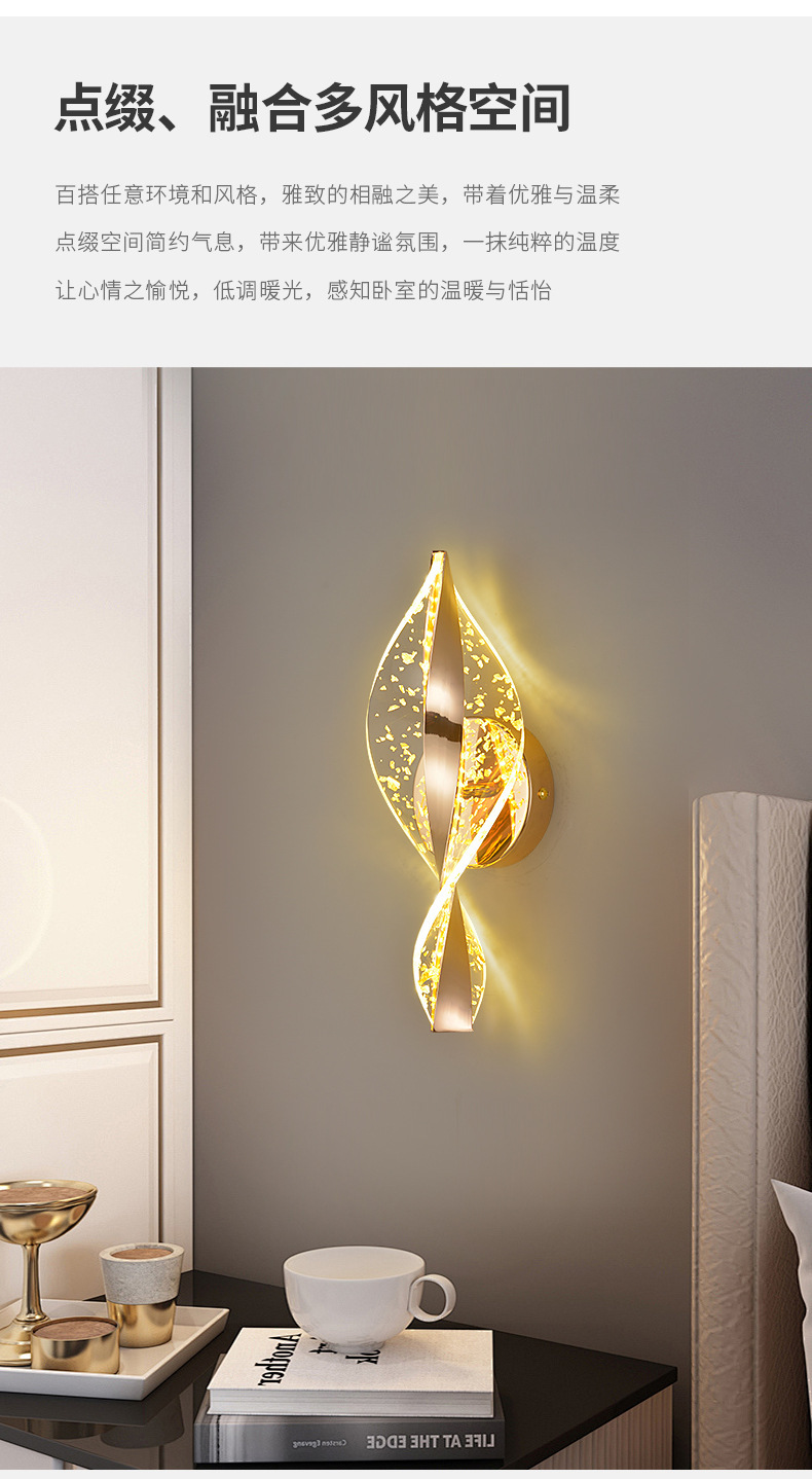 포스트 모던 미니멀 크리 에이 티브 침실 머리맡 벽 램프 아크릴 투명 연기 빛 럭셔리 분위기 램프 하이 엔드 벽 램프