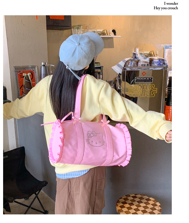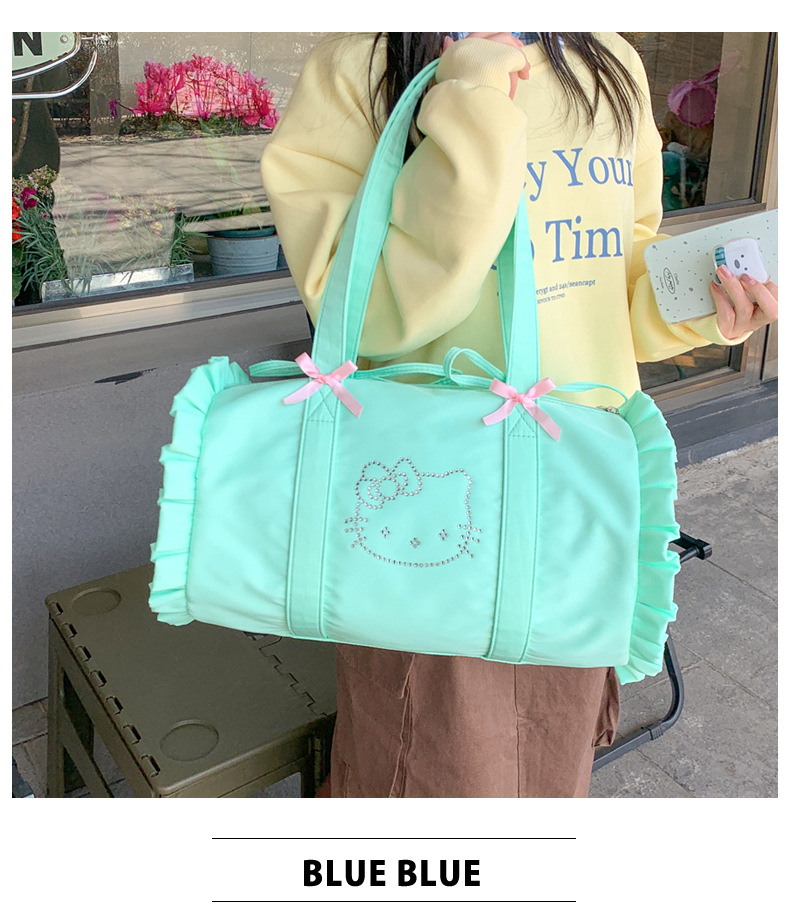 2025 새로운 여름 kt 고양이 활 신선한 민트 그린 경량 다목적 캐주얼 소녀 대용량 피트니스 가방