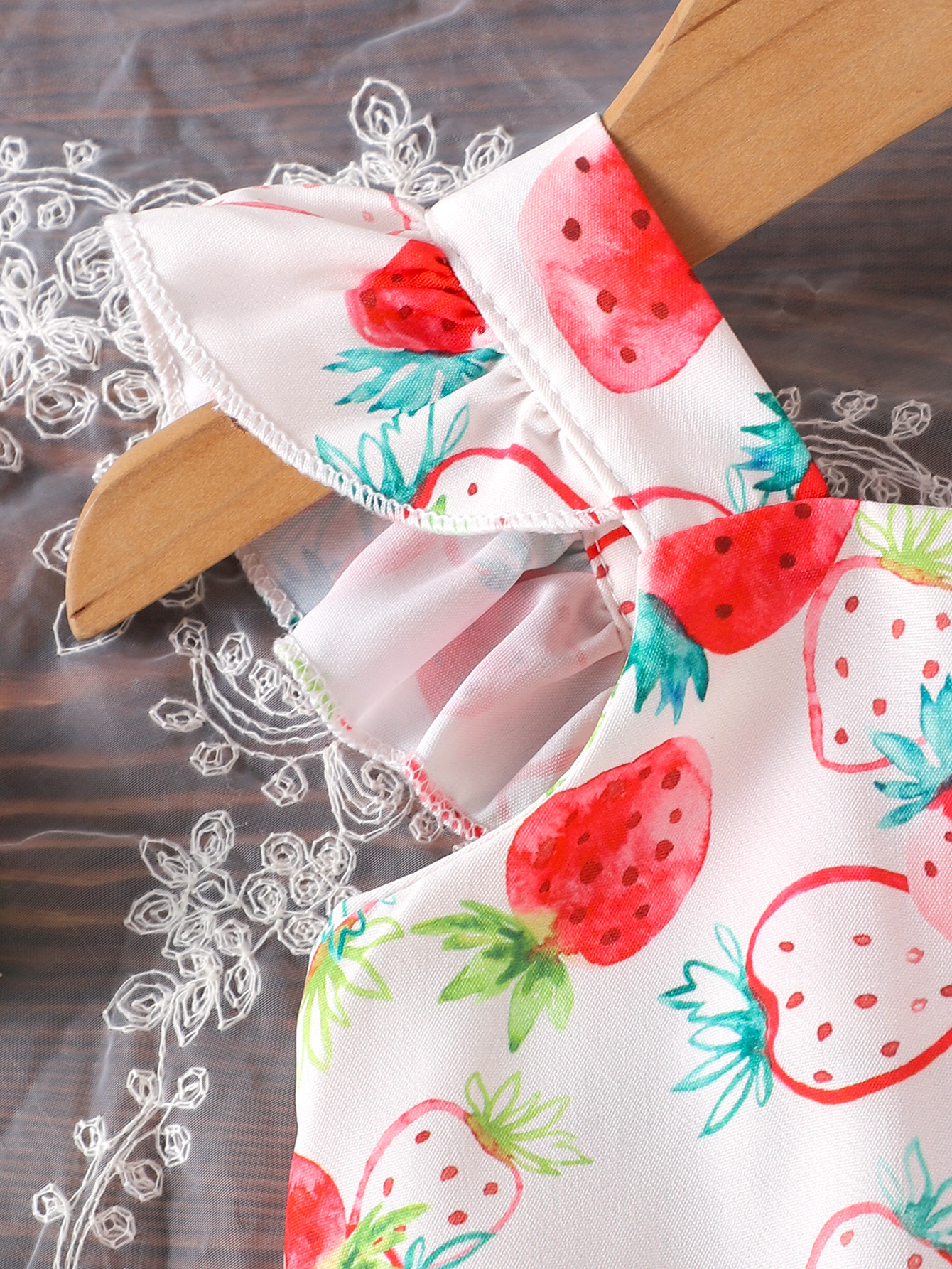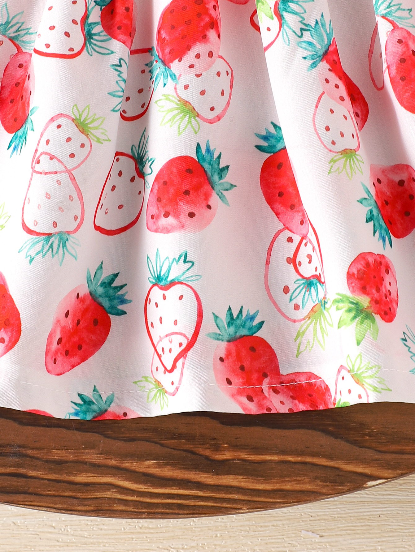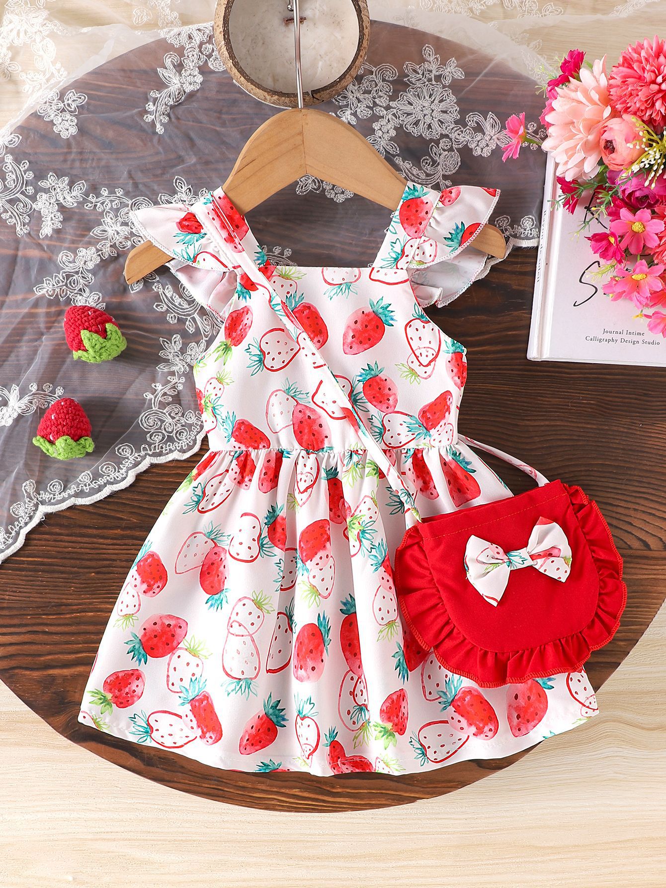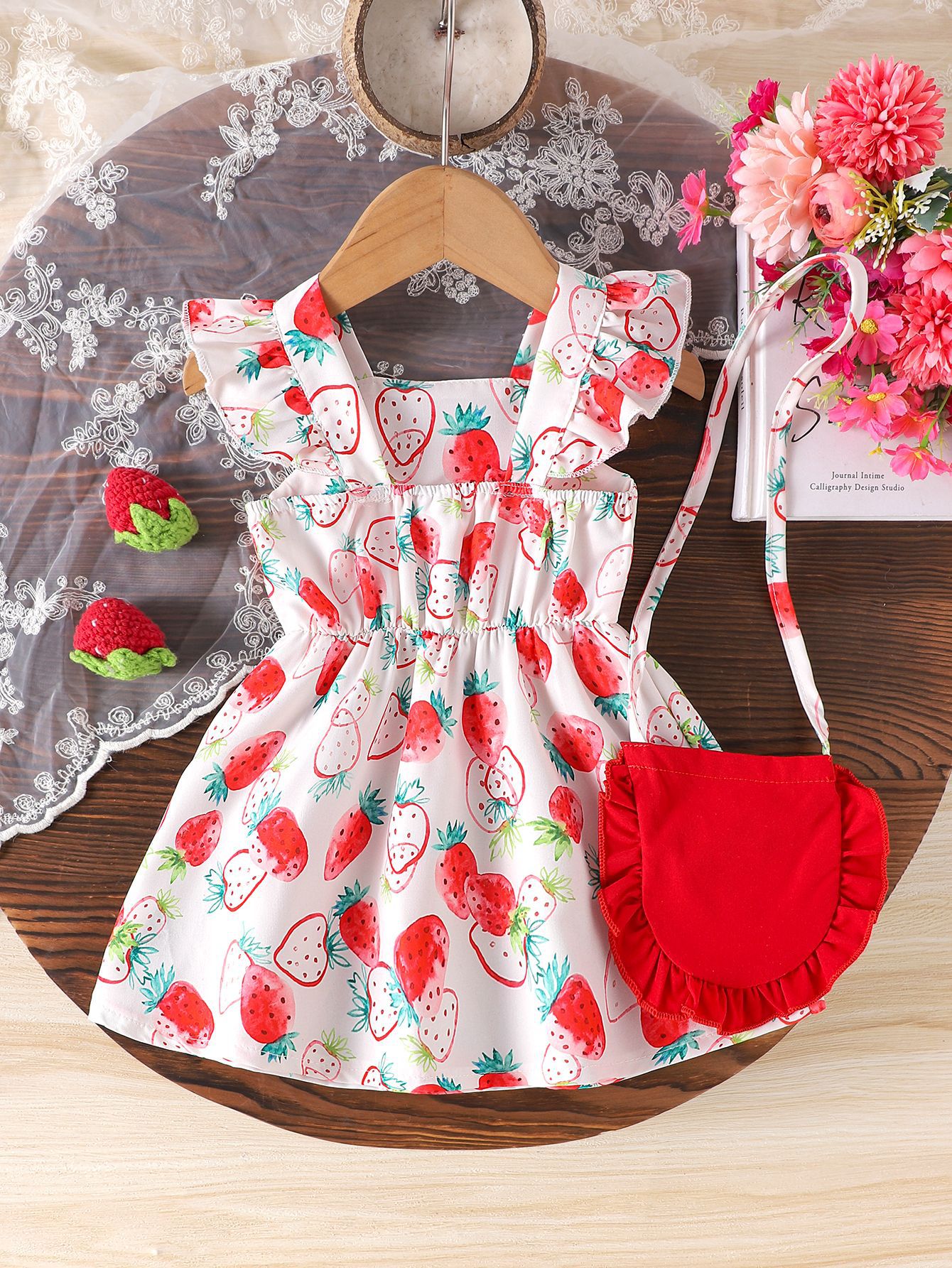 국경 간 유럽과 미국 shein 여름 귀여운 아기 소녀 세트 아기 비행 소매 딸기 인쇄 원피스 가방