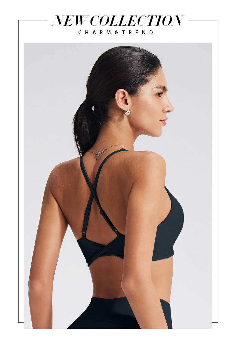여성용 크로스보더 요가복 스포츠 브라, 충격 방지 푸쉬업 트레이닝 슬링, 아름다운 등 요가 조끼, 피트니스 스포츠 브라