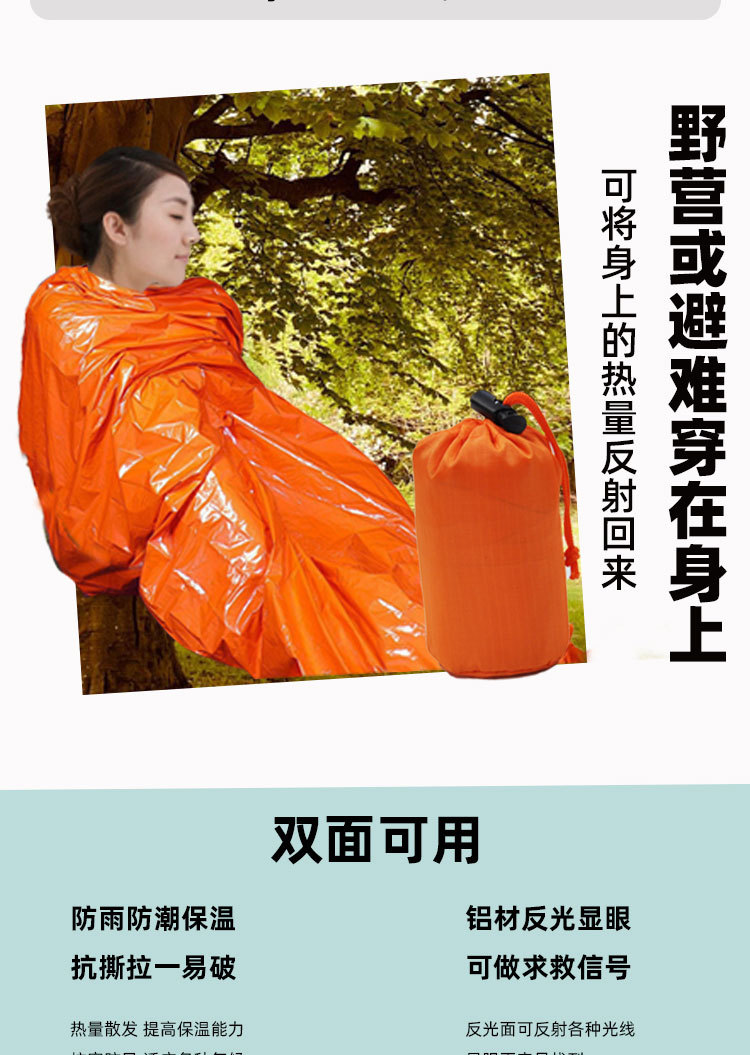 야외 열 손실 방지 침낭 PE 알루미늄 필름 스포츠 응급 처치 텐트 침낭 따뜻한 오렌지 열 프레스 응급 침낭스토어 가기
