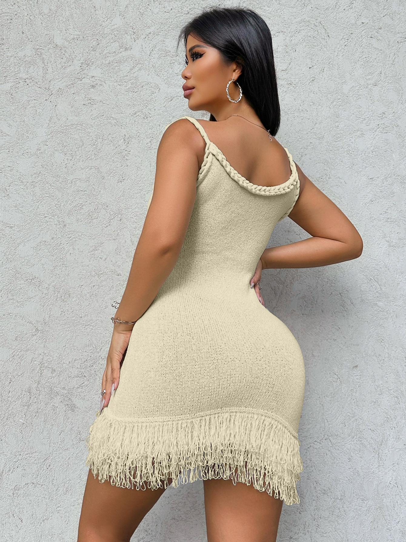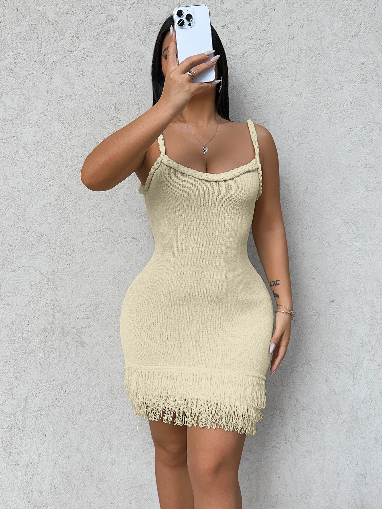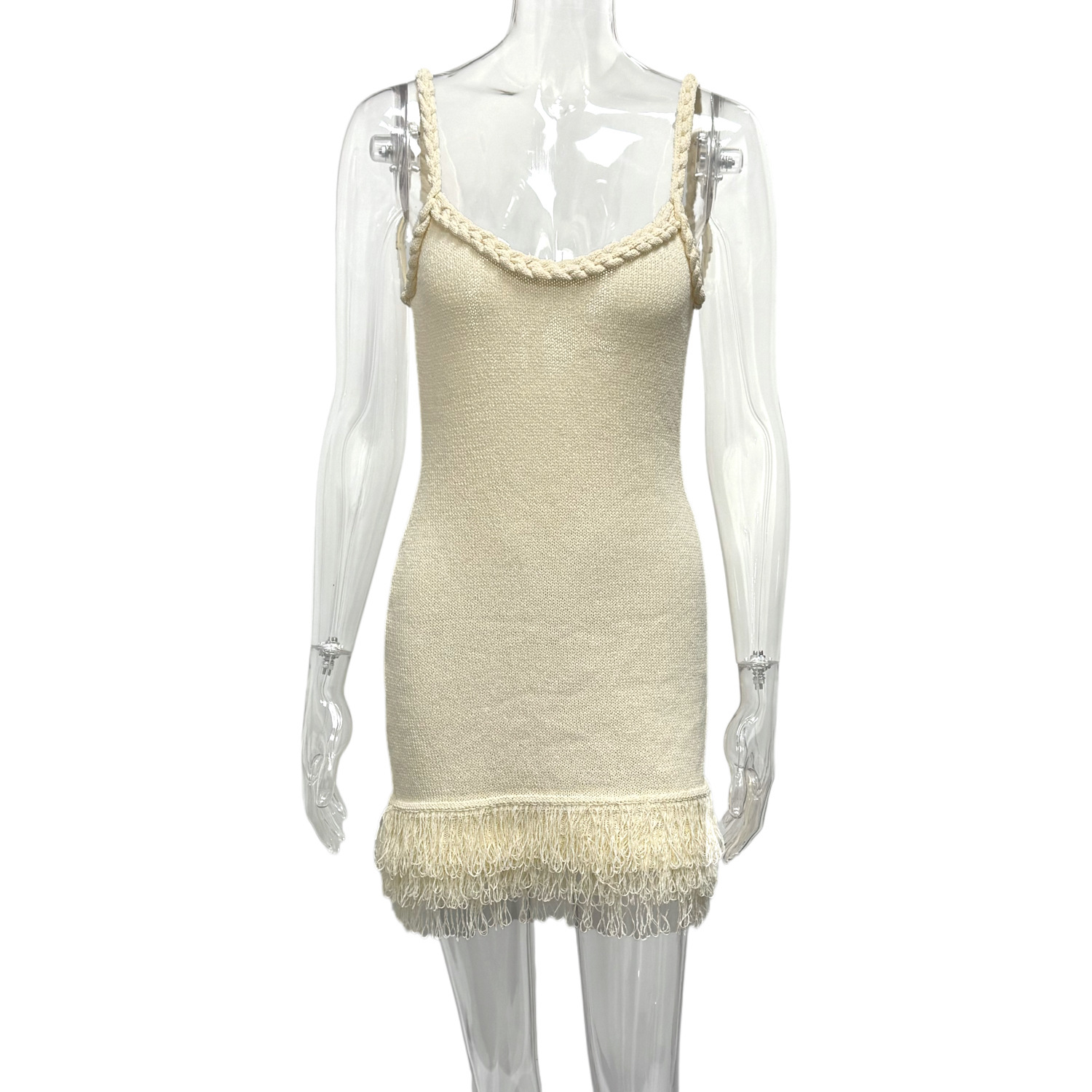 유럽과 미국 2025 봄 여름 수제 꼬임 로프 숄더 스트랩 힙허깅 태슬 스커트 드레스 도매 핫걸스토어 가기