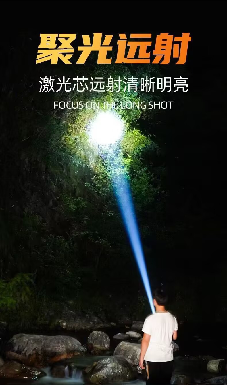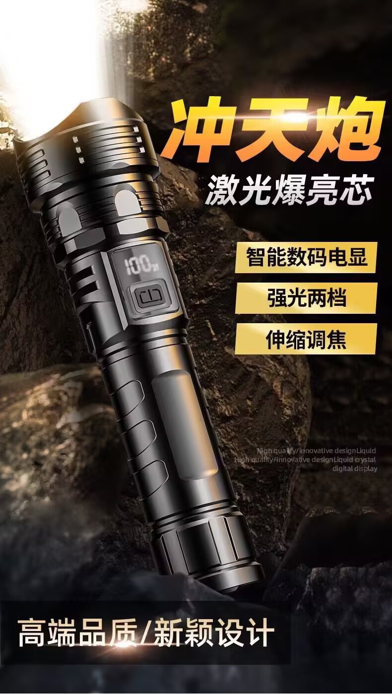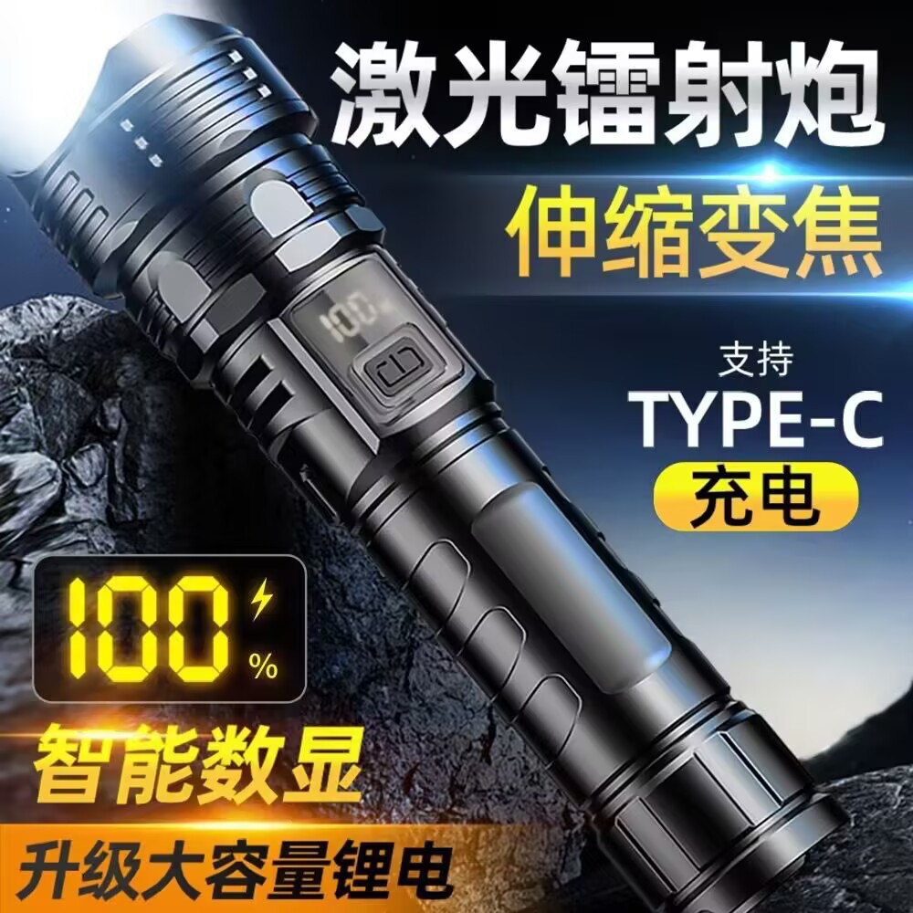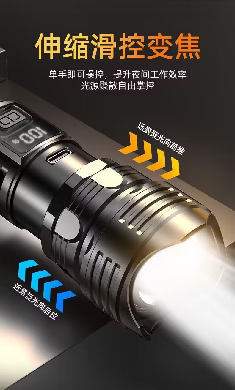 국경을 넘는 고출력 야외용 손전등, 다기능 디지털 디스플레이, 충전식 줌 기능, 순찰용 탐조등, 강력한 조명스토어 가기