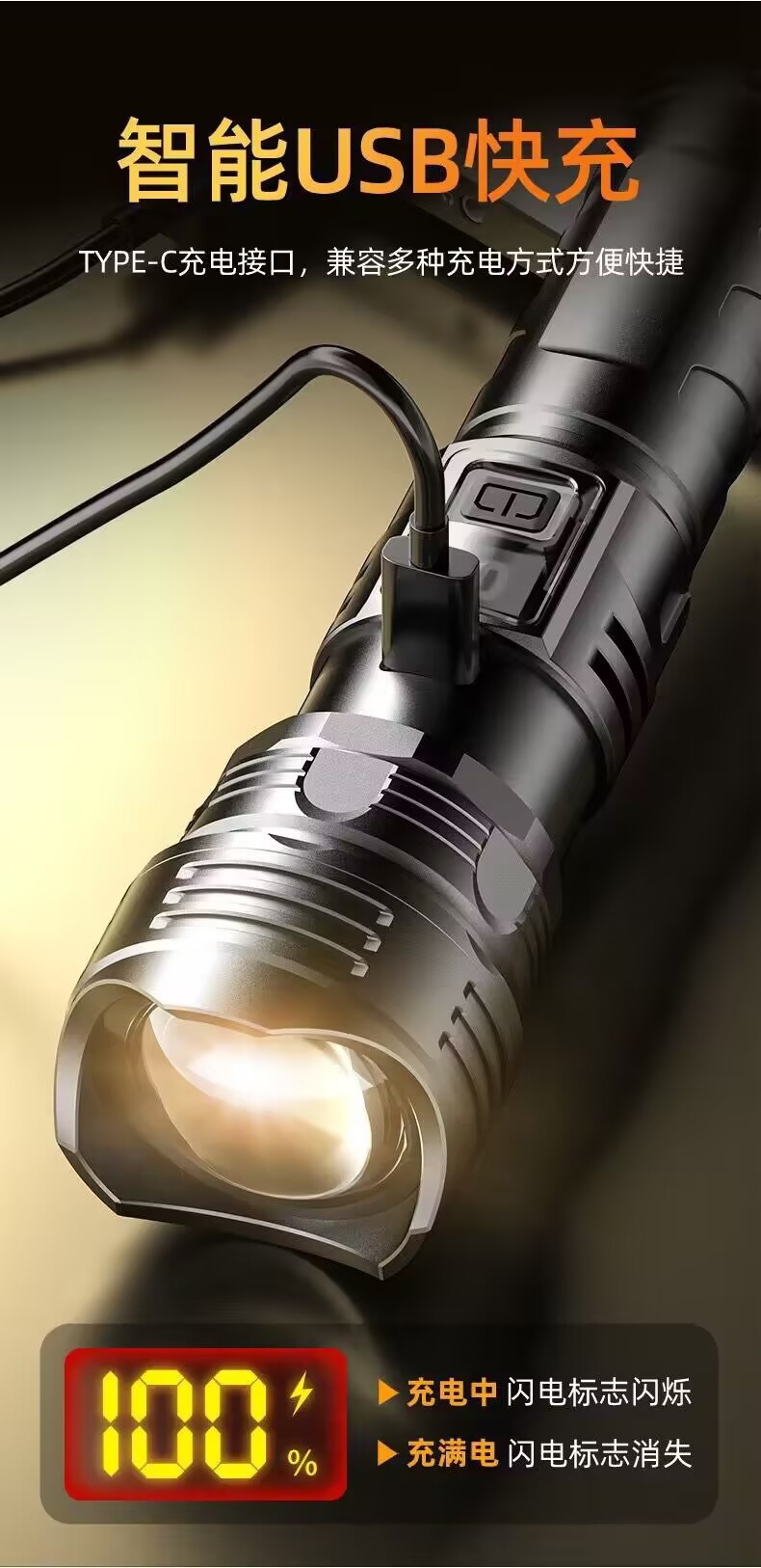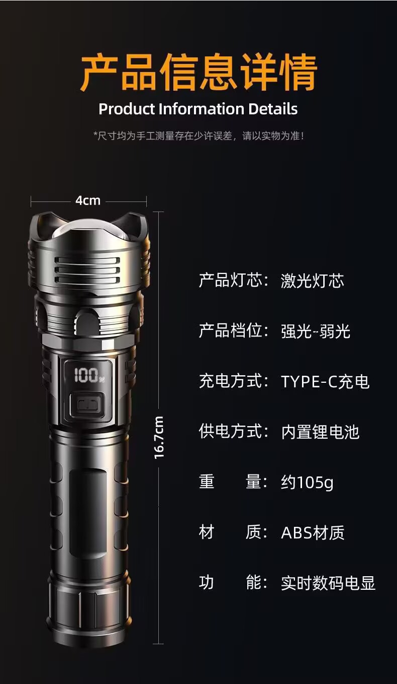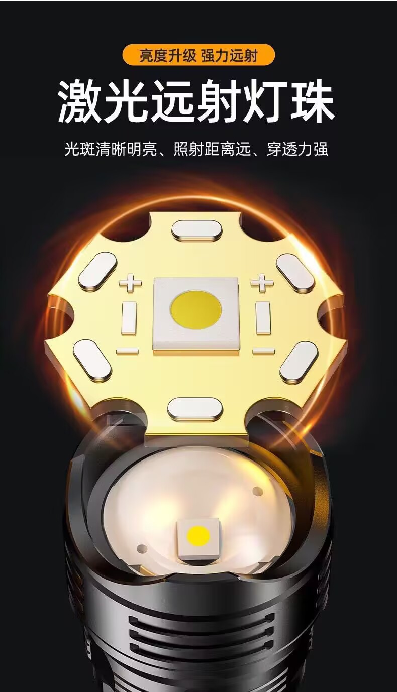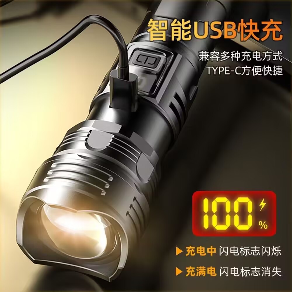 국경을 넘는 고출력 야외용 손전등, 다기능 디지털 디스플레이, 충전식 줌 기능, 순찰용 탐조등, 강력한 조명스토어 가기