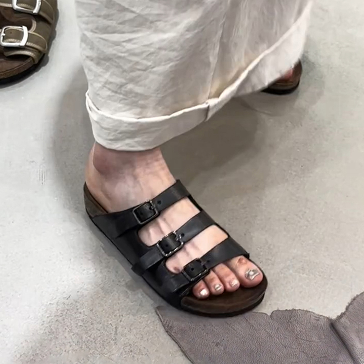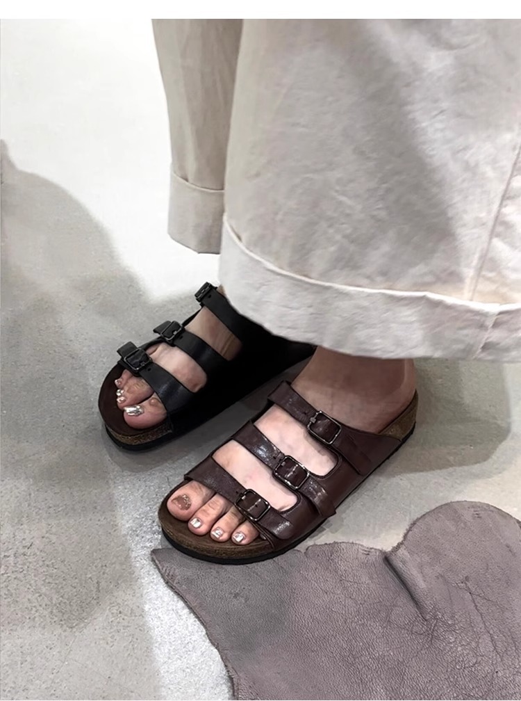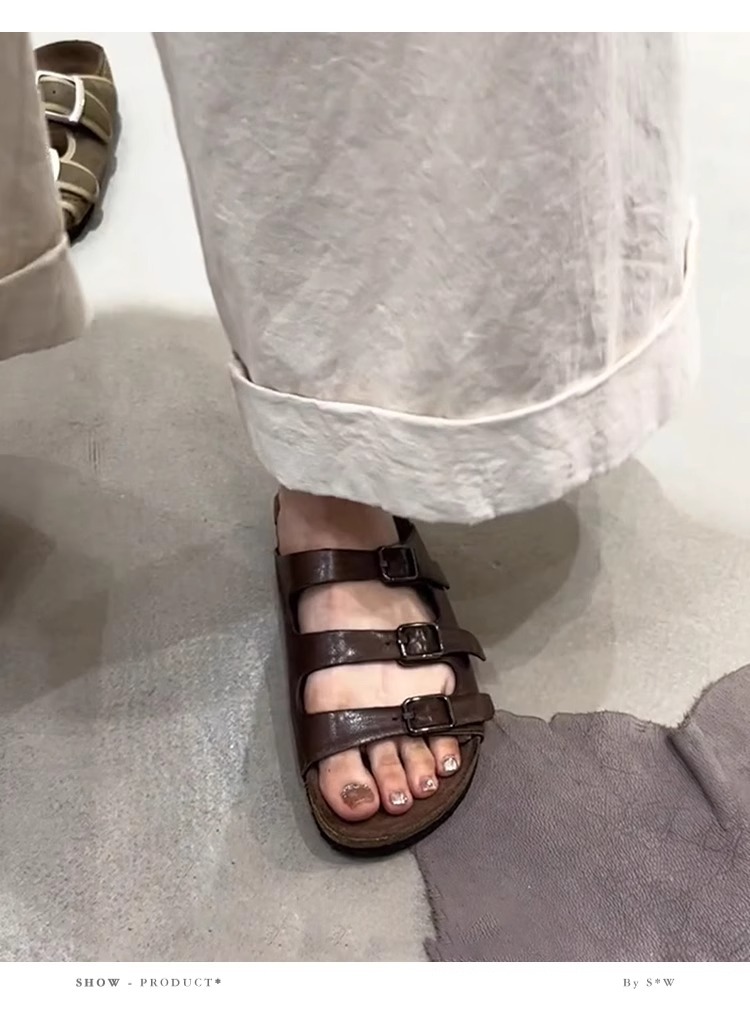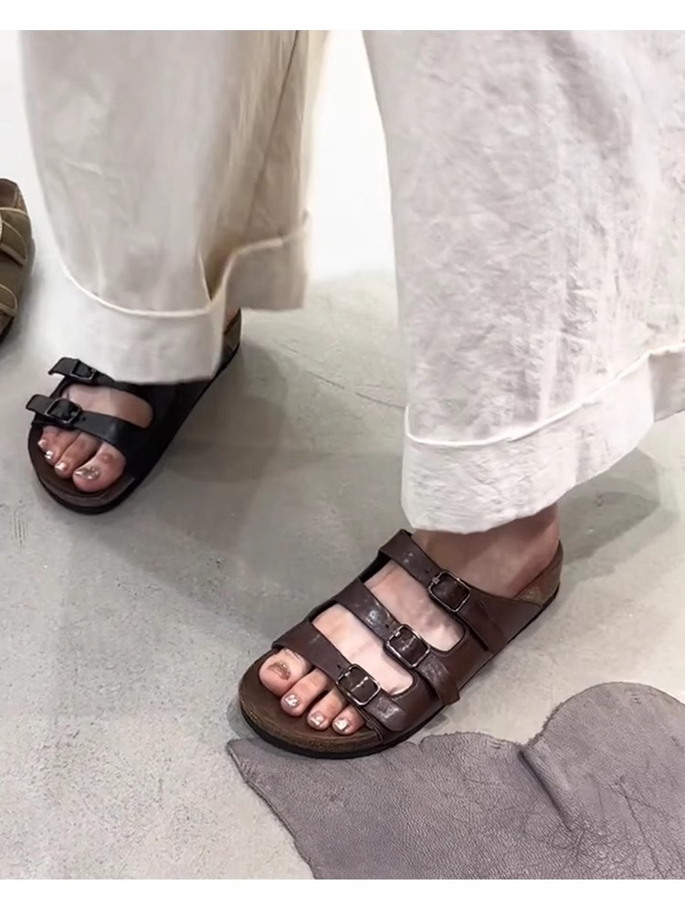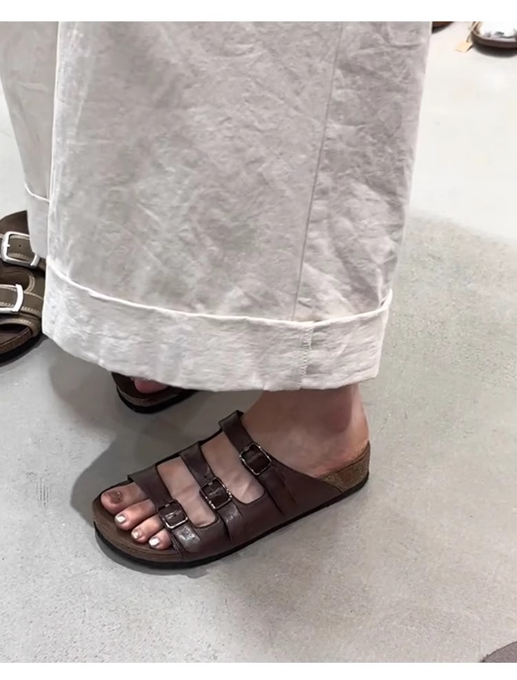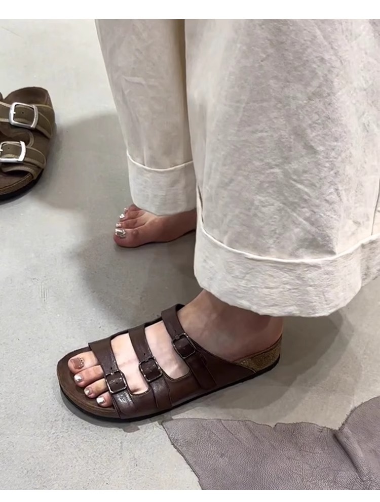 양가죽 버전 ~ 레트로 벨트 버클 정품 가죽 슬리퍼 여성용 플랫 올매치 게으른 슬립 온 아웃웨어 버켄 네스 신발스토어 가기