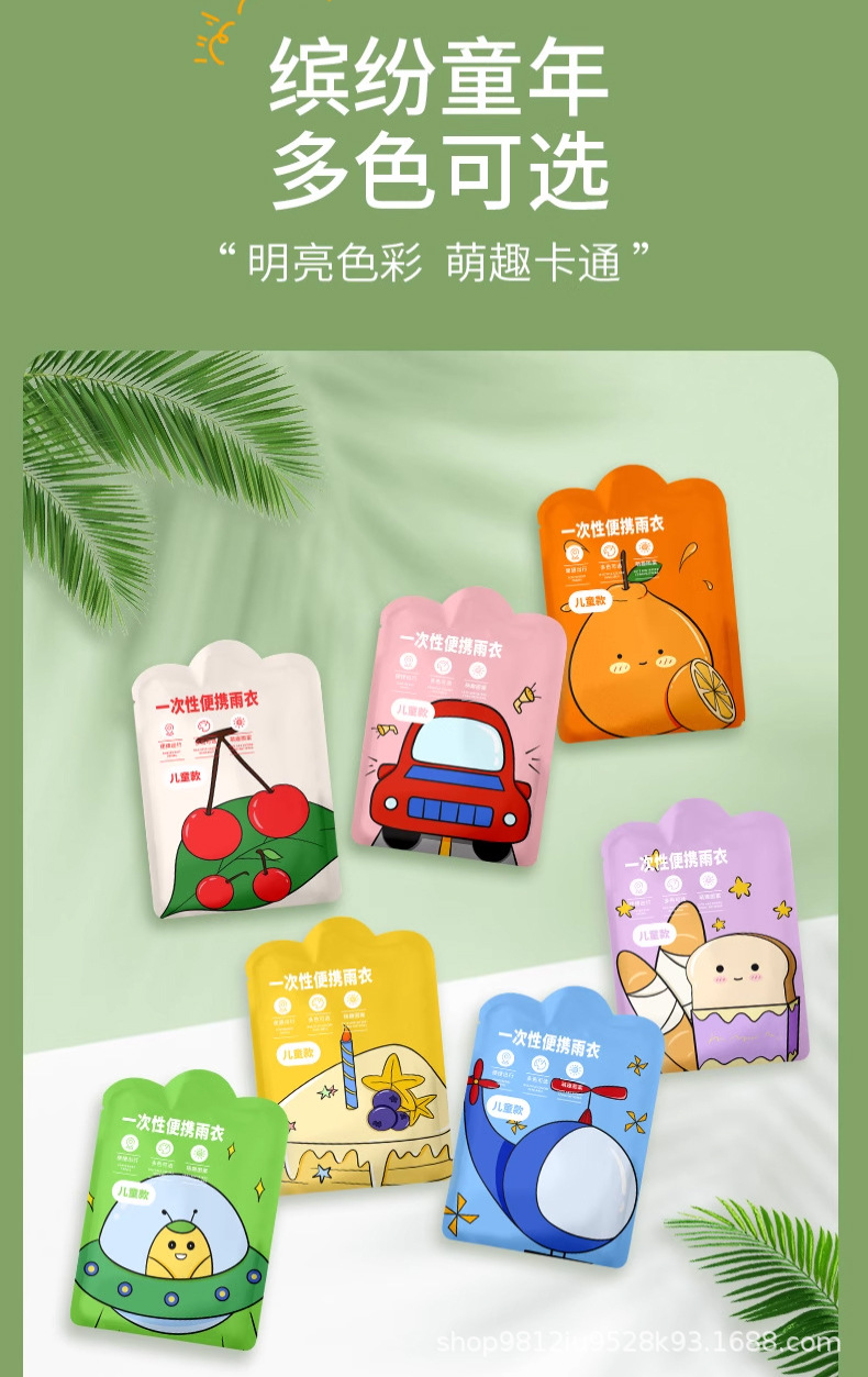 어린이 일회용 비옷 카드 휴대용 두꺼운 만화 야외 하이킹 여행 학교 가방이있는 확장 판초