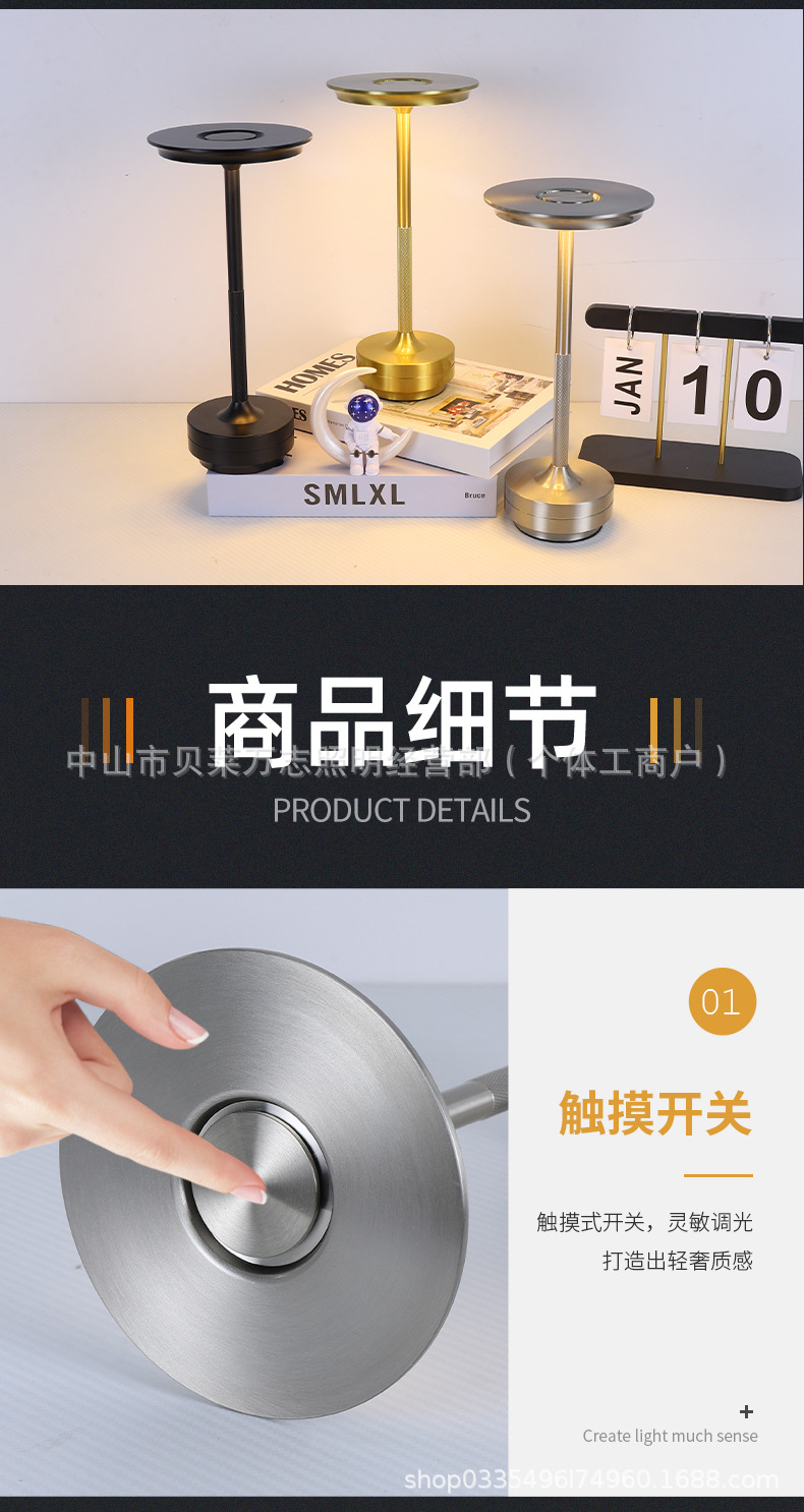 국경 간 전체 알루미늄 터치 테이블 램프 호텔 레스토랑 USB 충전 I 자형 램프 금속 램프 장식 간단한 작은 테이블 램프스토어 가기