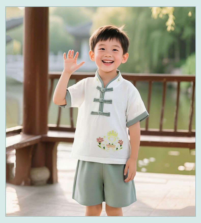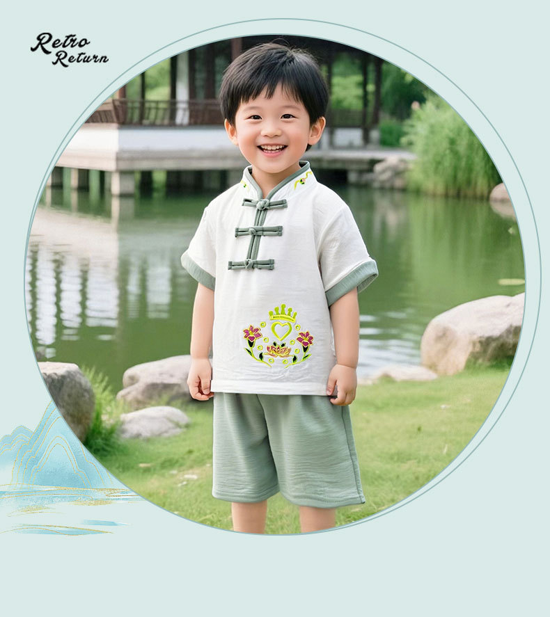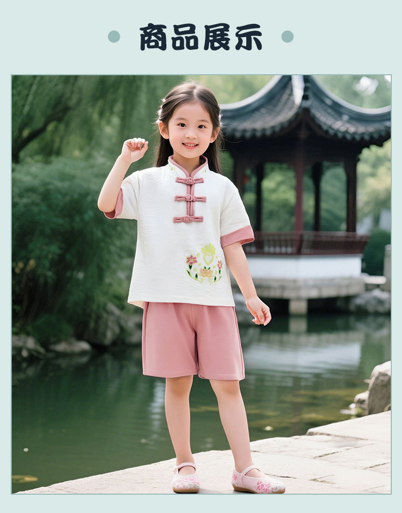 한푸 어린이 여성 여름 공연 의류 유치원 공연 의류 소년 반팔 중국 스타일 고대 의류 복고풍 어린이 의류스토어 가기