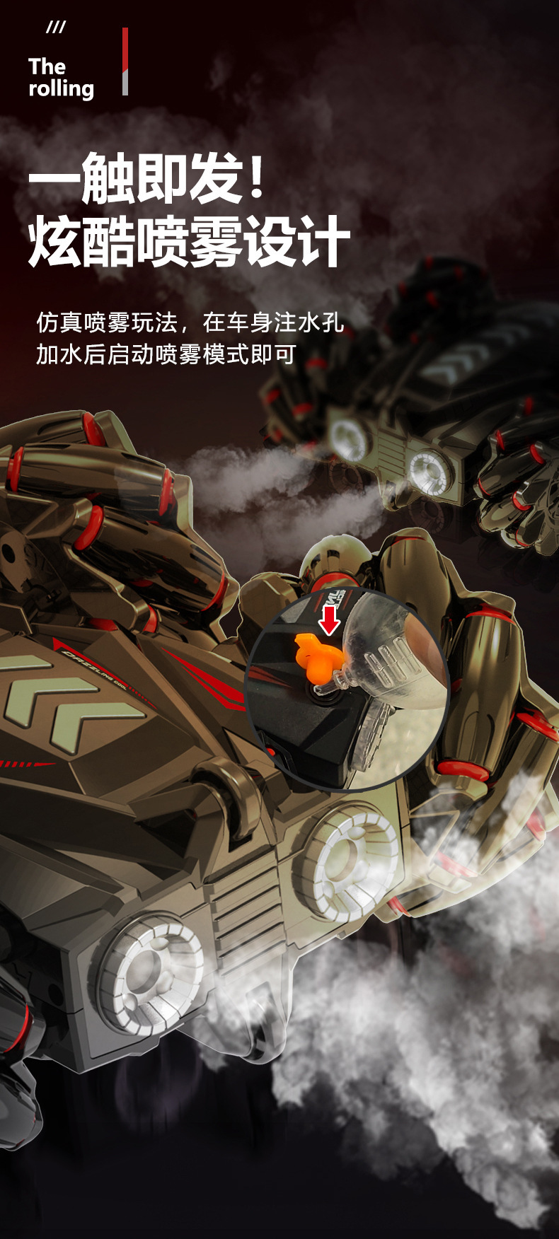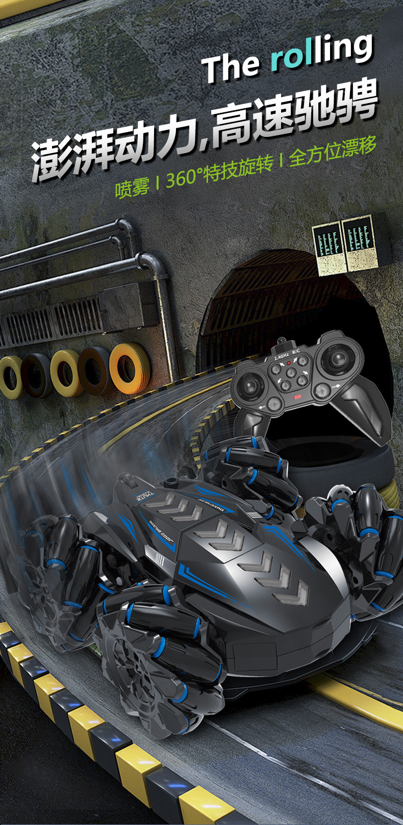 2.4G 양면 원격 제어 자동차 긴 내구성 스턴트 롤링 자동차 충전 빛나는 스프레이 자동차 어린이 장난감 자동차 도매