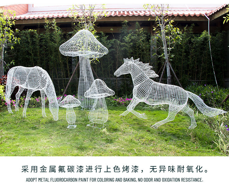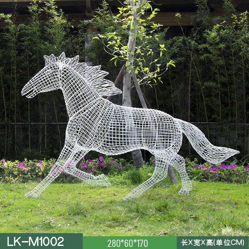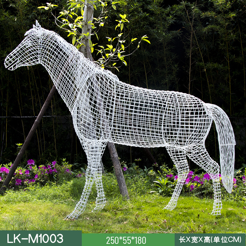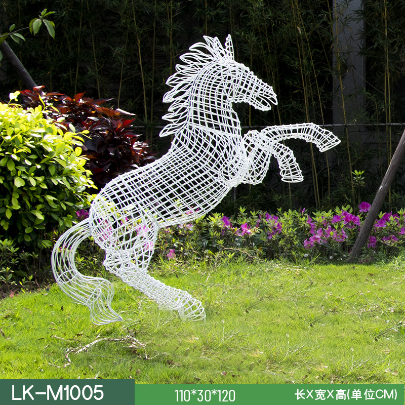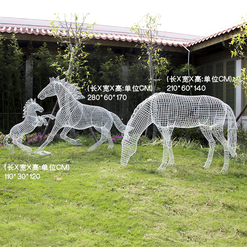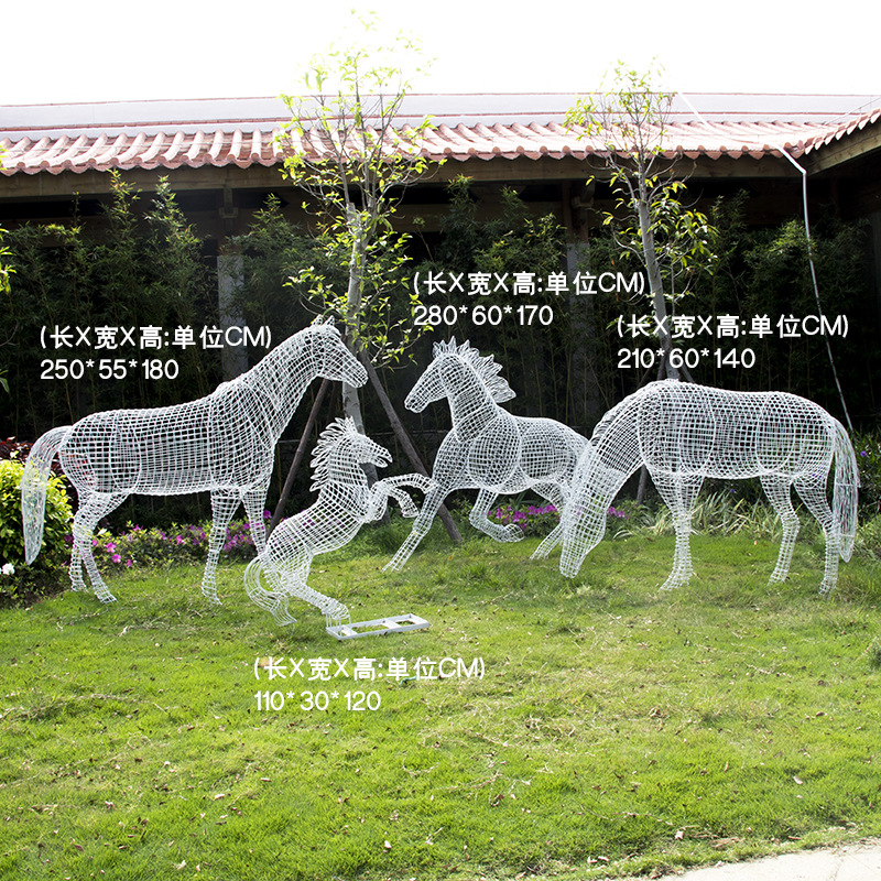 제조업체 스테인레스 스틸 시뮬레이션 중공 말 조각 철 그리드 정원 풍경 잔디 장식 광장 부동산 장식품스토어 가기