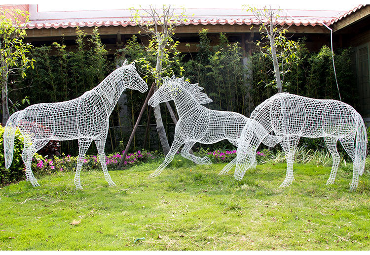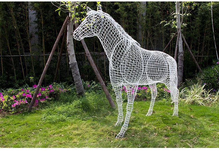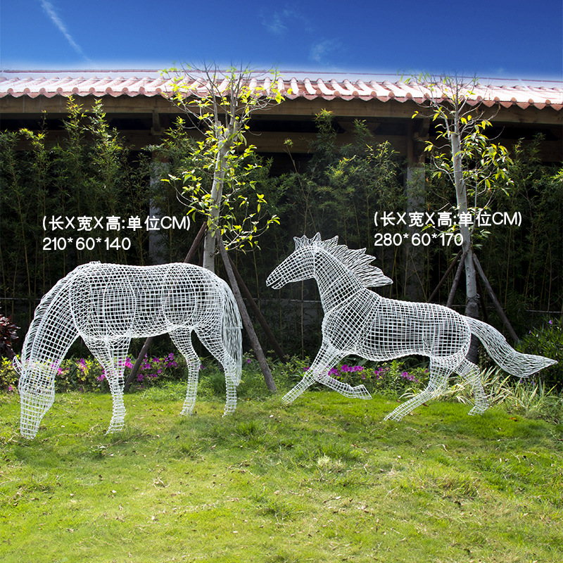 제조업체 스테인레스 스틸 시뮬레이션 중공 말 조각 철 그리드 정원 풍경 잔디 장식 광장 부동산 장식품
