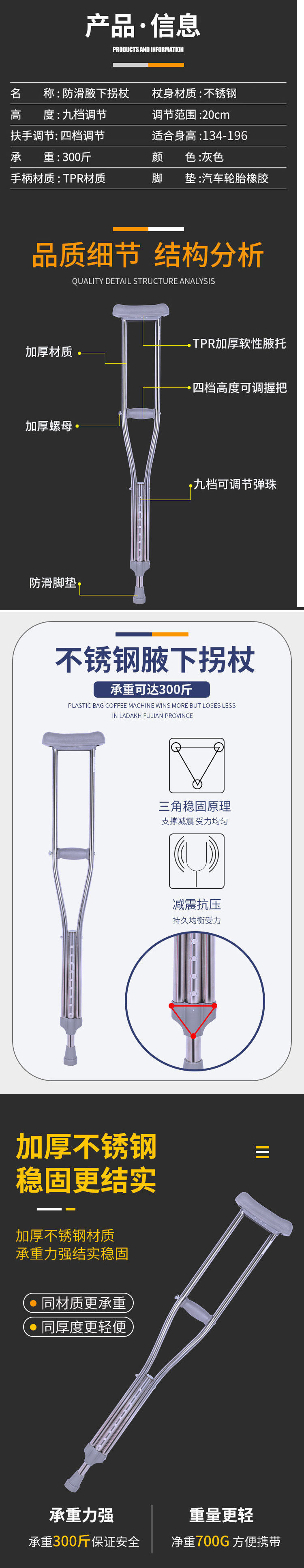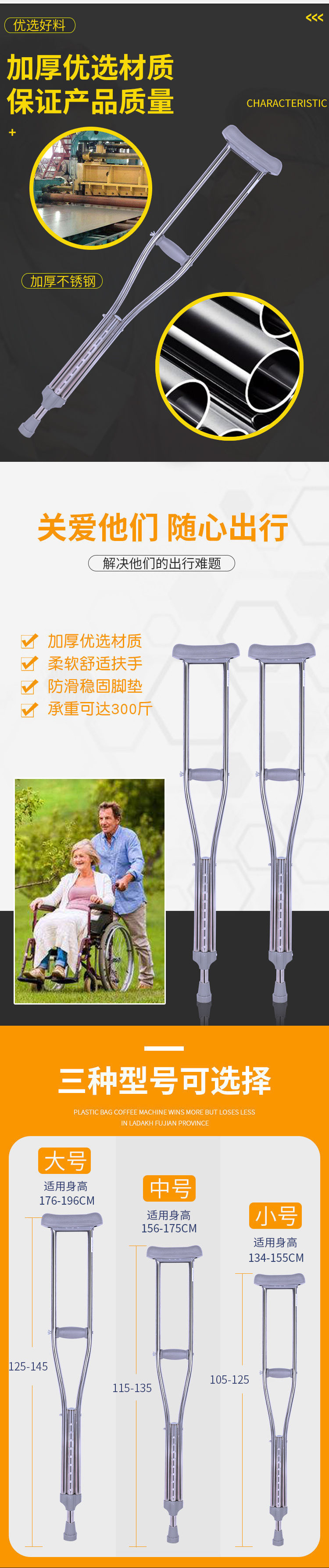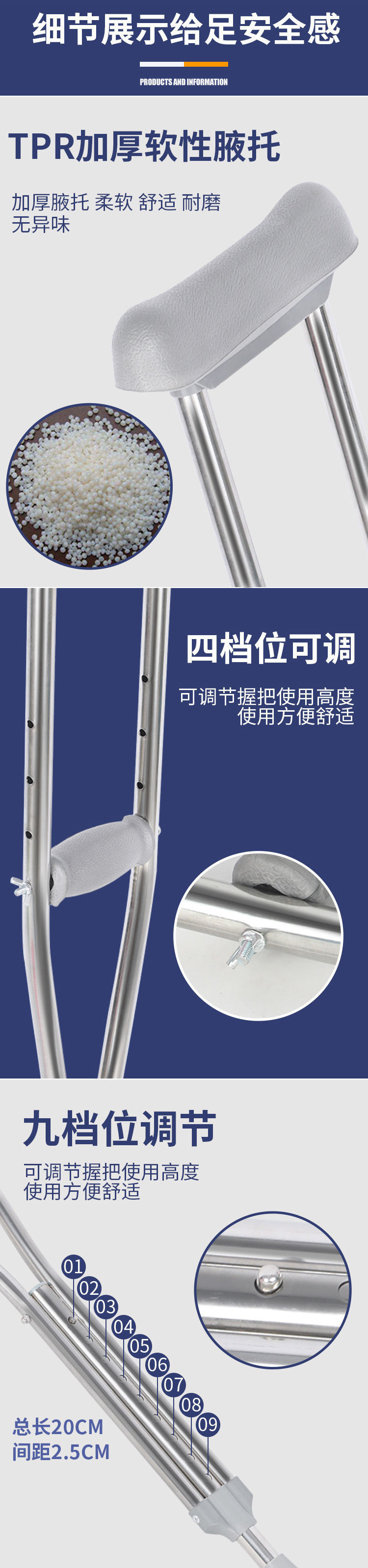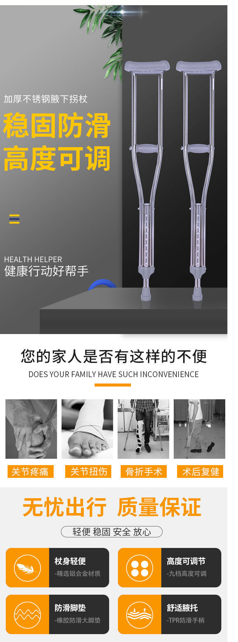 의료용 지팡이, 스테인레스 스틸 지팡이, 겨드랑이 이중 지팡이, 골절 장애인 노인 지팡이, 조절 가능한 텔레스코픽 두꺼운 지팡이