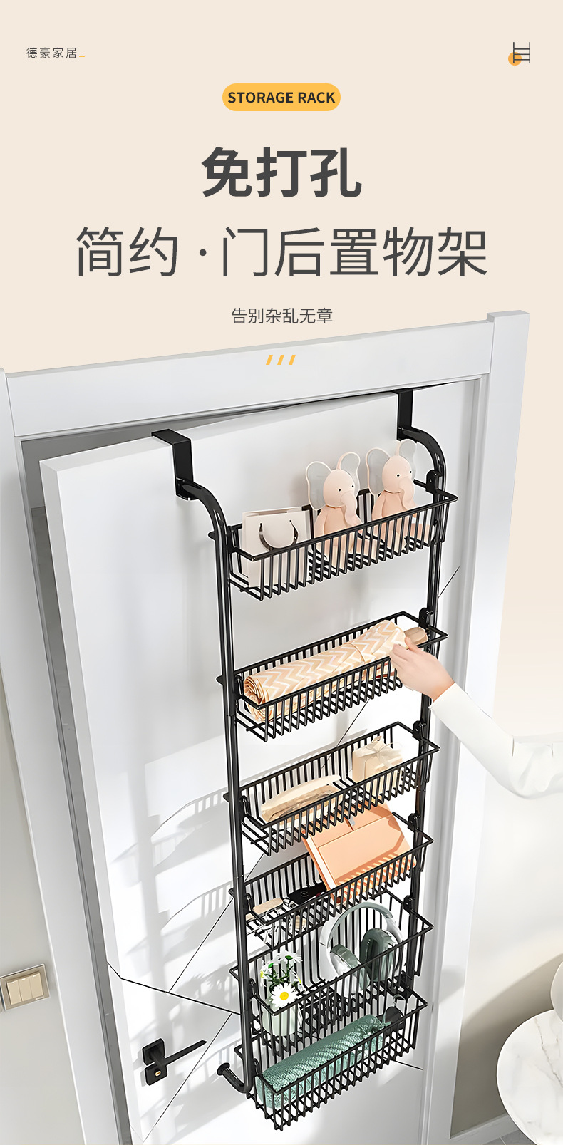 제조업체 맞춤형 욕실 다층 도어 후면 선반 철제 침실 잔해물 보관 바구니 주방 도어 보관 바구니스토어 가기
