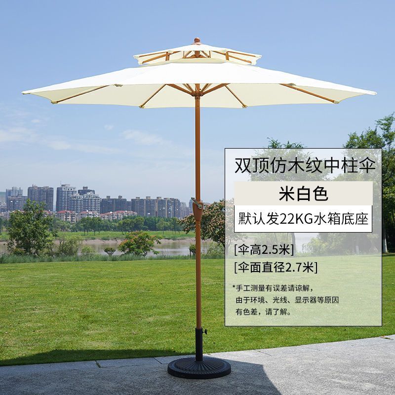 • 브라운 더블 탑 센터 컬럼 우산 + 22kg 물 충전 베이스