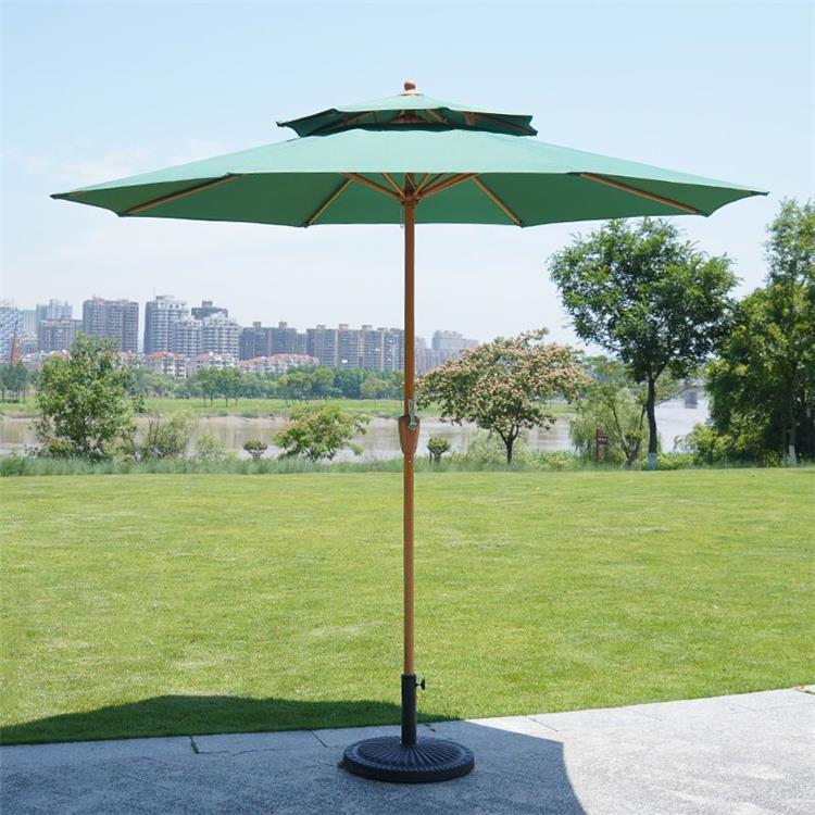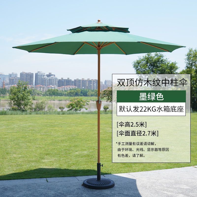 • 짙은 녹색 이중 상단 중앙 기둥 우산(단일 우산에는 베이스가 포함되지 않음)