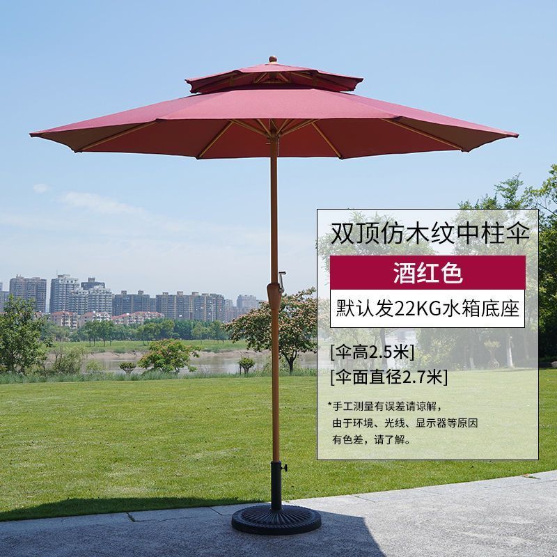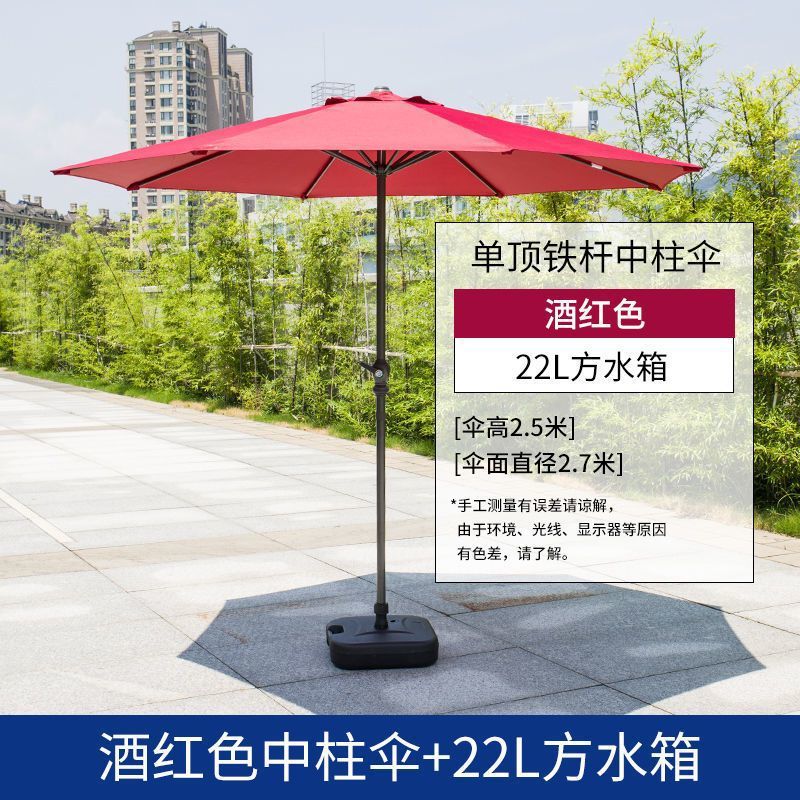• 버건디 이중 상단 중앙 기둥 우산 + 22kg개의 물이 채워진 베이스