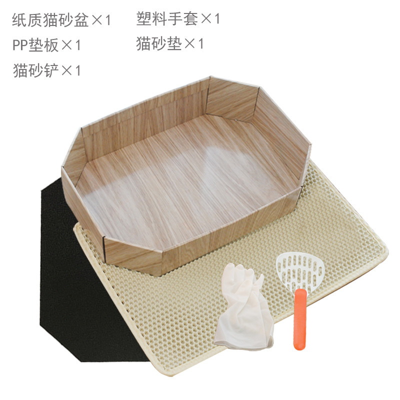 • 종이 고양이 배변 상자 + PP 패드 + 고양이 배변 매트 + 고양이 배변 삽 + 장갑