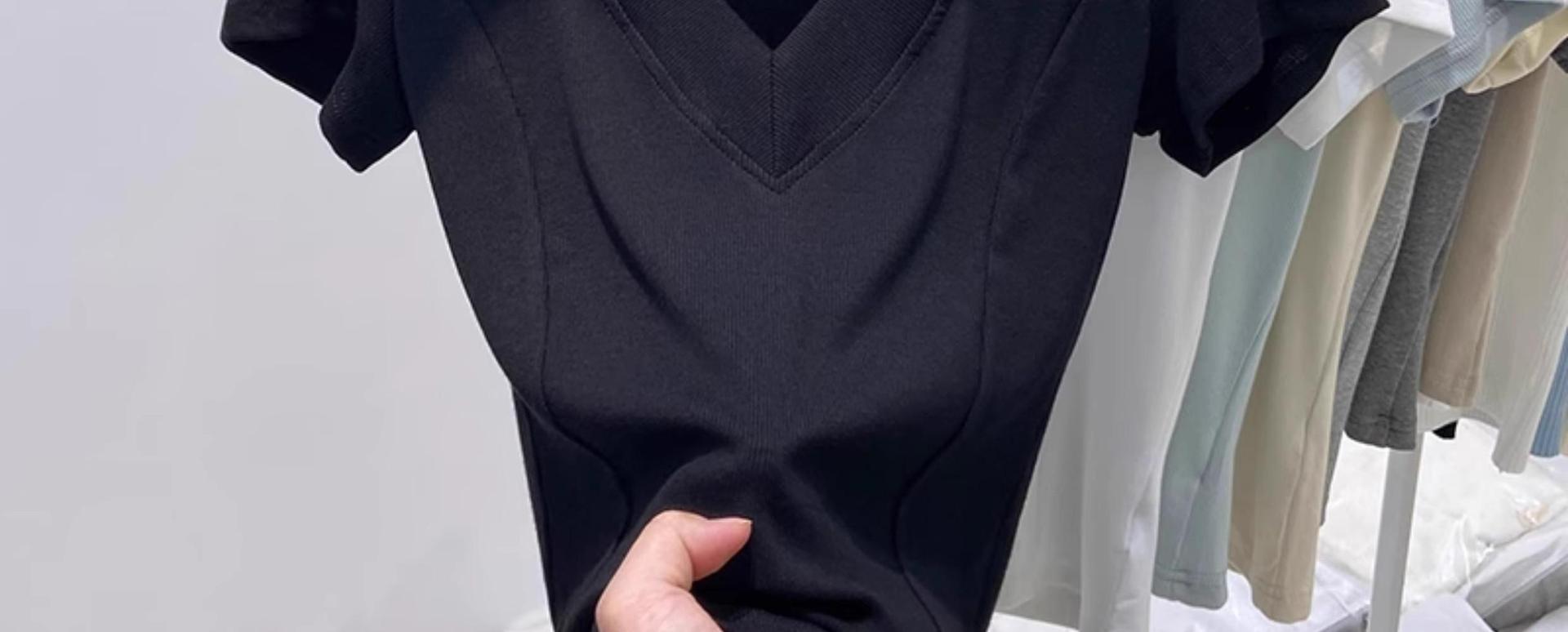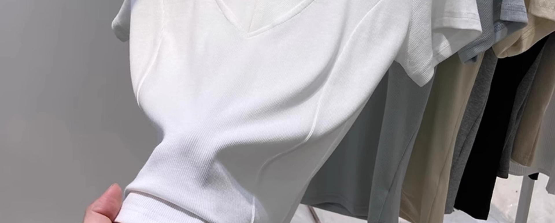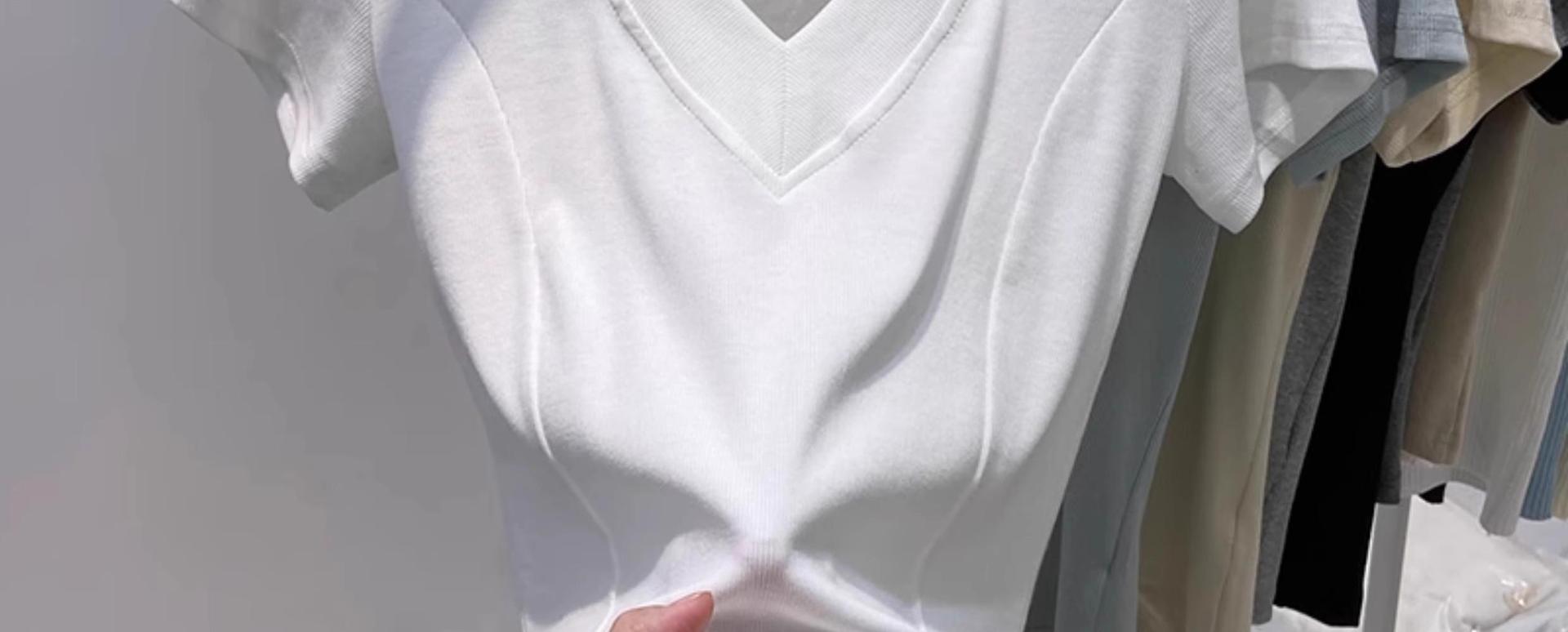 여름 여성을 위한 새로운 V넥 실 반팔 티셔츠, 슬림핏, 쇼트 스타일, 슬리밍 피쉬본 웨이스트 탑, 틈새 바닥, 슬리밍 웨이스트스토어 가기