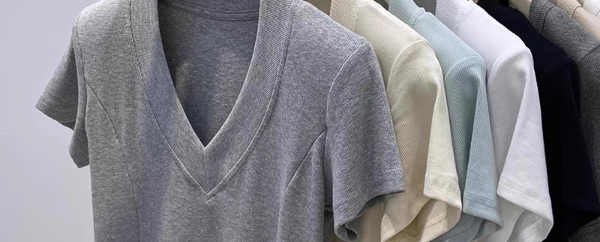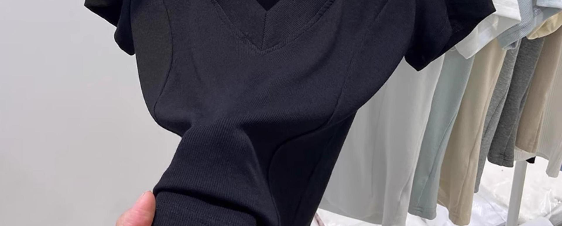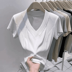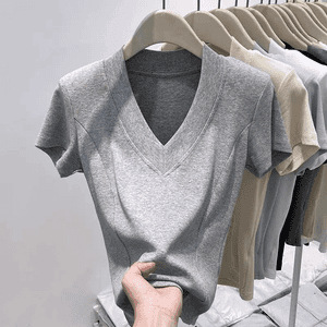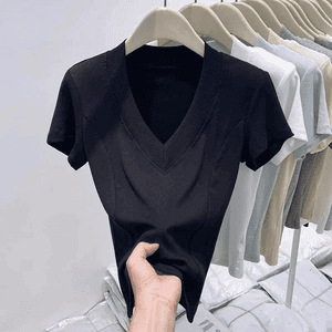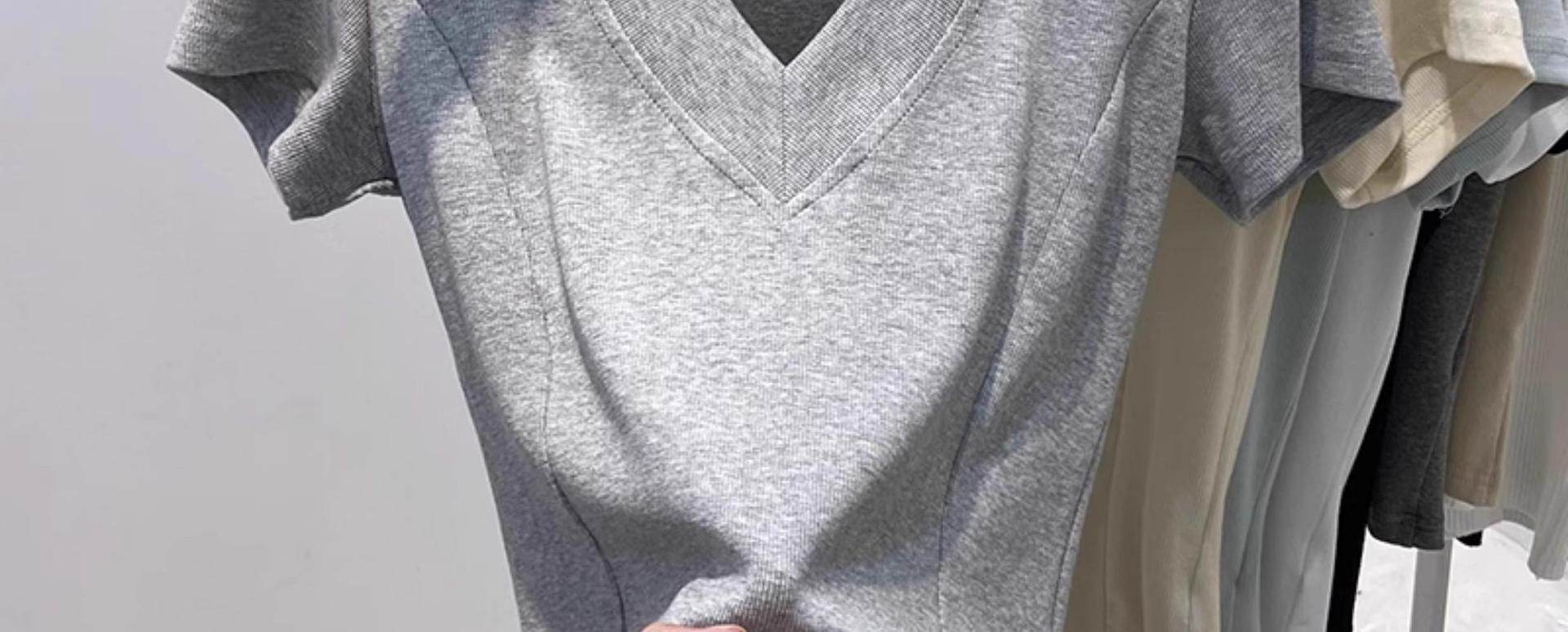 여름 여성을 위한 새로운 V넥 실 반팔 티셔츠, 슬림핏, 쇼트 스타일, 슬리밍 피쉬본 웨이스트 탑, 틈새 바닥, 슬리밍 웨이스트스토어 가기
