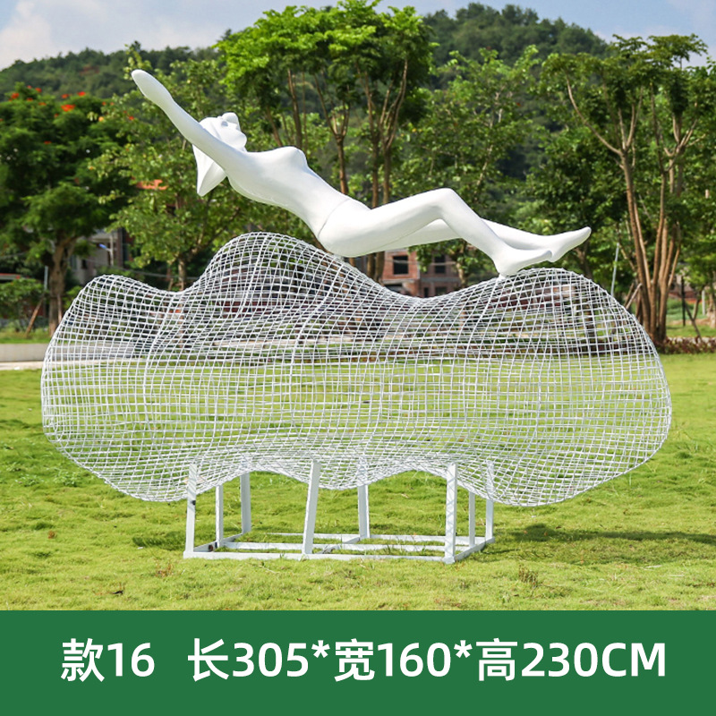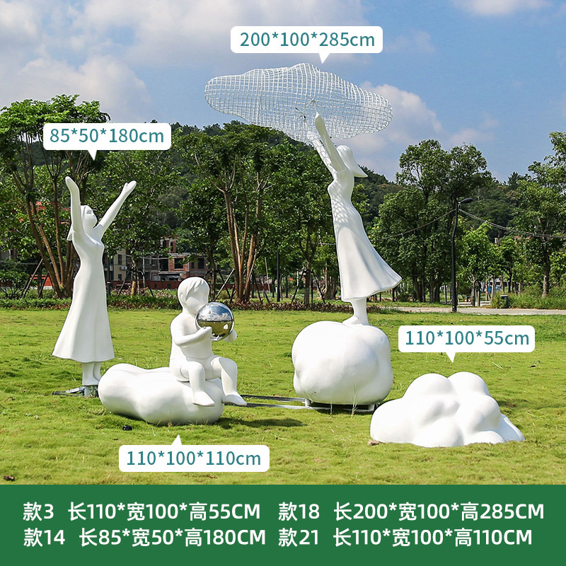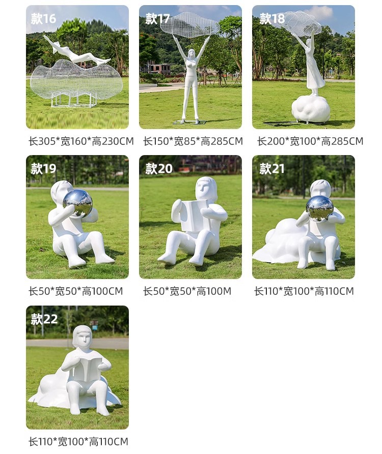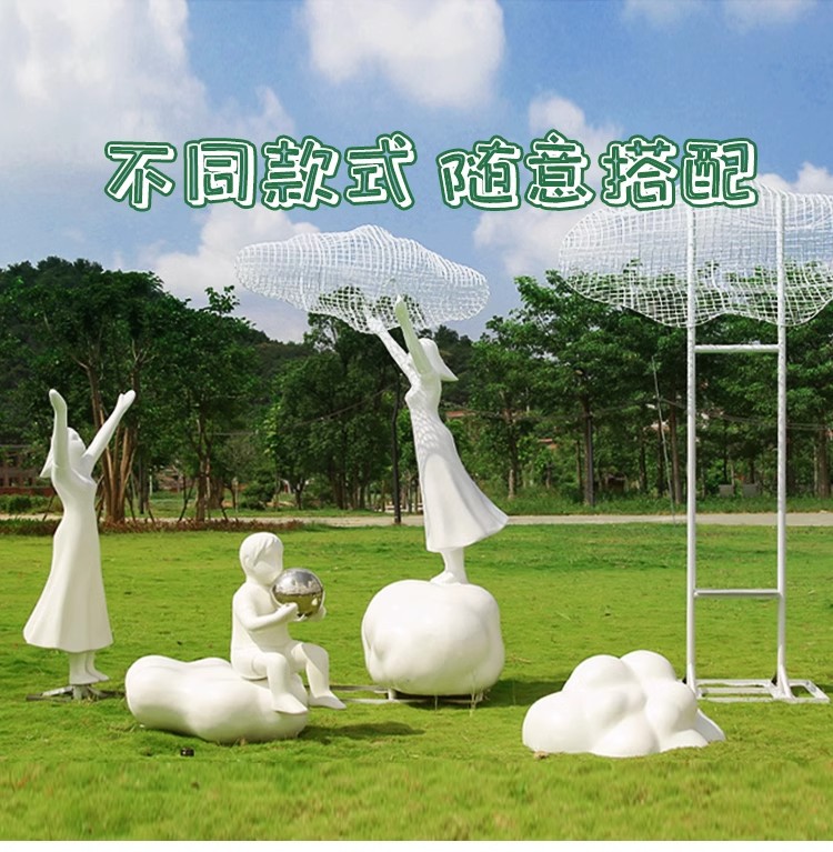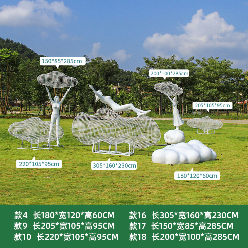 스테인레스 스틸 중공 구름 장식품 유리 섬유 조각 캐릭터 풍경 야외 공원 커뮤니티 잔디 장식스토어 가기