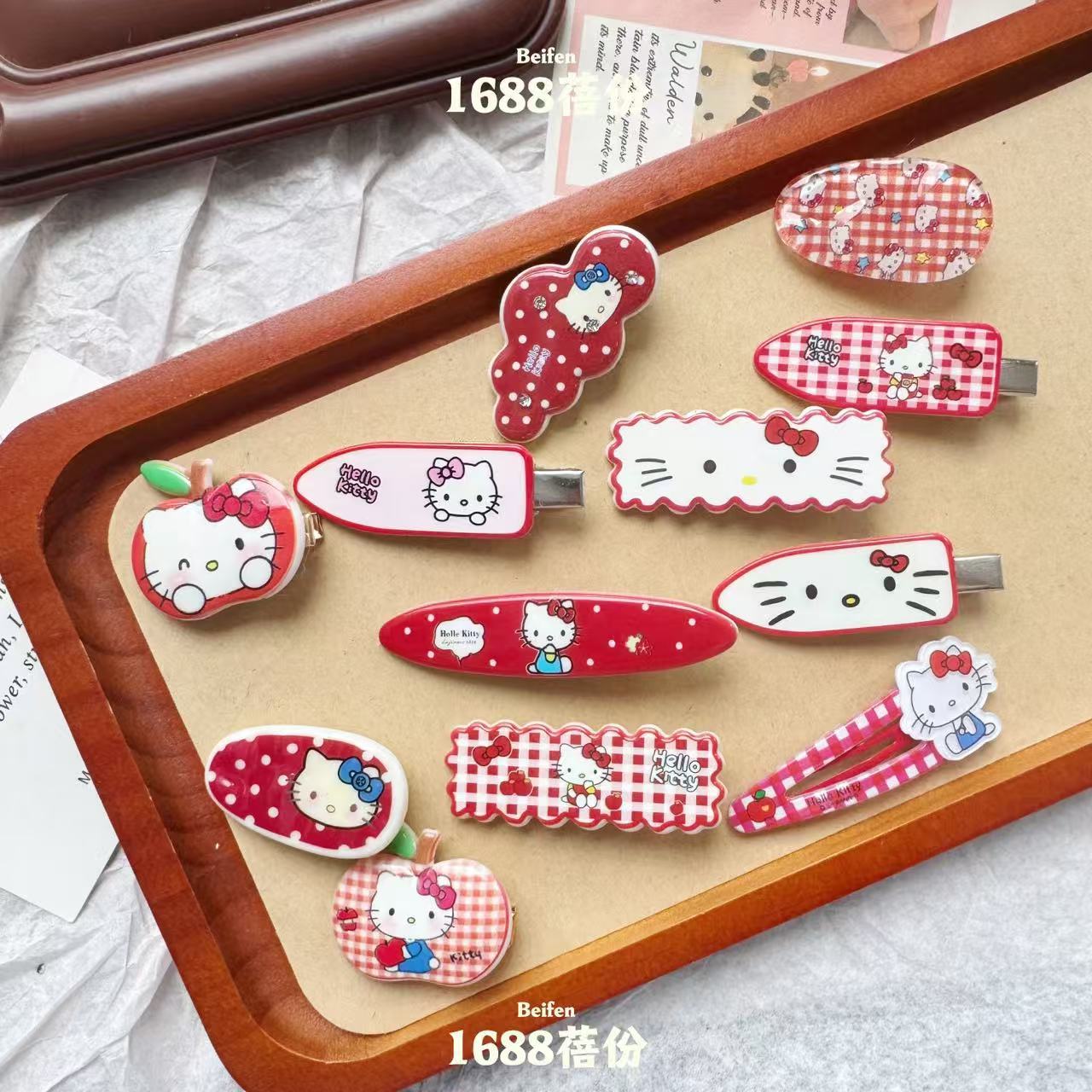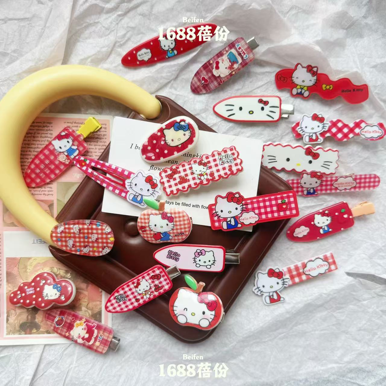 빨간 KT 고양이 헤어핀 달콤한 소녀 하트 뱅 사이드 클립 패션 귀여운 깨진 머리 덕빌 클립 만화 헤어 액세서리스토어 가기