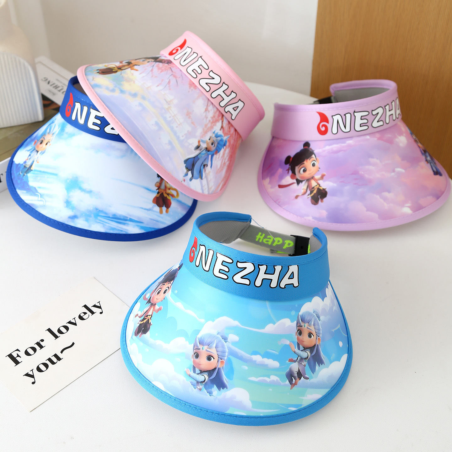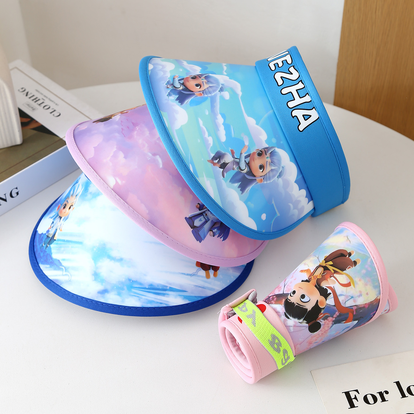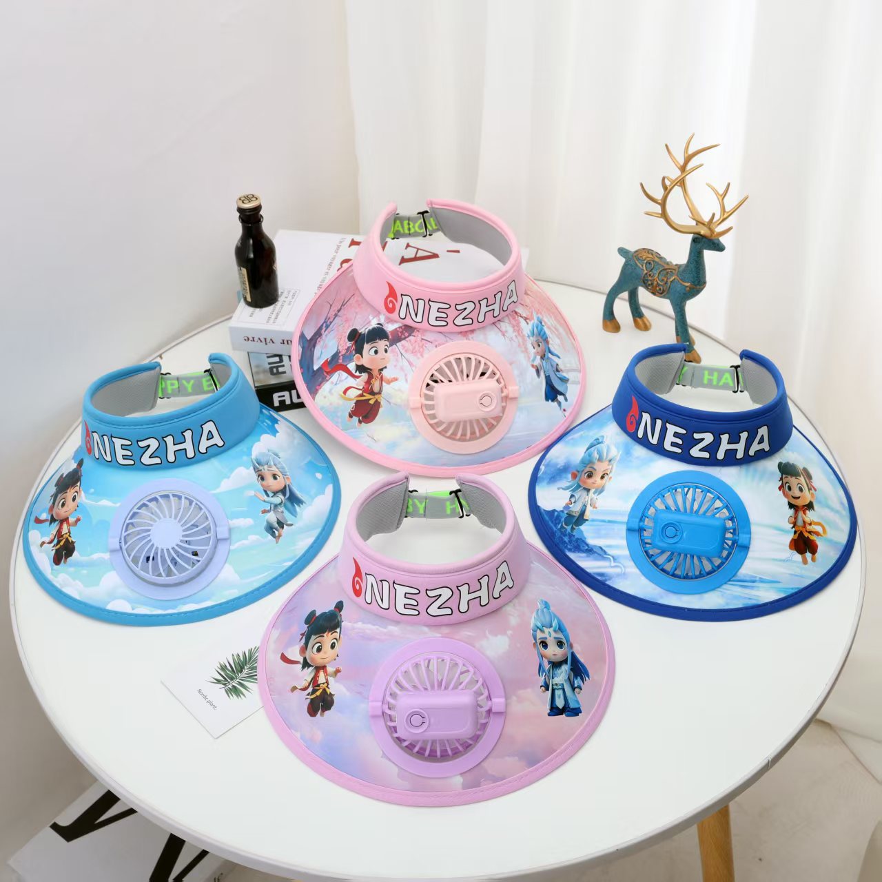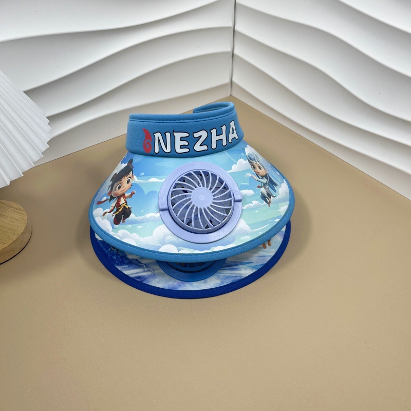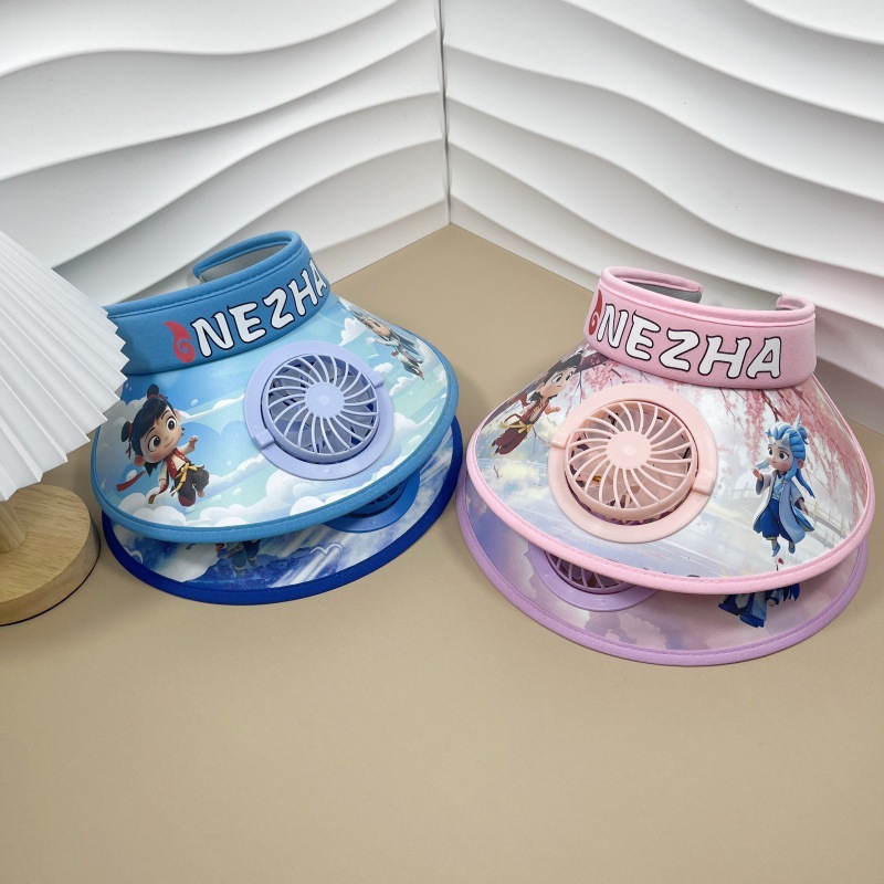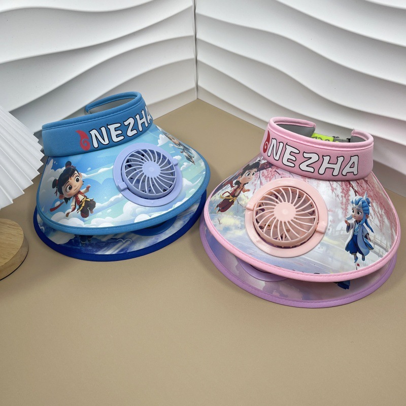 인기있는 어린이 태양 보호 모자, 선풍기 모자, Nezha 애니메이션 여름 해변 모자, 소년 소녀용 태양 모자
