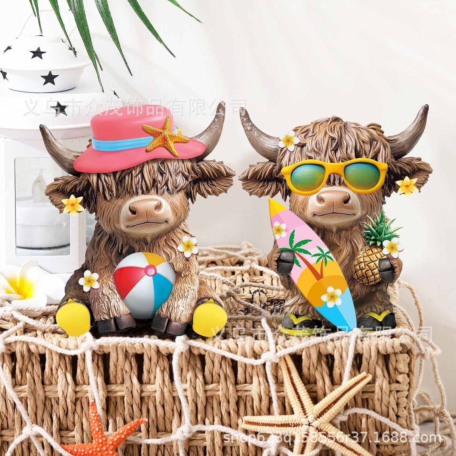 고원 암소 동상 봄 해바라기 고원 암소 드워프 스코틀랜드 수지 동상 송아지 연인스토어 가기