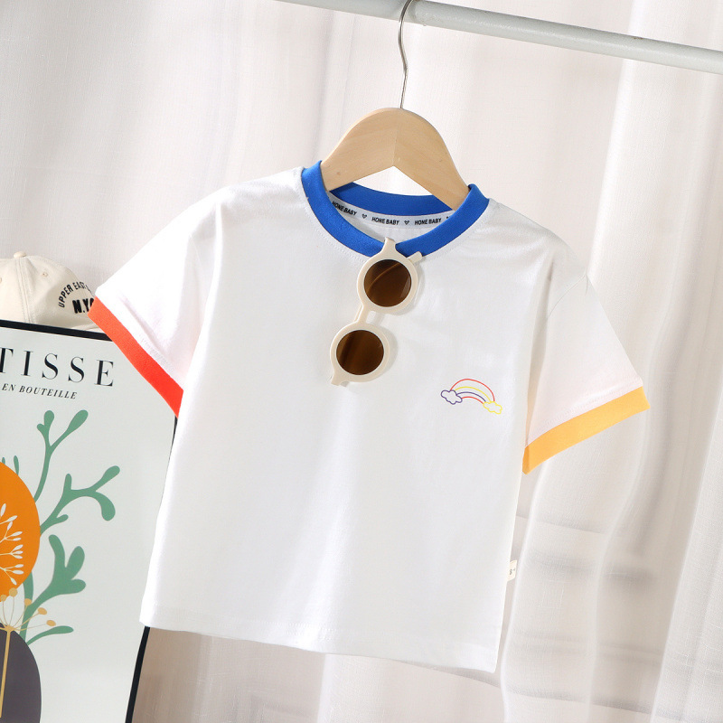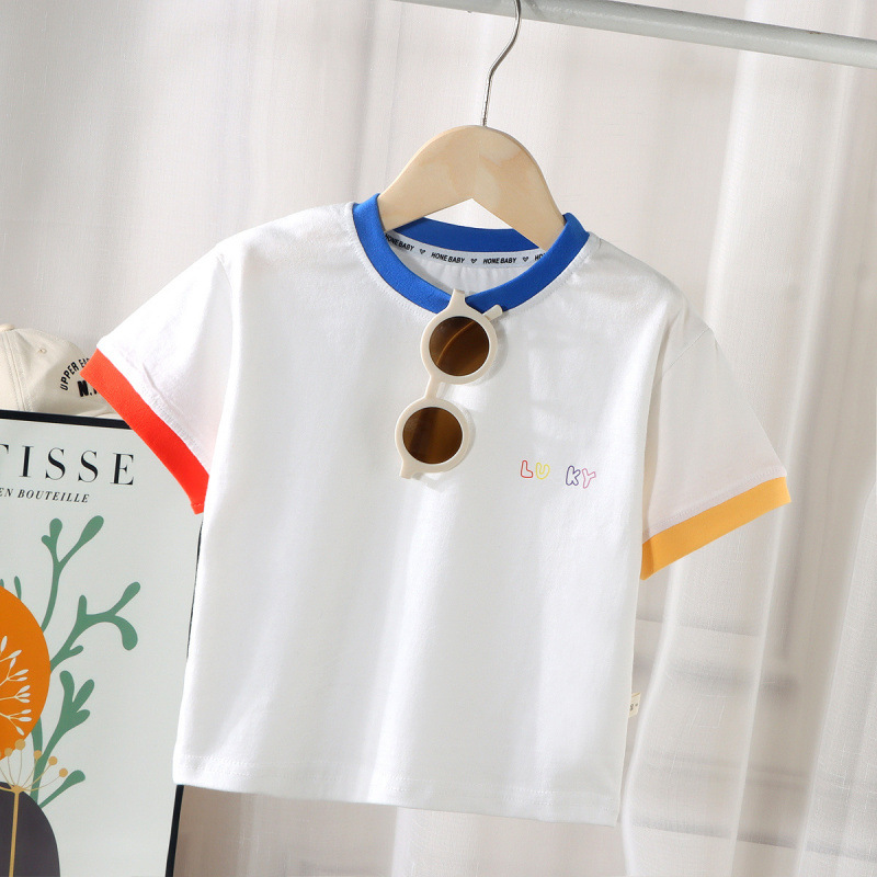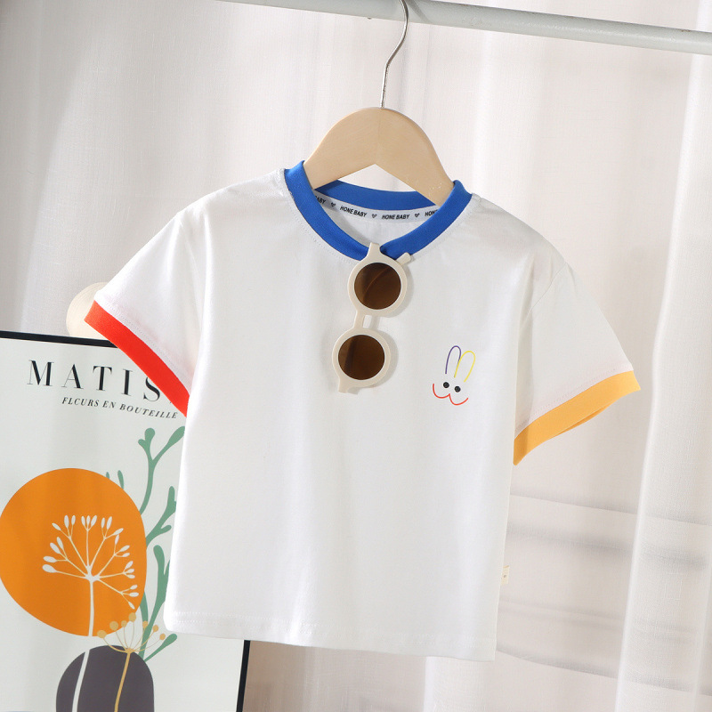 여름 어린이 면화 반팔 티셔츠 큰 어린이 소년 바지 셔츠 걸스 티셔츠 편안하고 통기성 내외복스토어 가기