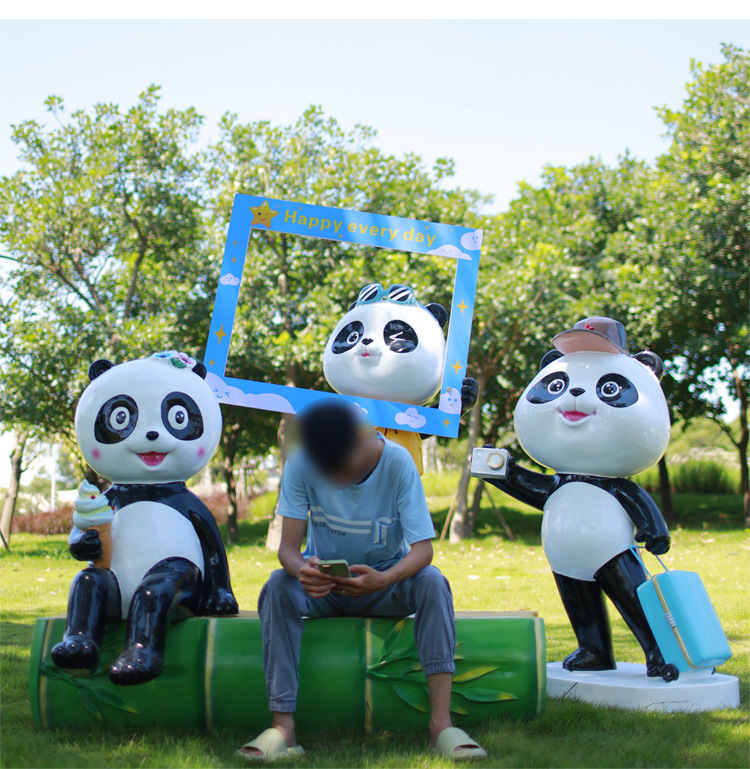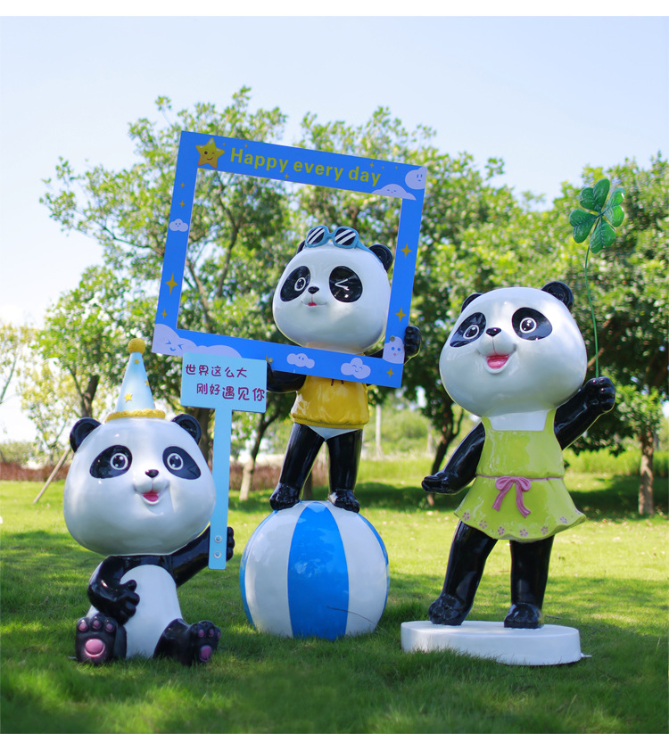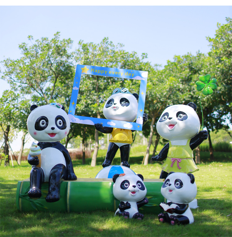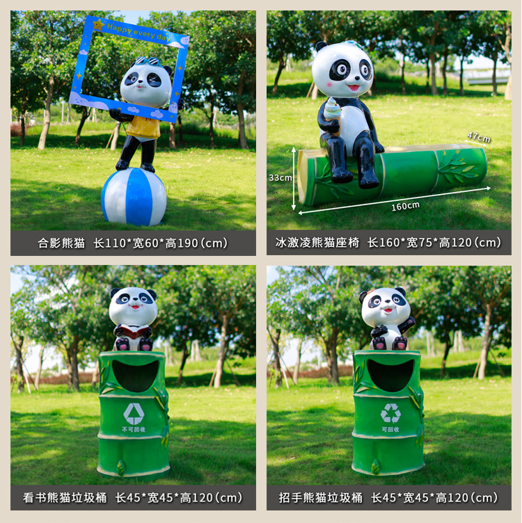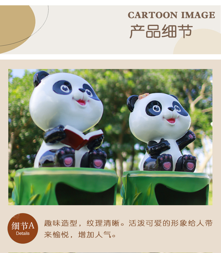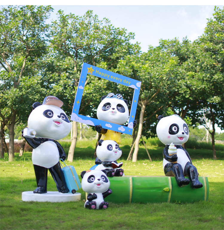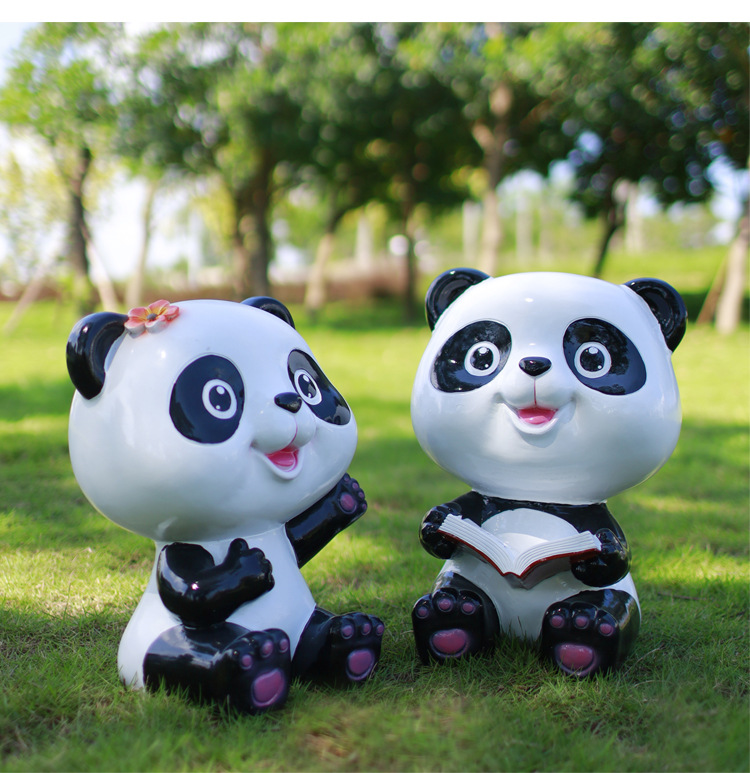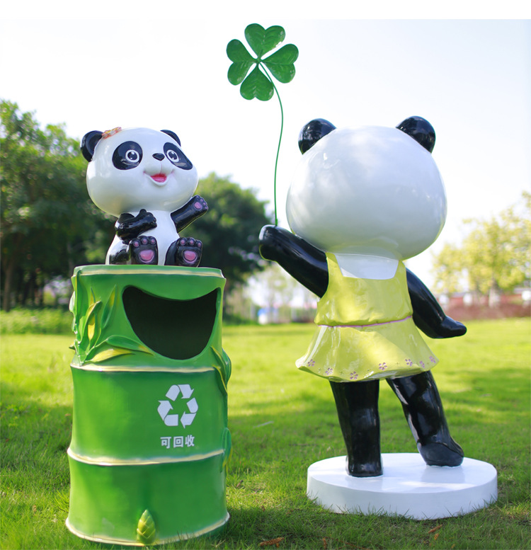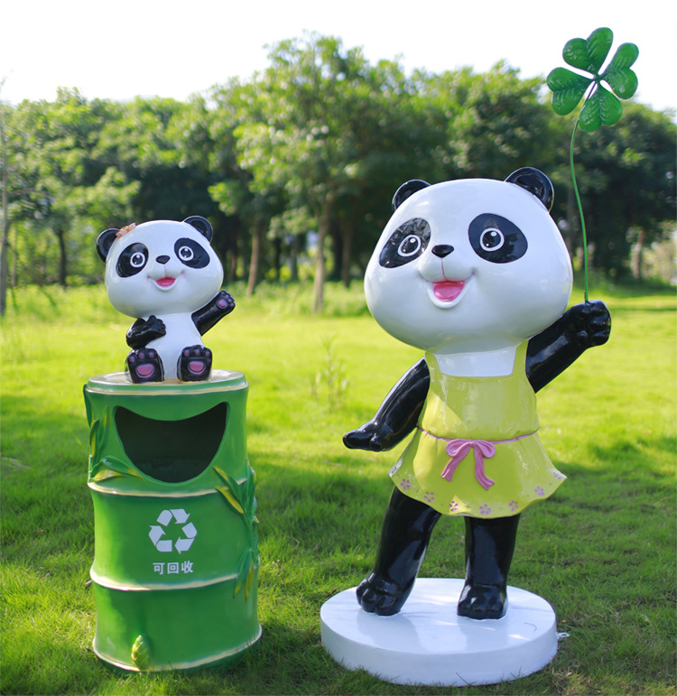 야외 인터넷 연예인 만화 팬더 조각 유리 섬유 사각형 쓰레기통 좌석 정원 조경 장식품스토어 가기