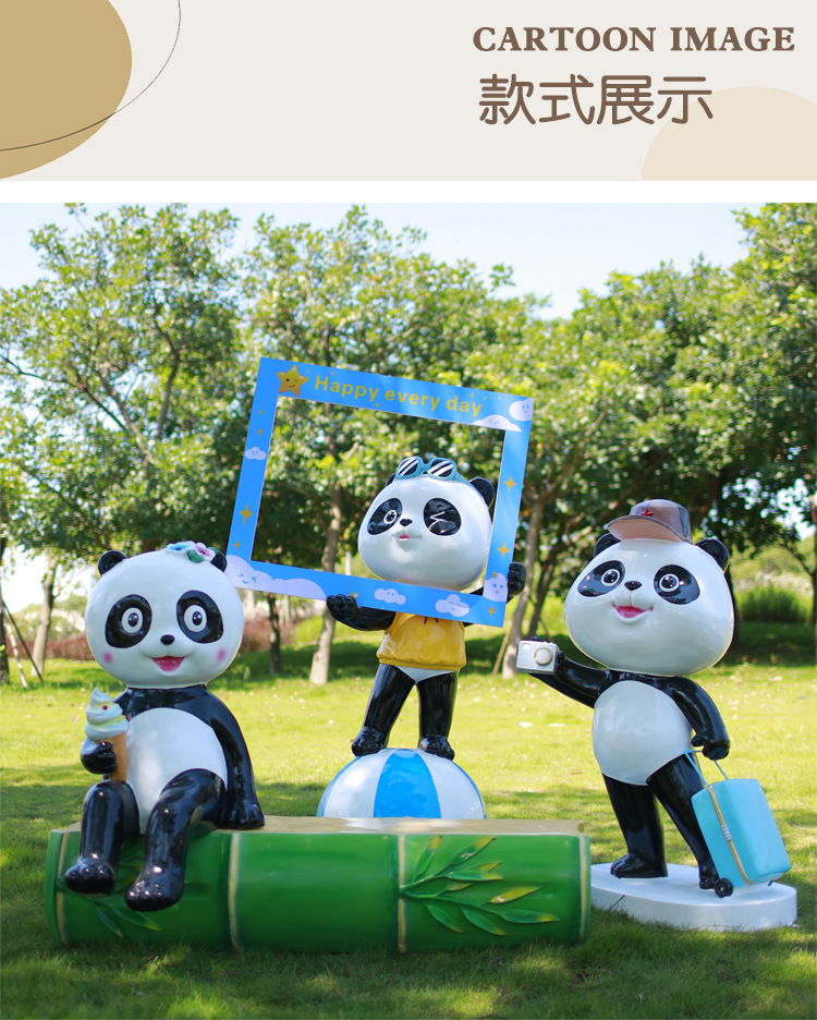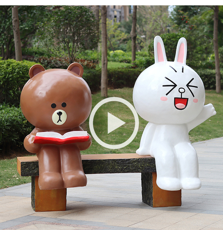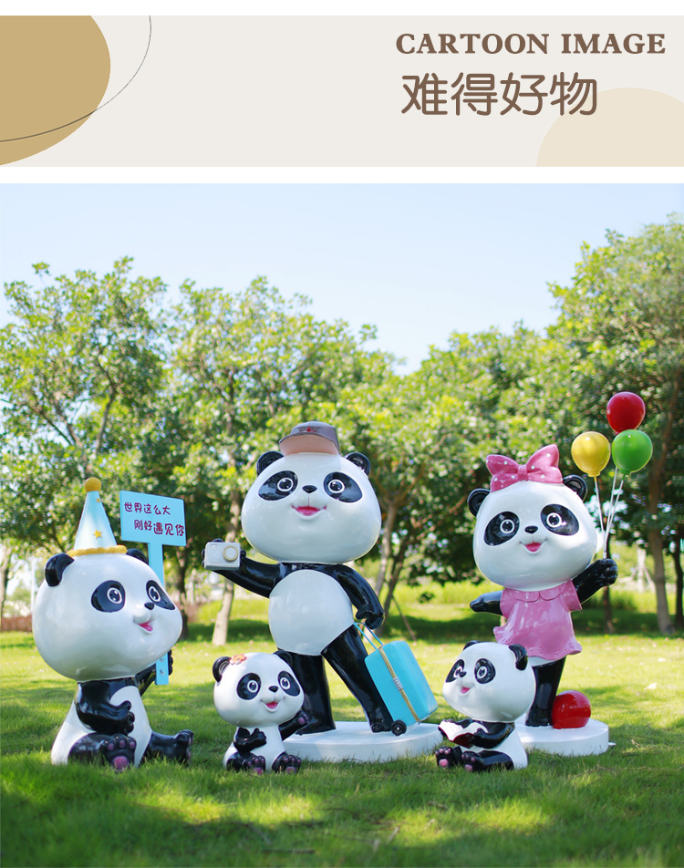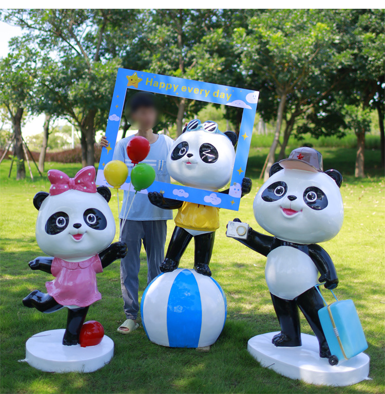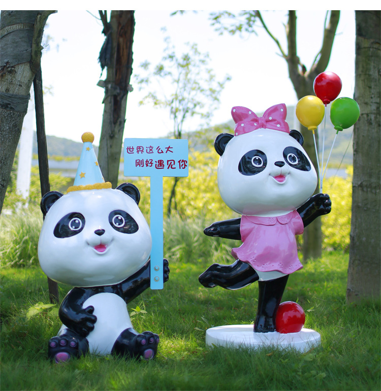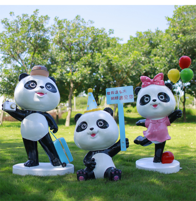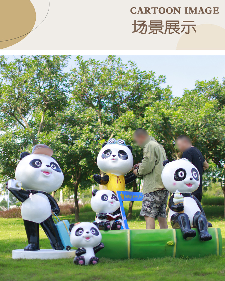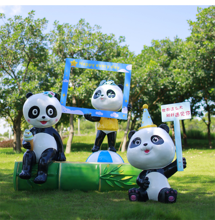 야외 인터넷 연예인 만화 팬더 조각 유리 섬유 사각형 쓰레기통 좌석 정원 조경 장식품스토어 가기