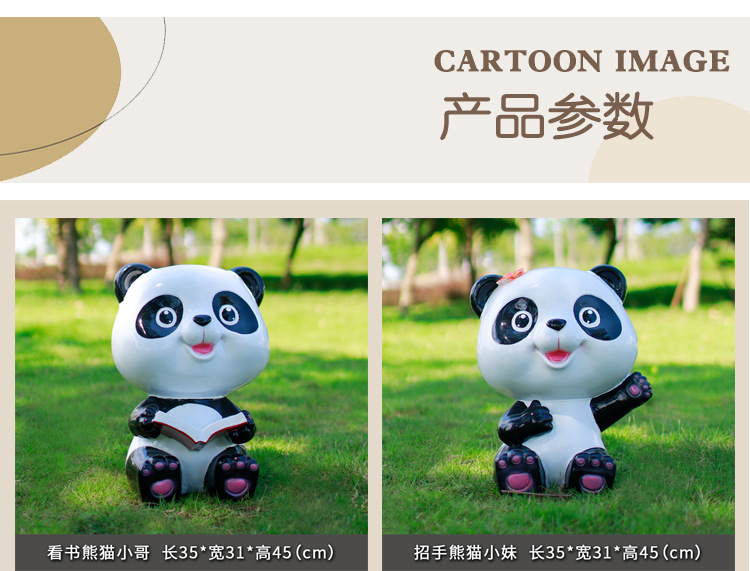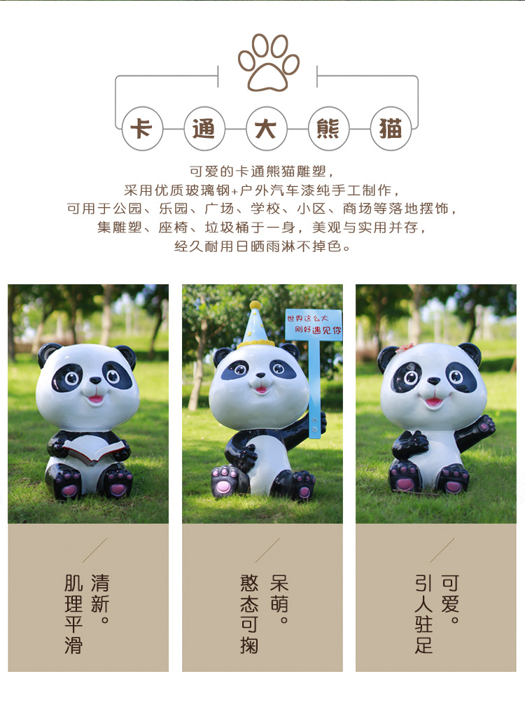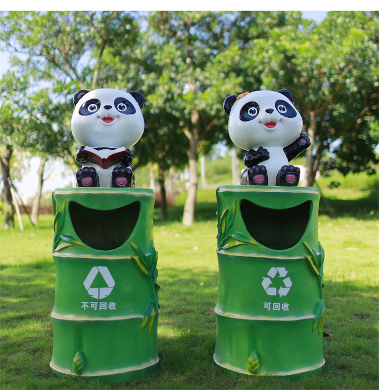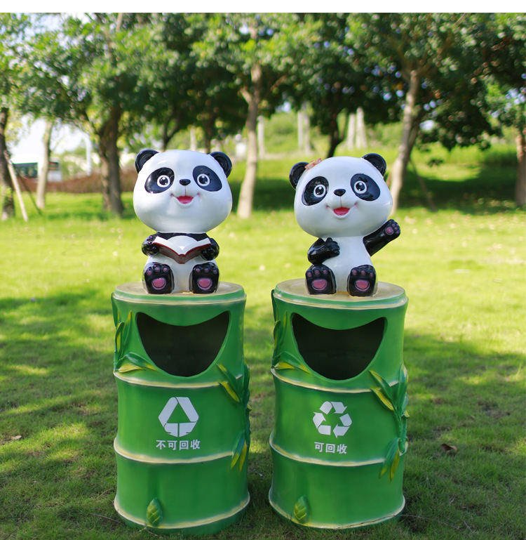 야외 인터넷 연예인 만화 팬더 조각 유리 섬유 사각형 쓰레기통 좌석 정원 조경 장식품