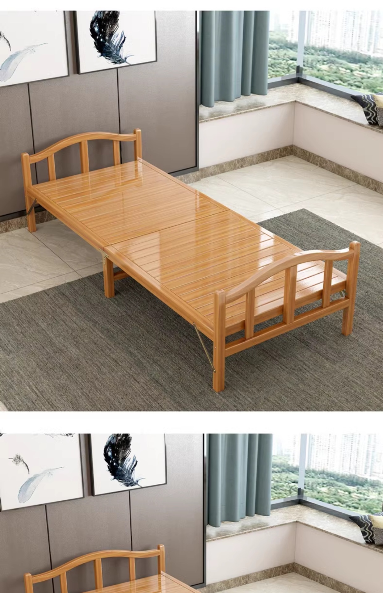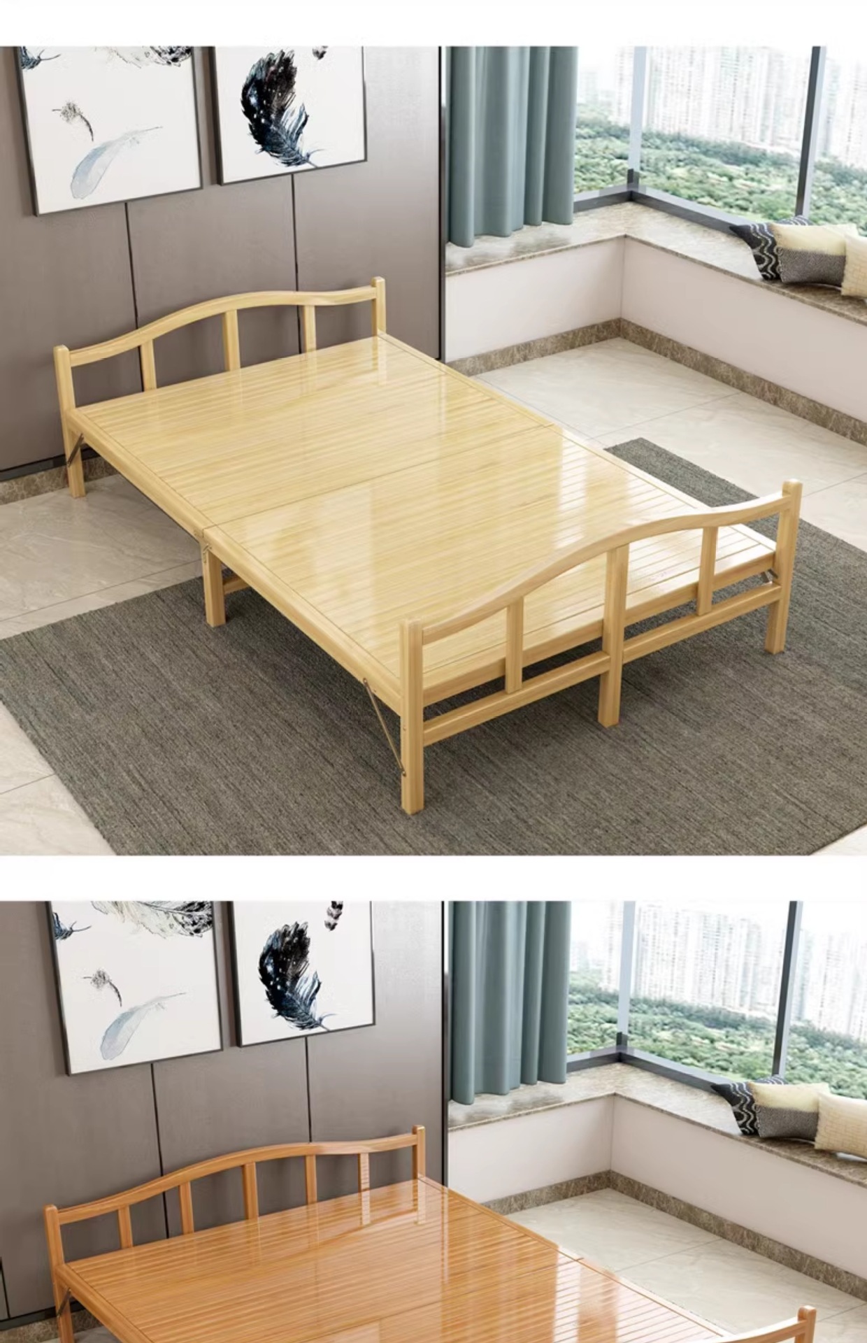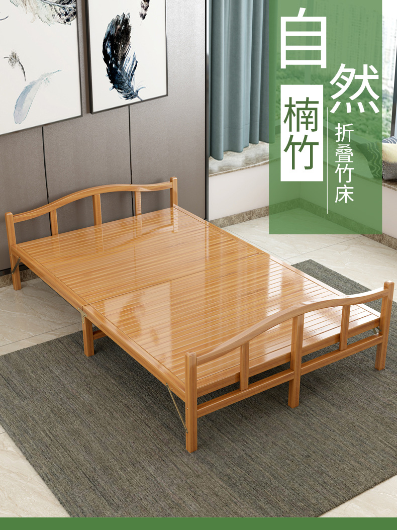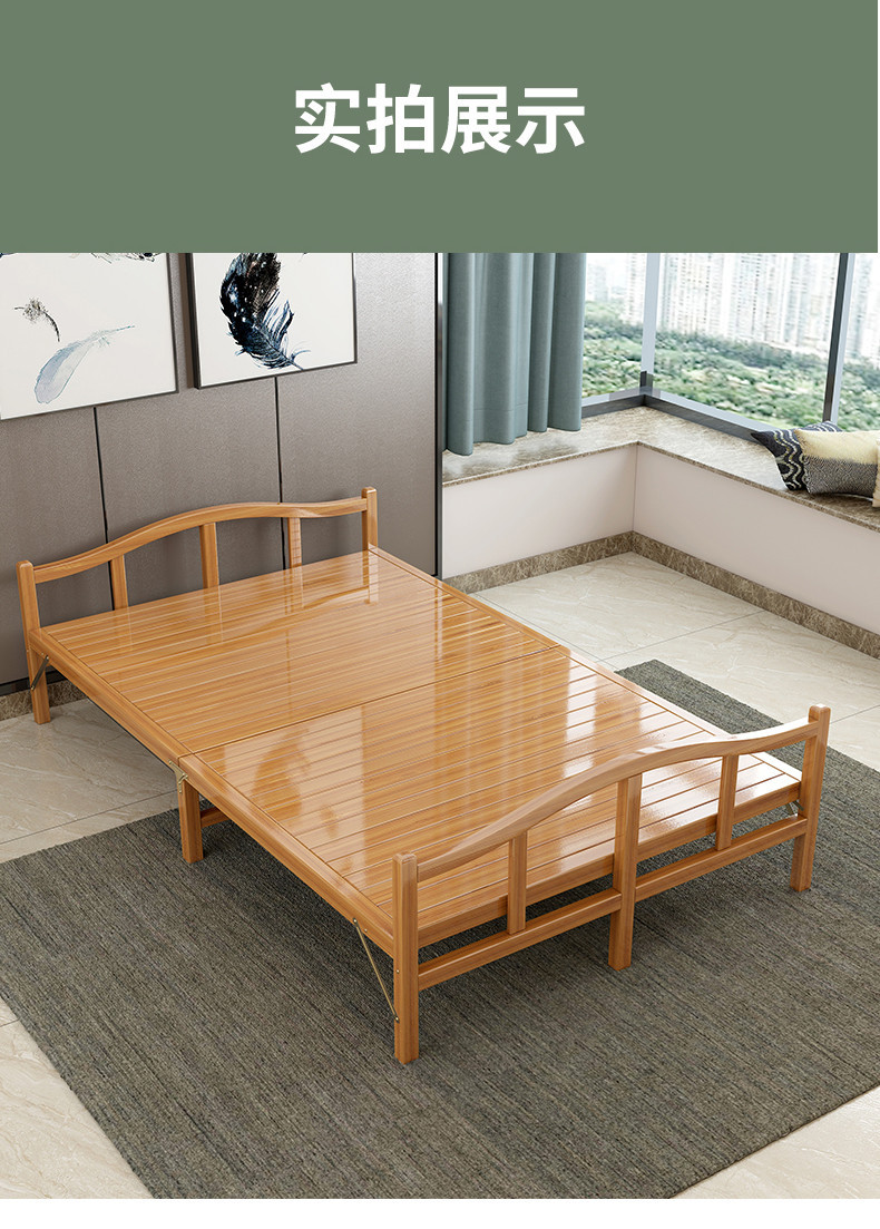 접이식 침대 싱글 더블 성인 간이 가정용 대나무 침대 하드 보드 점심 시간 낮잠 임대실 1.5m 원목 소형 L^스토어 가기