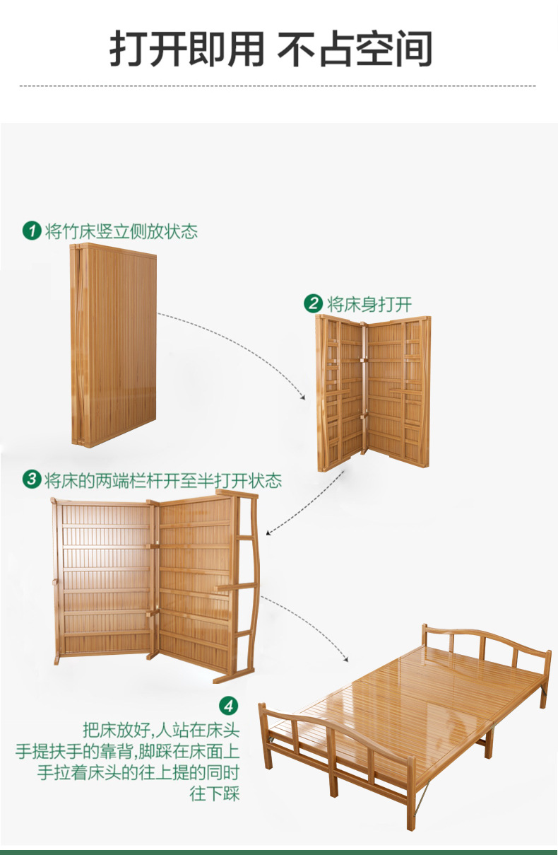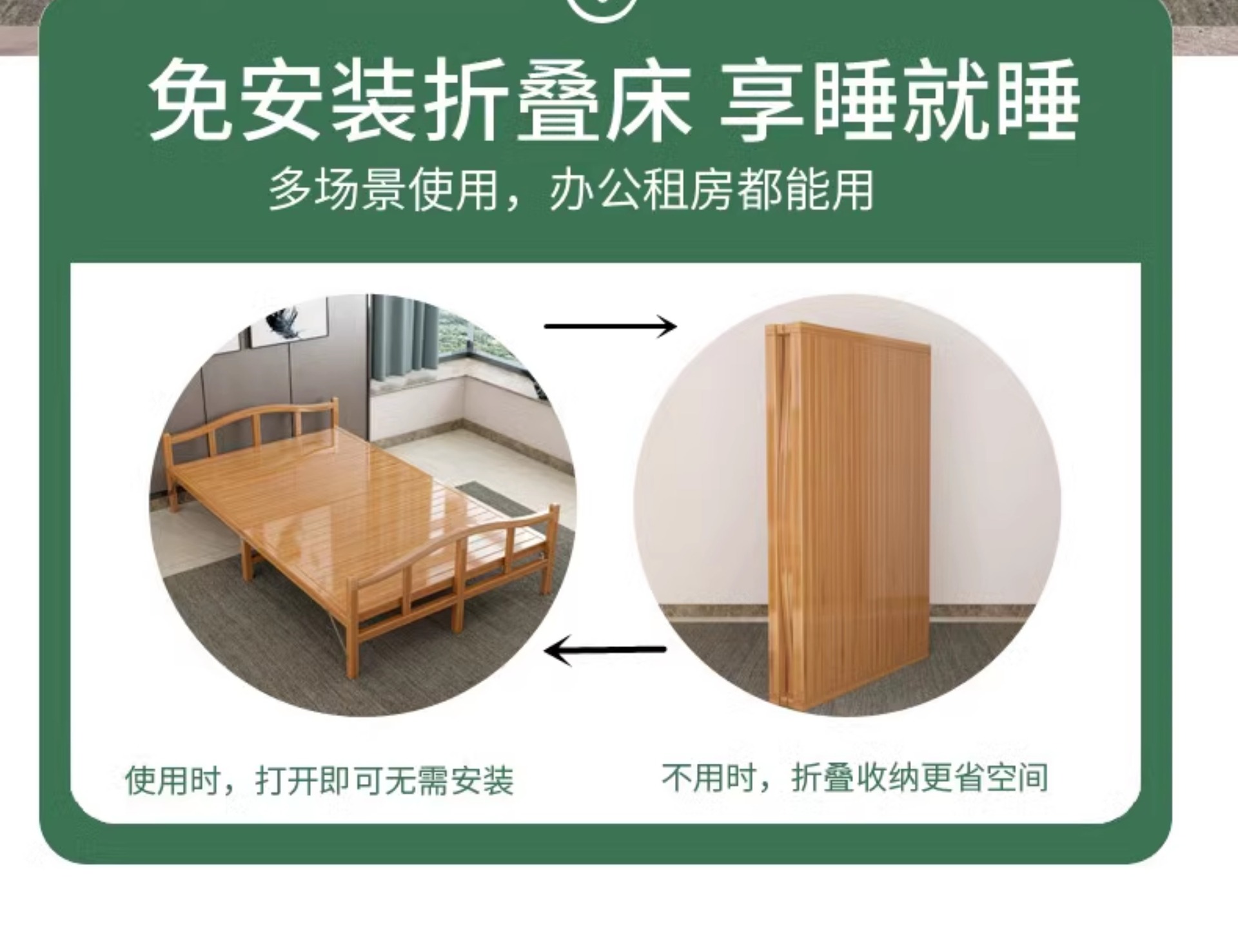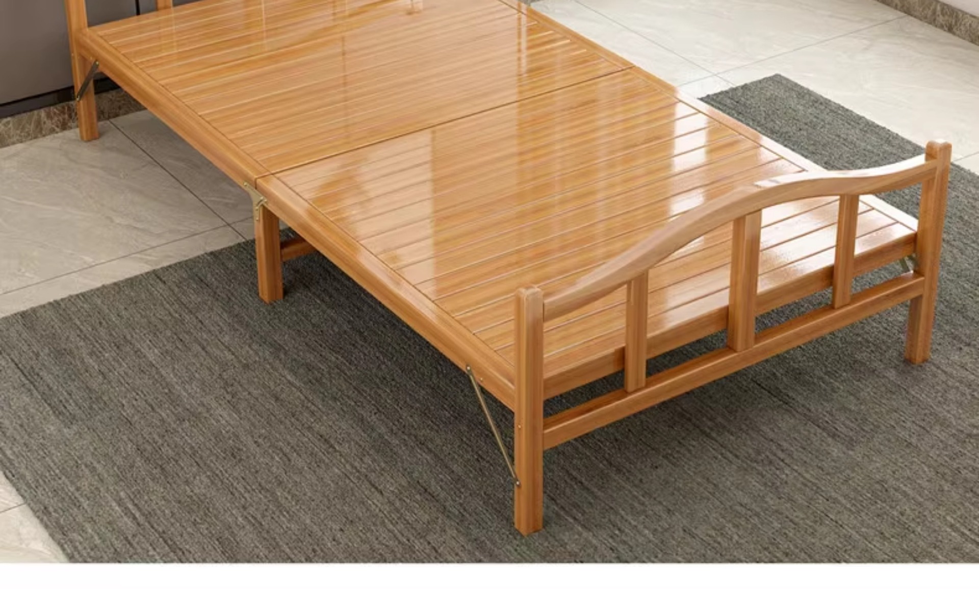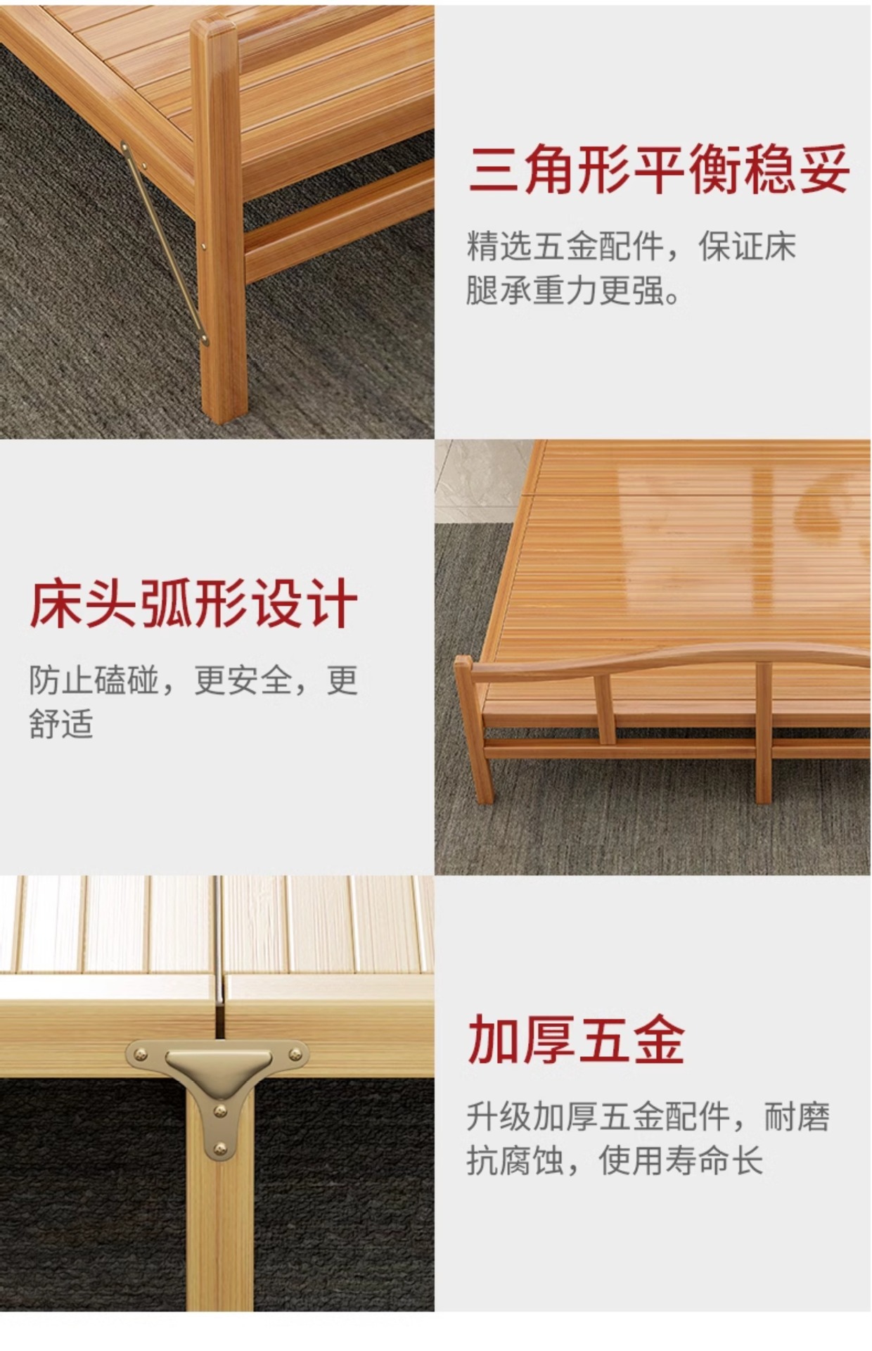 접이식 침대 싱글 더블 성인 간이 가정용 대나무 침대 하드 보드 점심 시간 낮잠 임대실 1.5m 원목 소형 L^스토어 가기