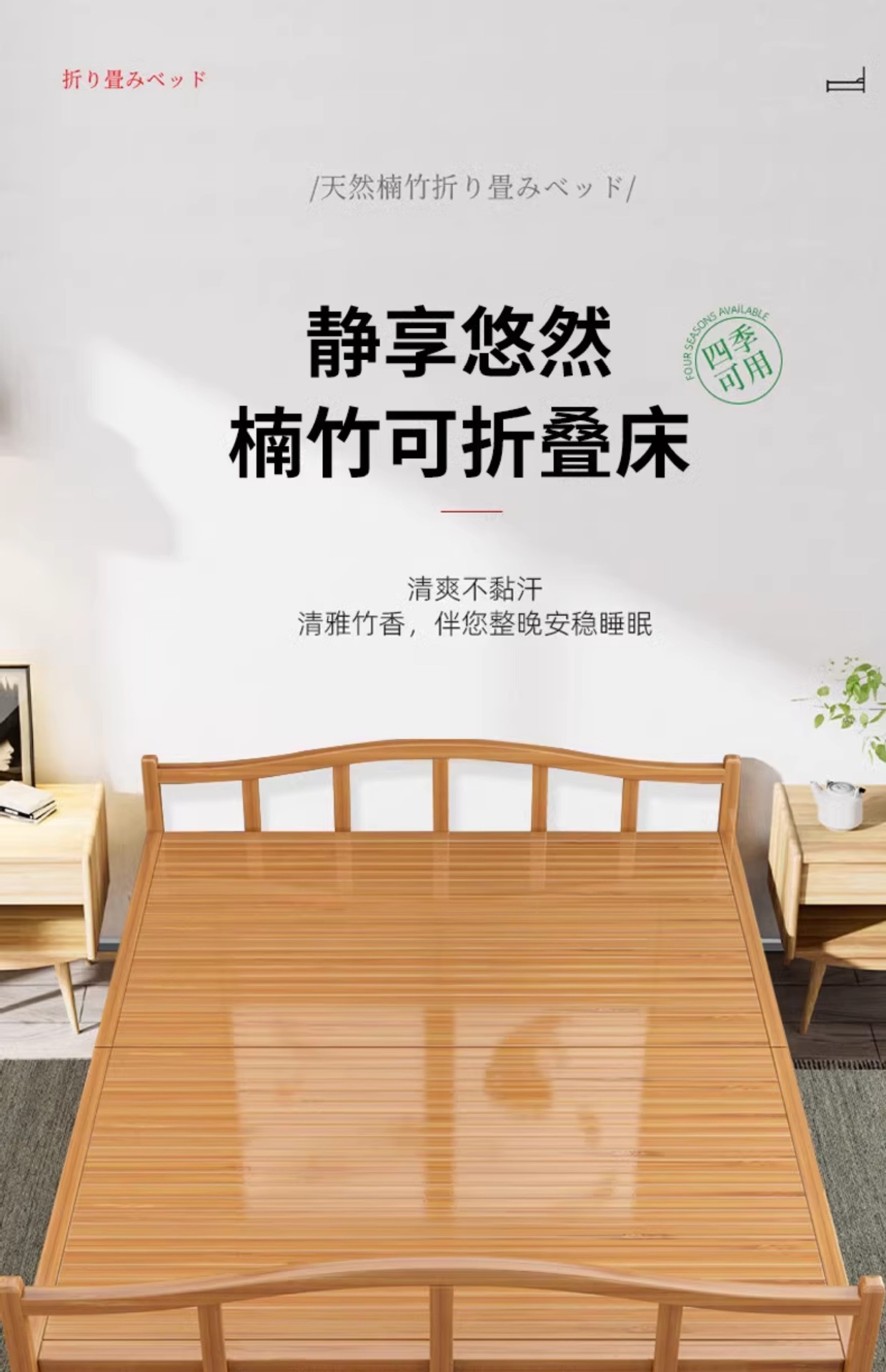 접이식 침대 싱글 더블 성인 간이 가정용 대나무 침대 하드 보드 점심 시간 낮잠 임대실 1.5m 원목 소형 L^