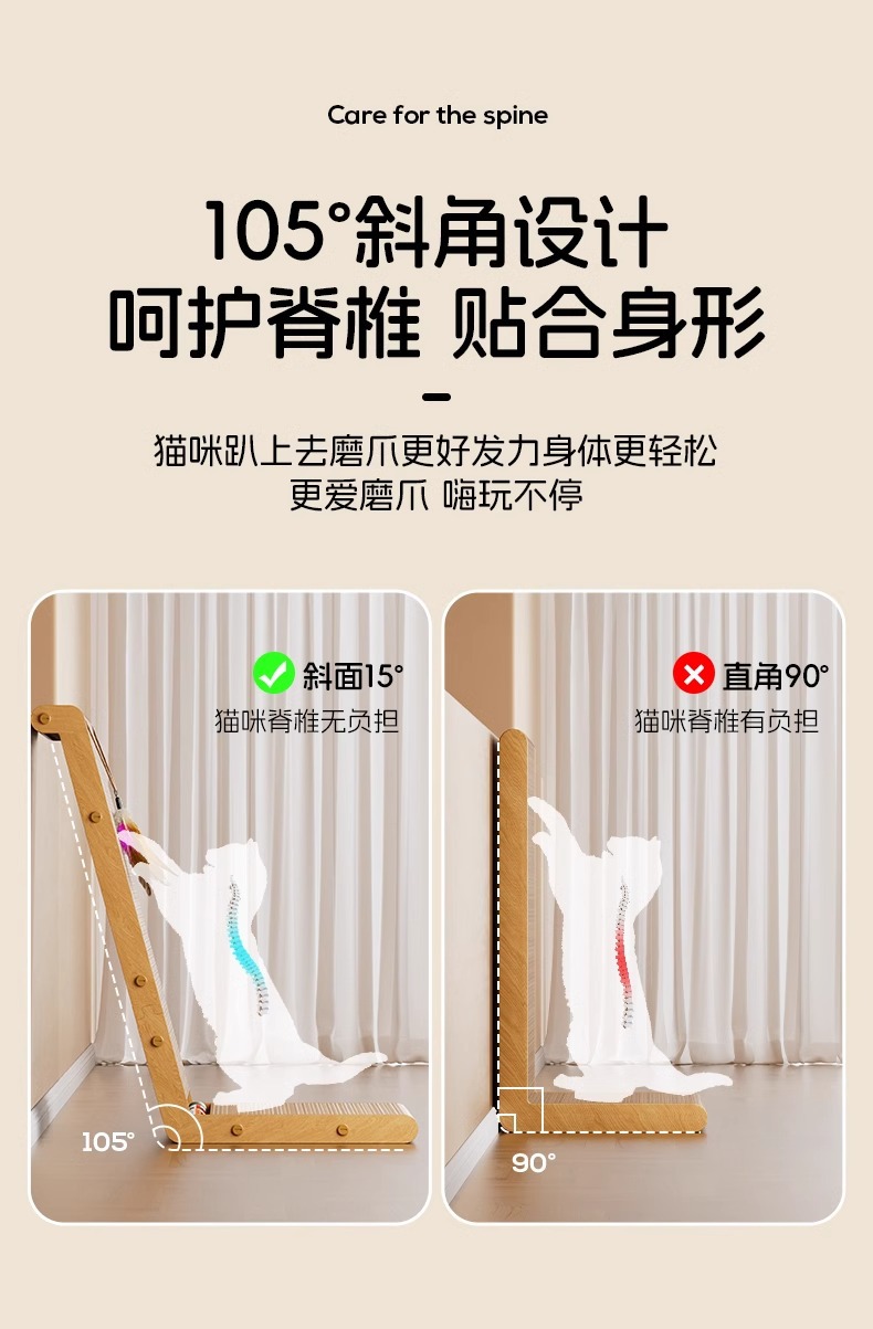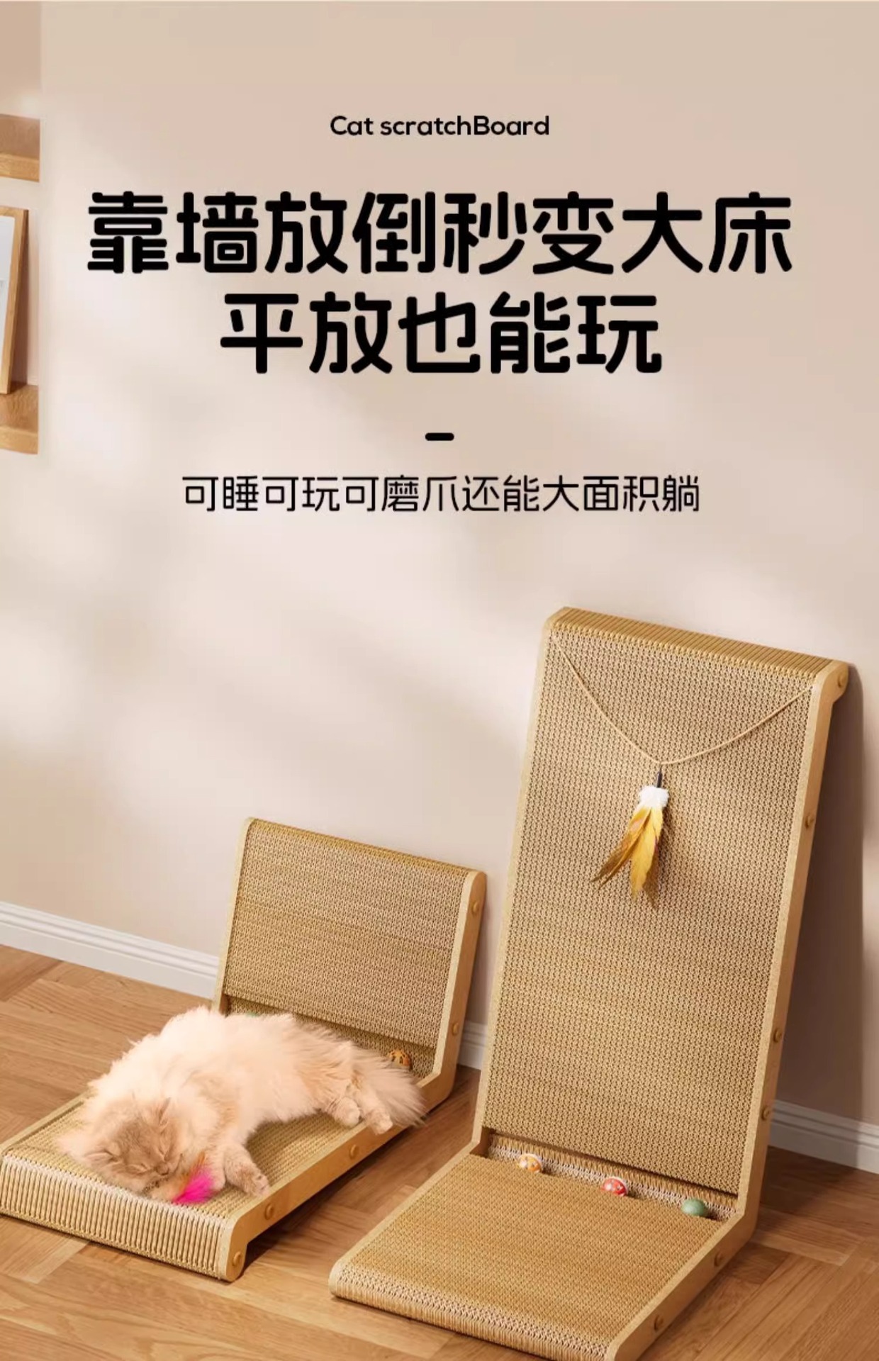 경사형 고양이 스크래치 보드, 벽에 붙은 수직형 고양이 발톱 연삭, 내마모성 및 긁힘 방지, 두꺼운 골판지 가구 구세주